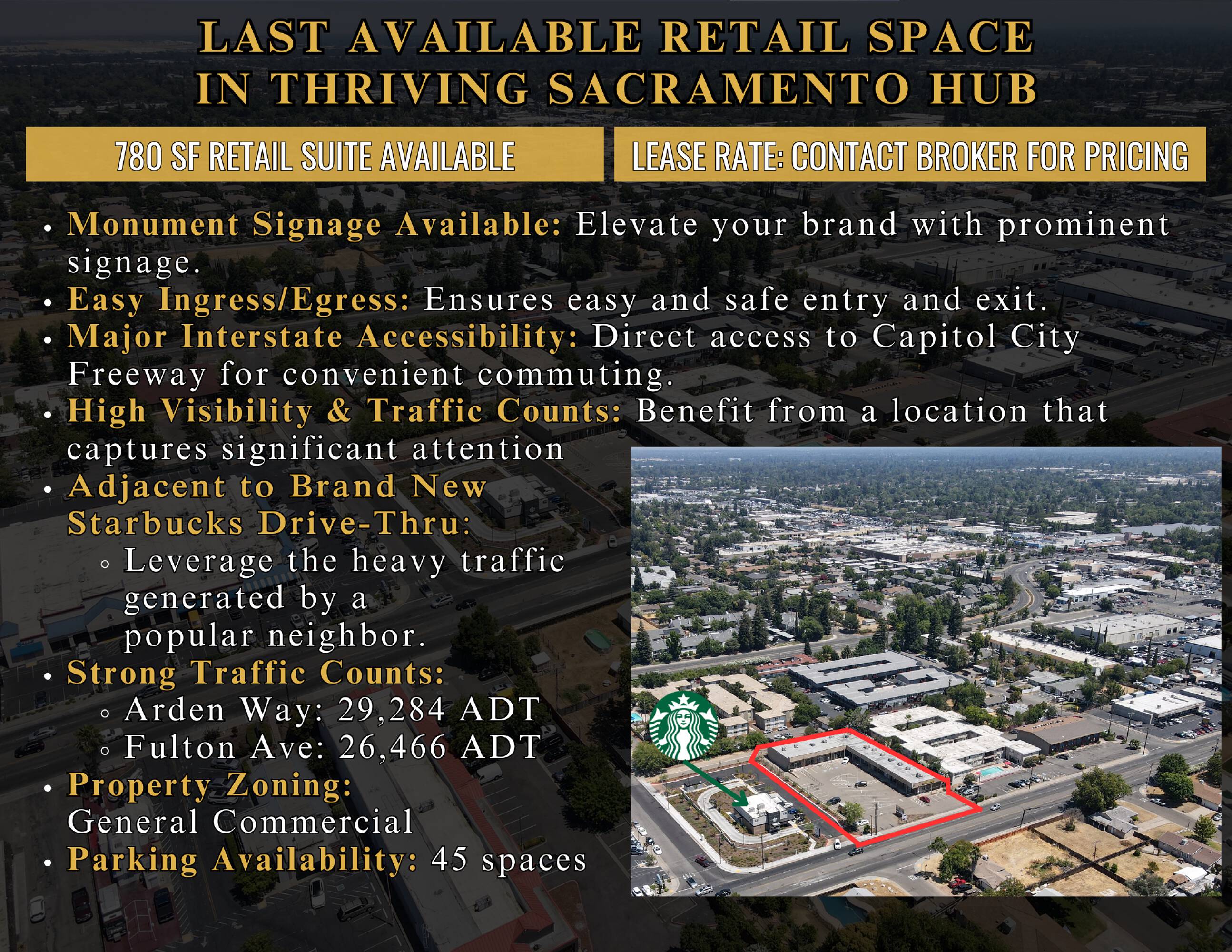 Remodeled retail space in active commercial corridor near Arden Fair.