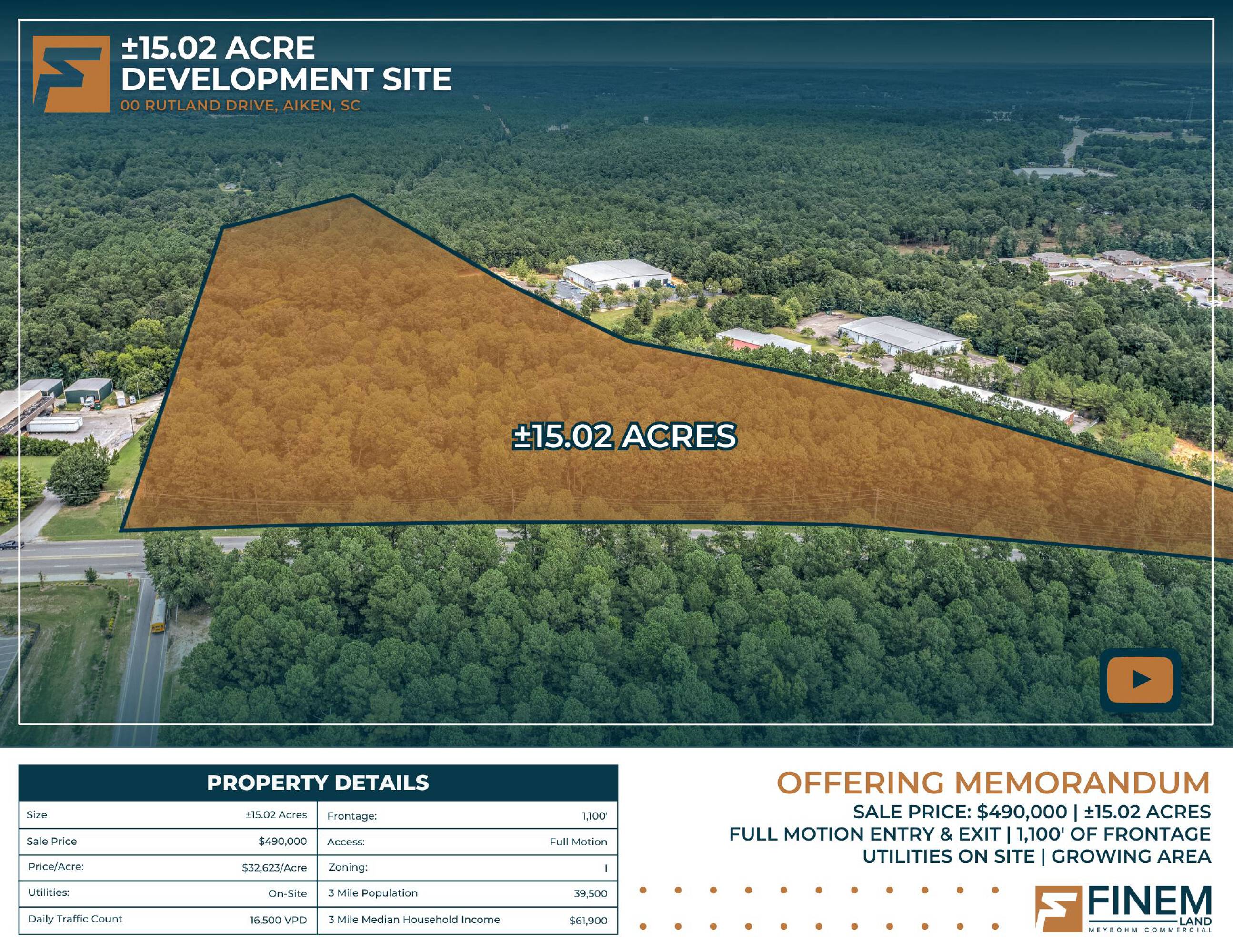 15.02-acre tract in Aiken, SC with utilities on site.