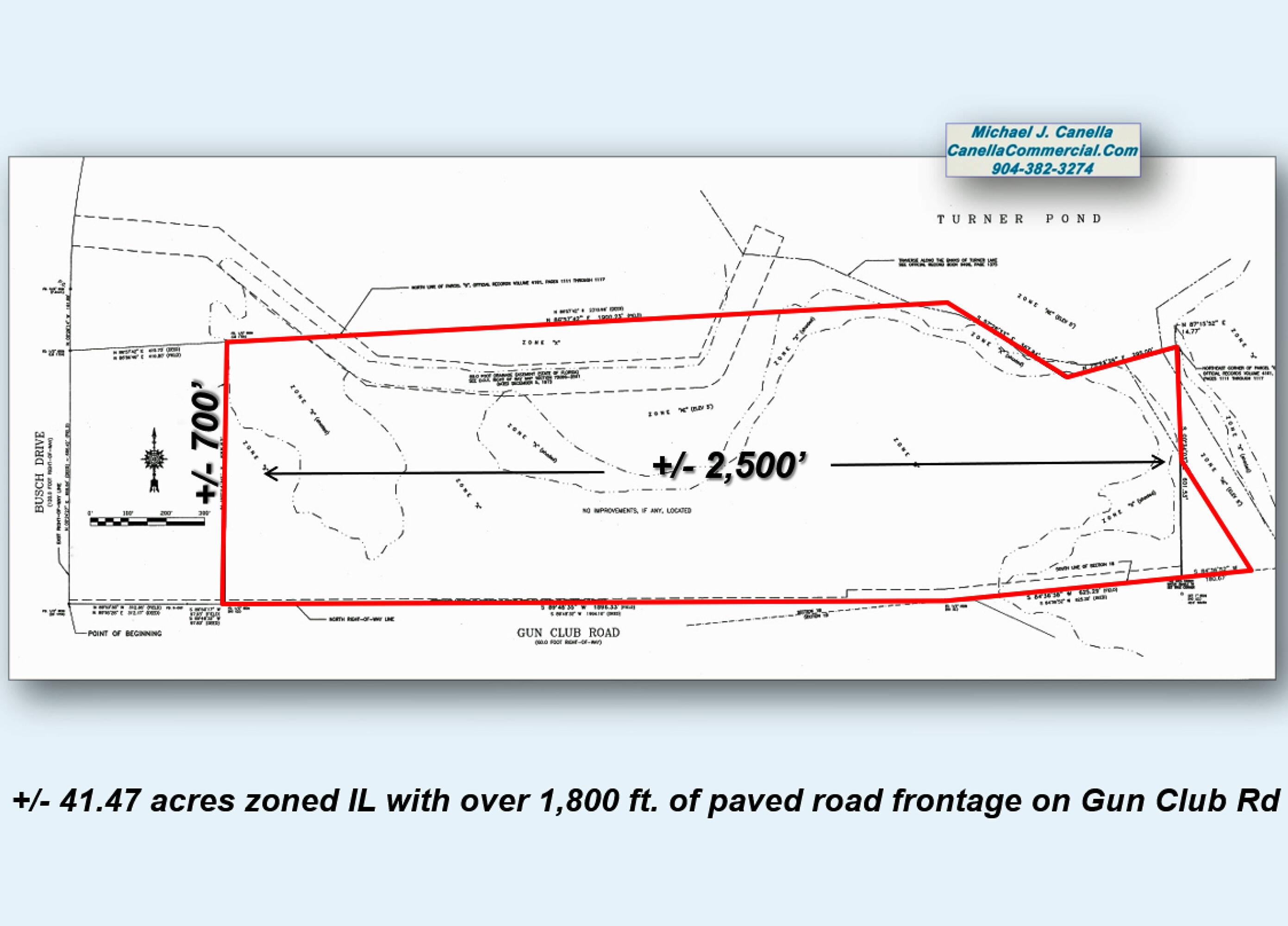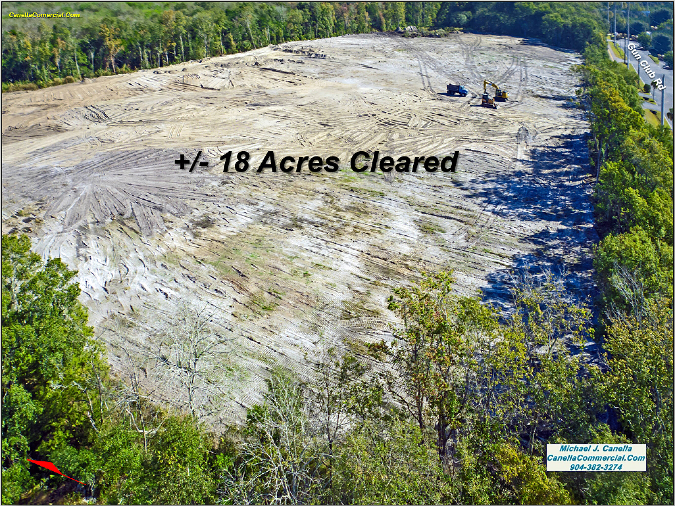 This property features approximately 41.47 acres of land, with about 18 acres already cleared. It is zoned for Industrial Light (IL) use. The site has access to JEA electric, city water, and sewer services fronting Gun Club Road. The property is located on Gun Club Road in Jacksonville, Florida.