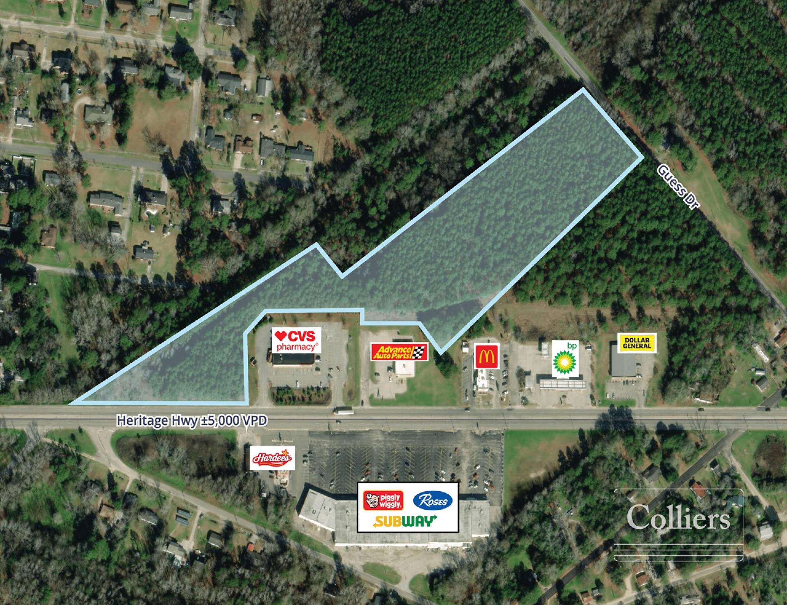 The property at 18252 Heritage Highway is an approximately 11.11-acre site situated along Denmark’s main retail corridor, offering excellent visibility. The location is adjacent to a CVS and across from a shopping center anchored by Piggly Wiggly. This site is suitable for retail or mixed-use development, benefiting from strong traffic exposure and convenient access.