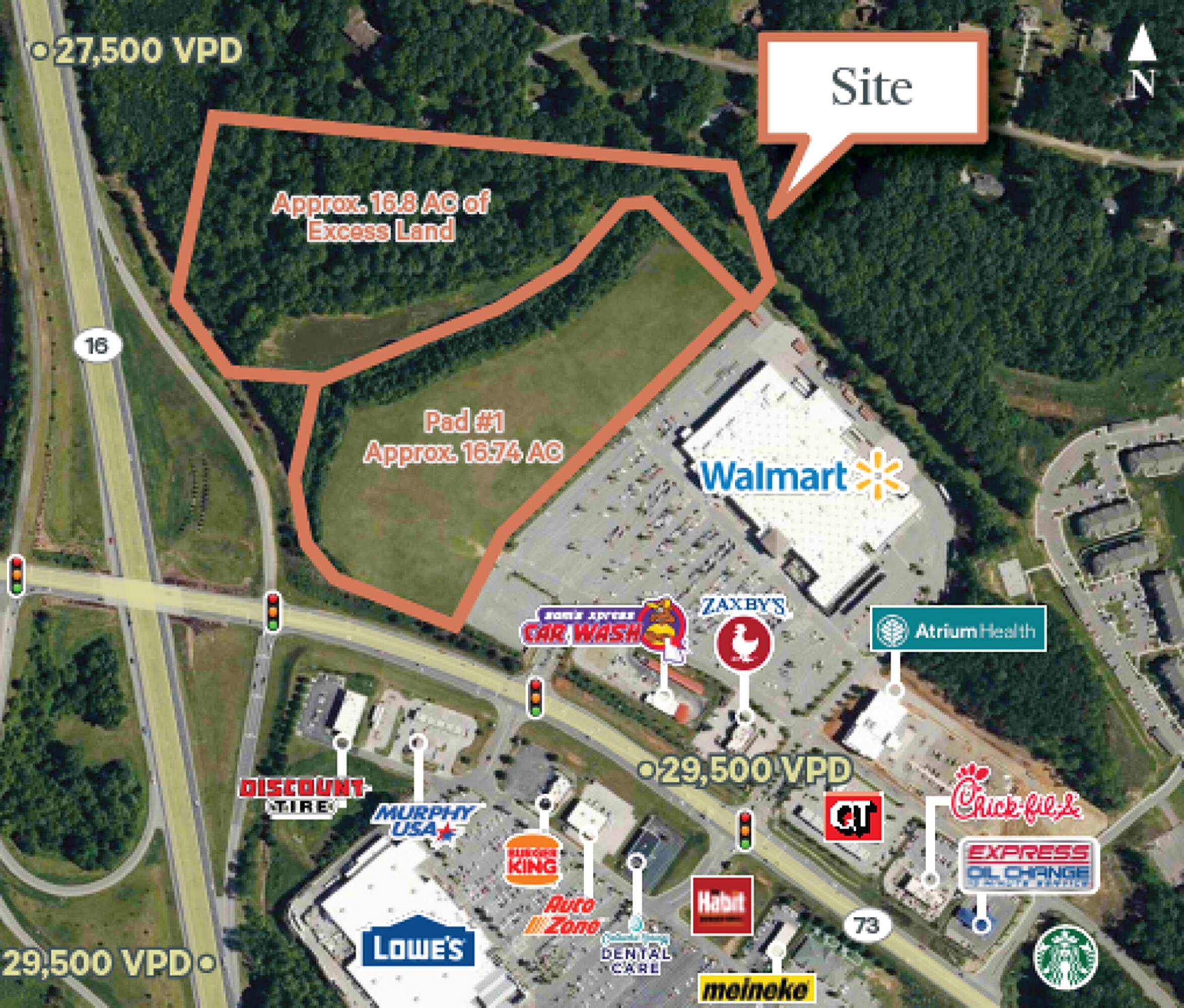 Approximately 16.74 acres of commercial land for sale.