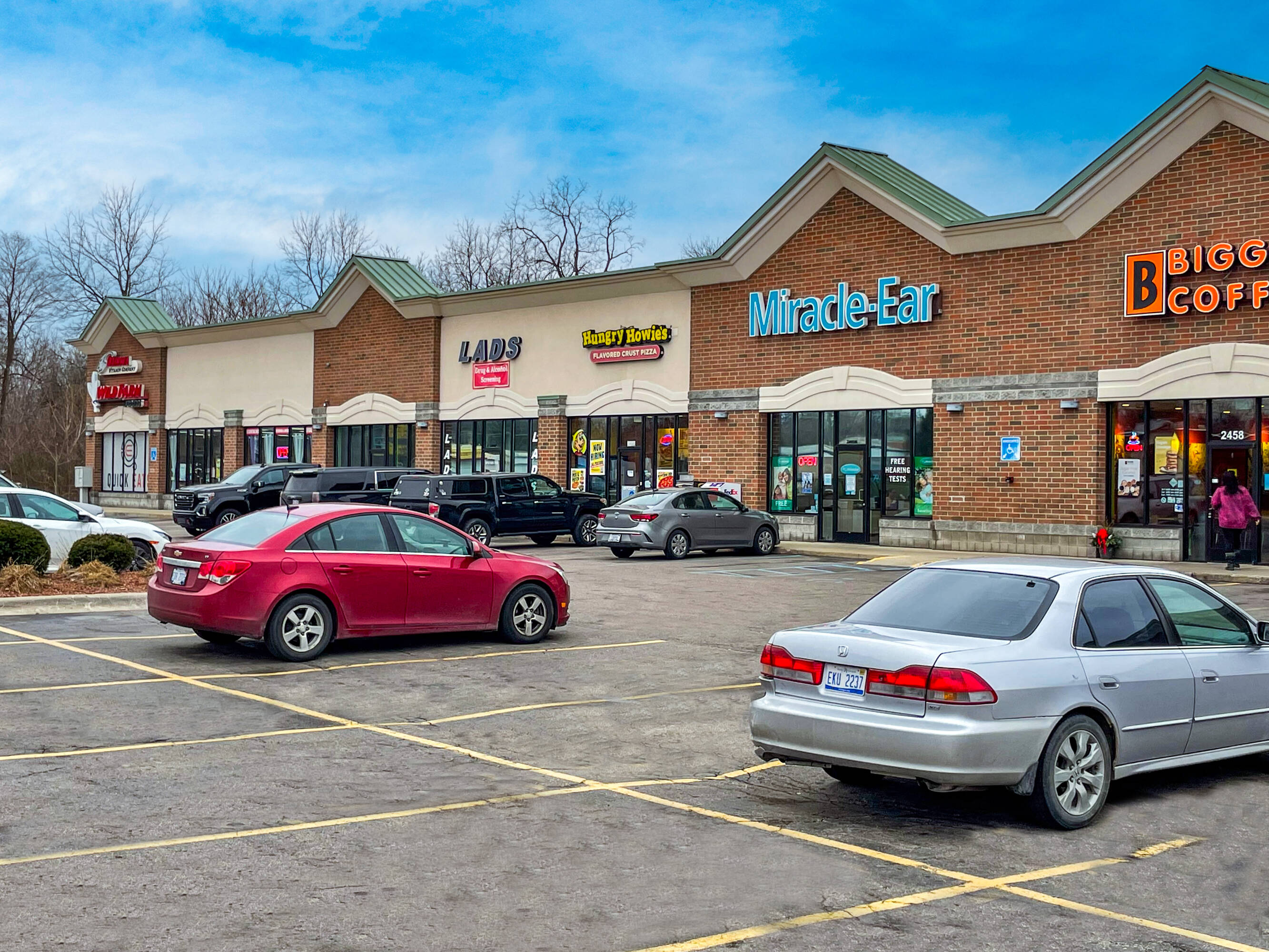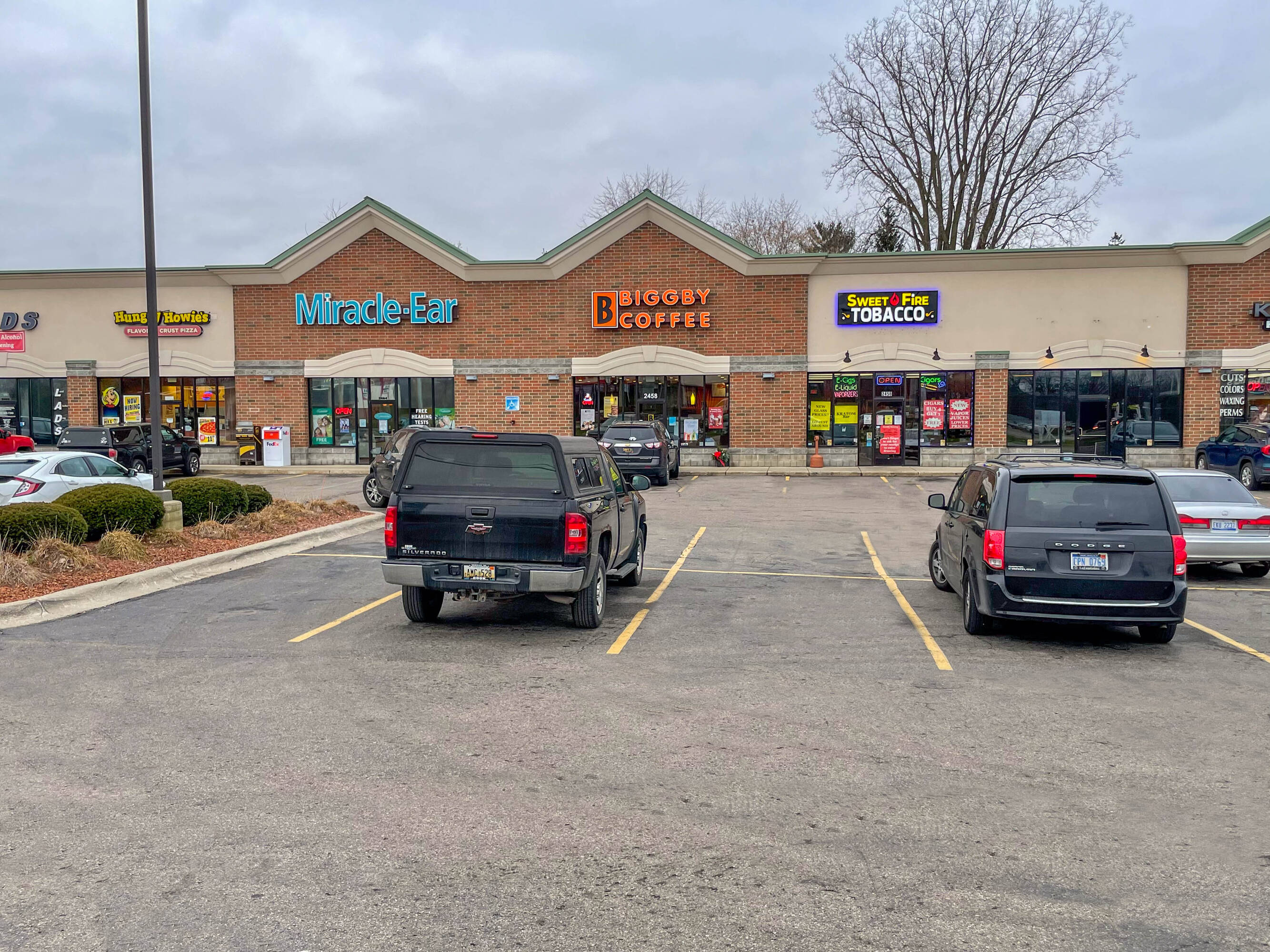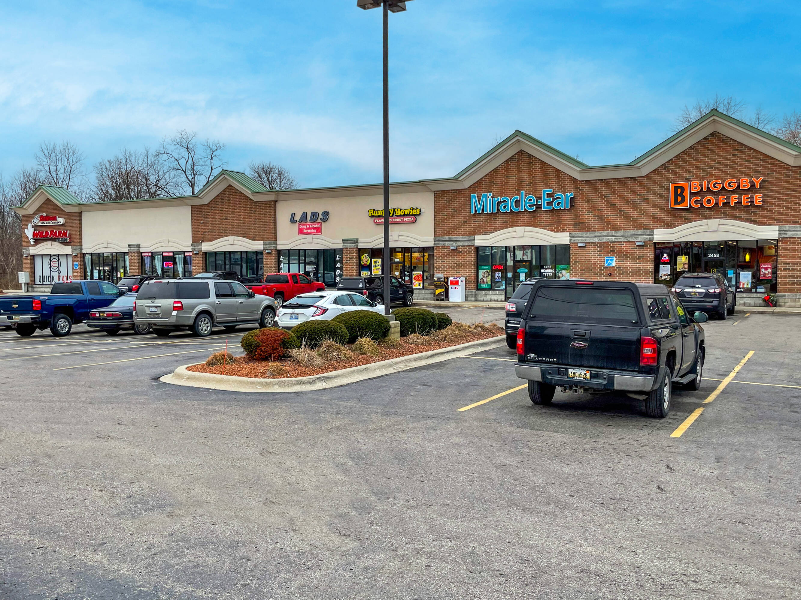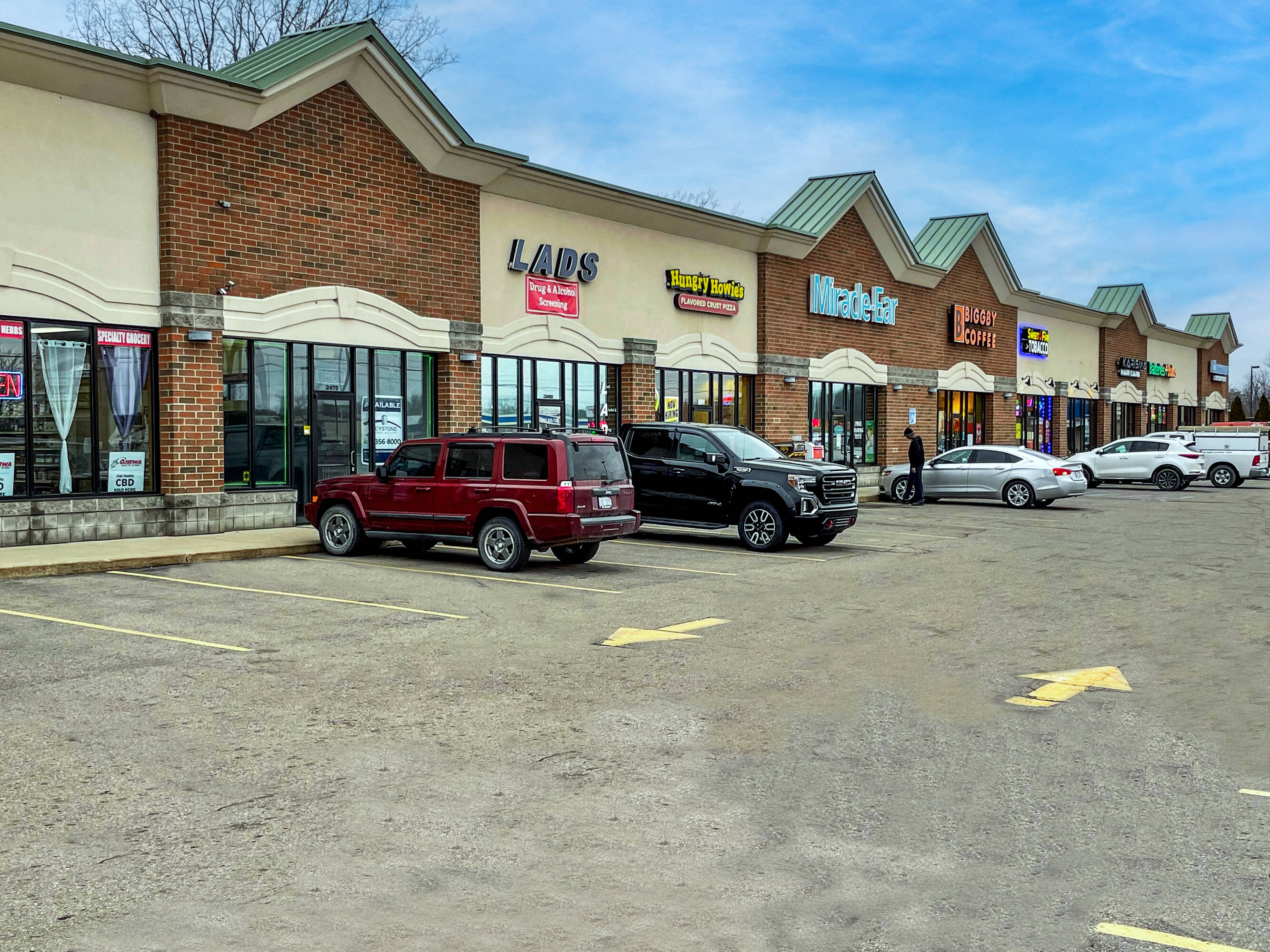 Neighborhood retail center with spaces available for lease.
