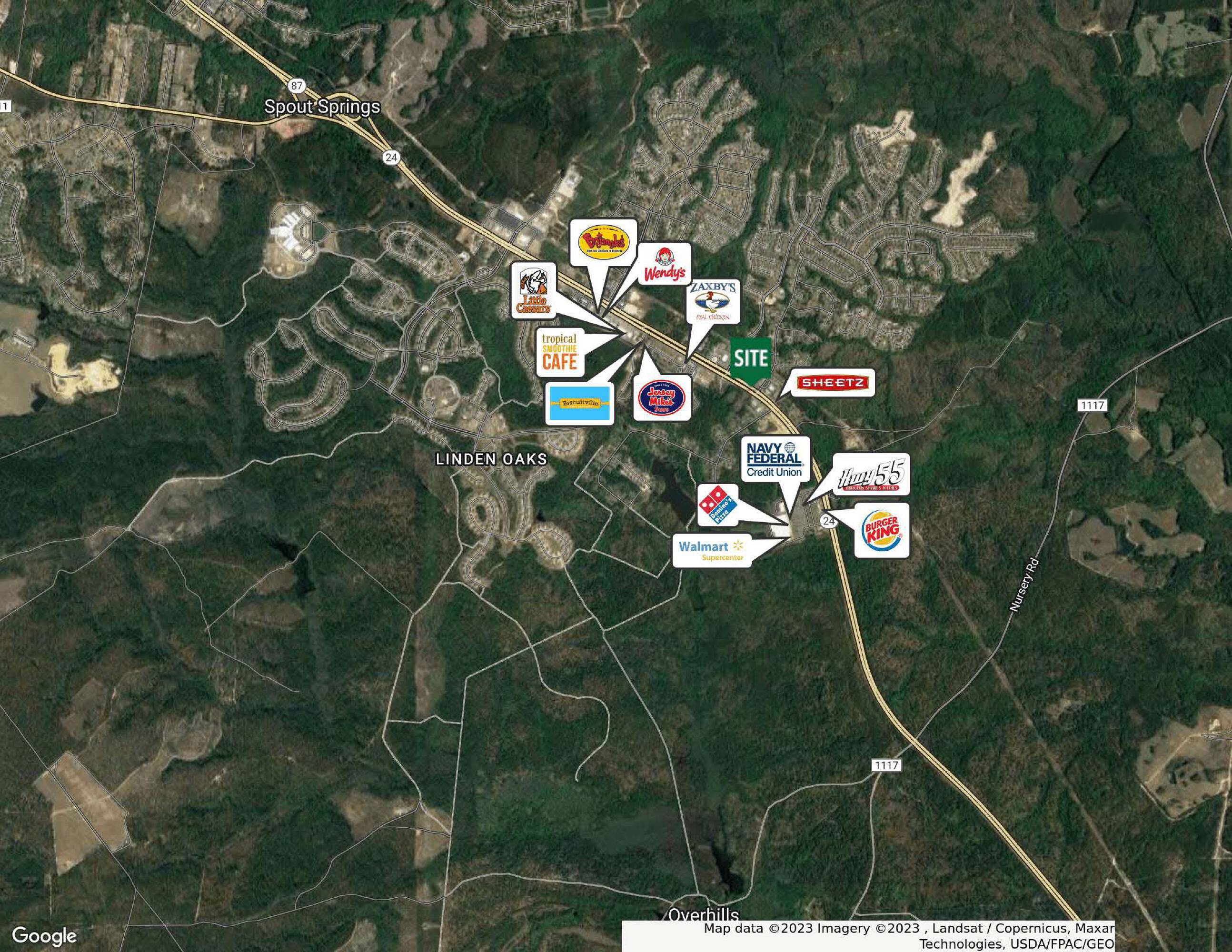 This commercial property offers a development opportunity on approximately 3 acres of land, situated at a corner location. Public utilities are located near the site, making it suitable for various commercial uses. The property is conveniently located beside a Sheetz gas station. Both Pope Air Force Base and Fort Bragg are approximately 7 miles away. The surrounding area features a number of retailers. The site benefits from a high traffic count of over 41,000 vehicles per day. The median household income within a 1-mile radius is approximately $86,341.