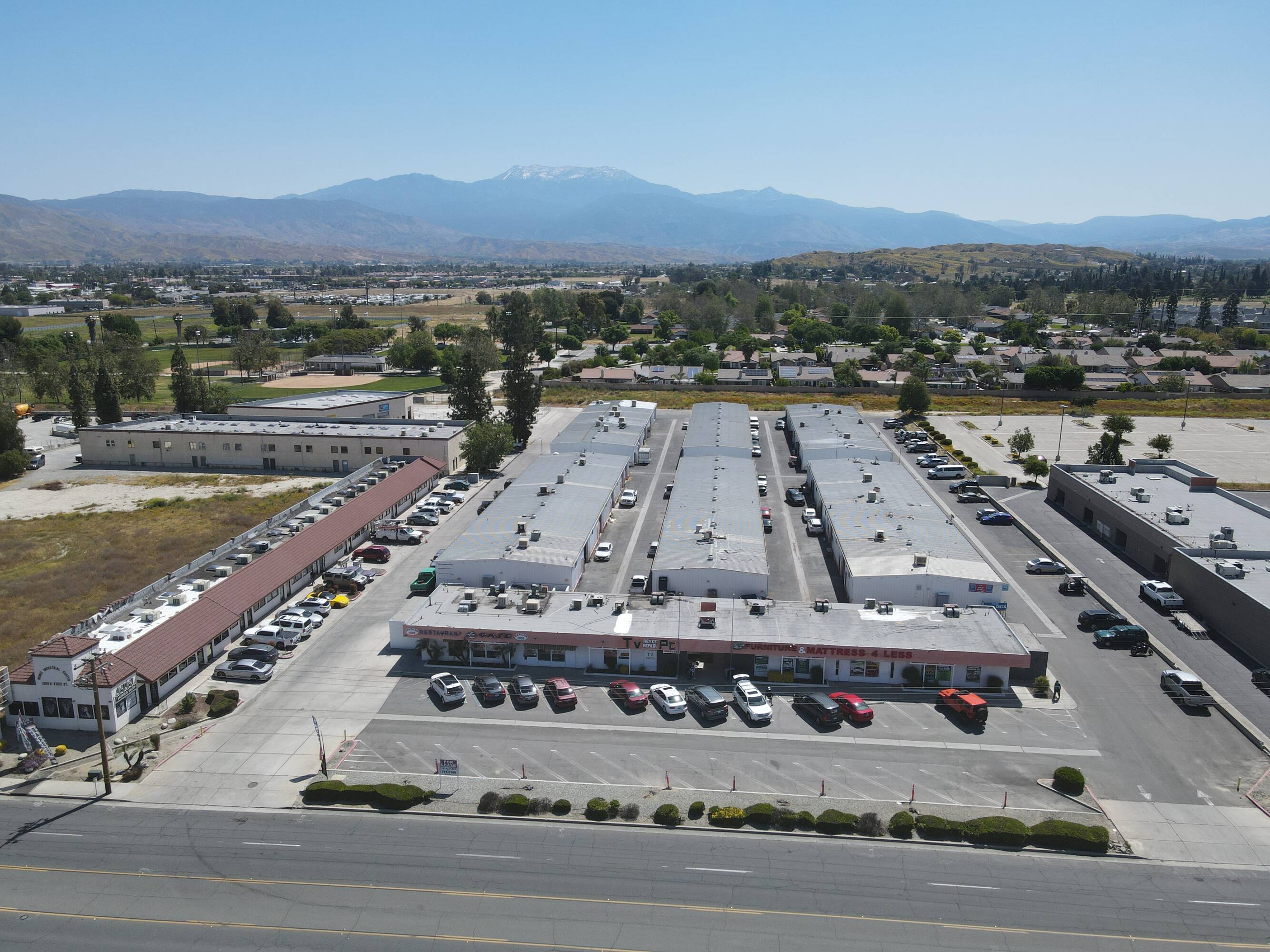 Located at 980 N State Street in Hemet, this property offers spaces suitable for automotive or industrial businesses. The location provides convenient access. A variety of office and retail spaces are available, accommodating businesses of various sizes. Multiple units feature roll-up doors, facilitating integration of automotive or industrial operations. The property benefits from good visibility and on-site parking.