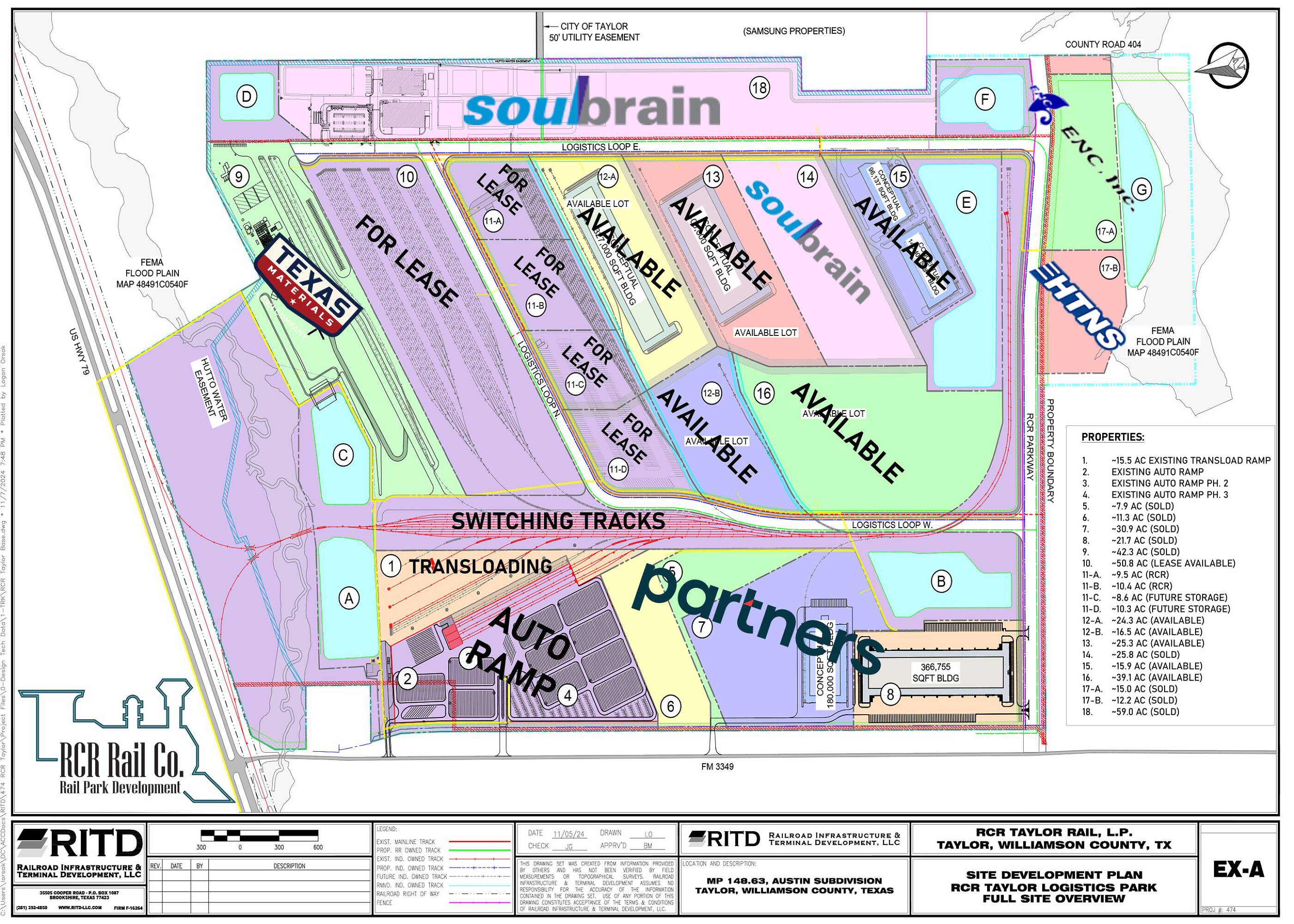 Commercial lots with rail service, ranging from 9 to 41 acres.