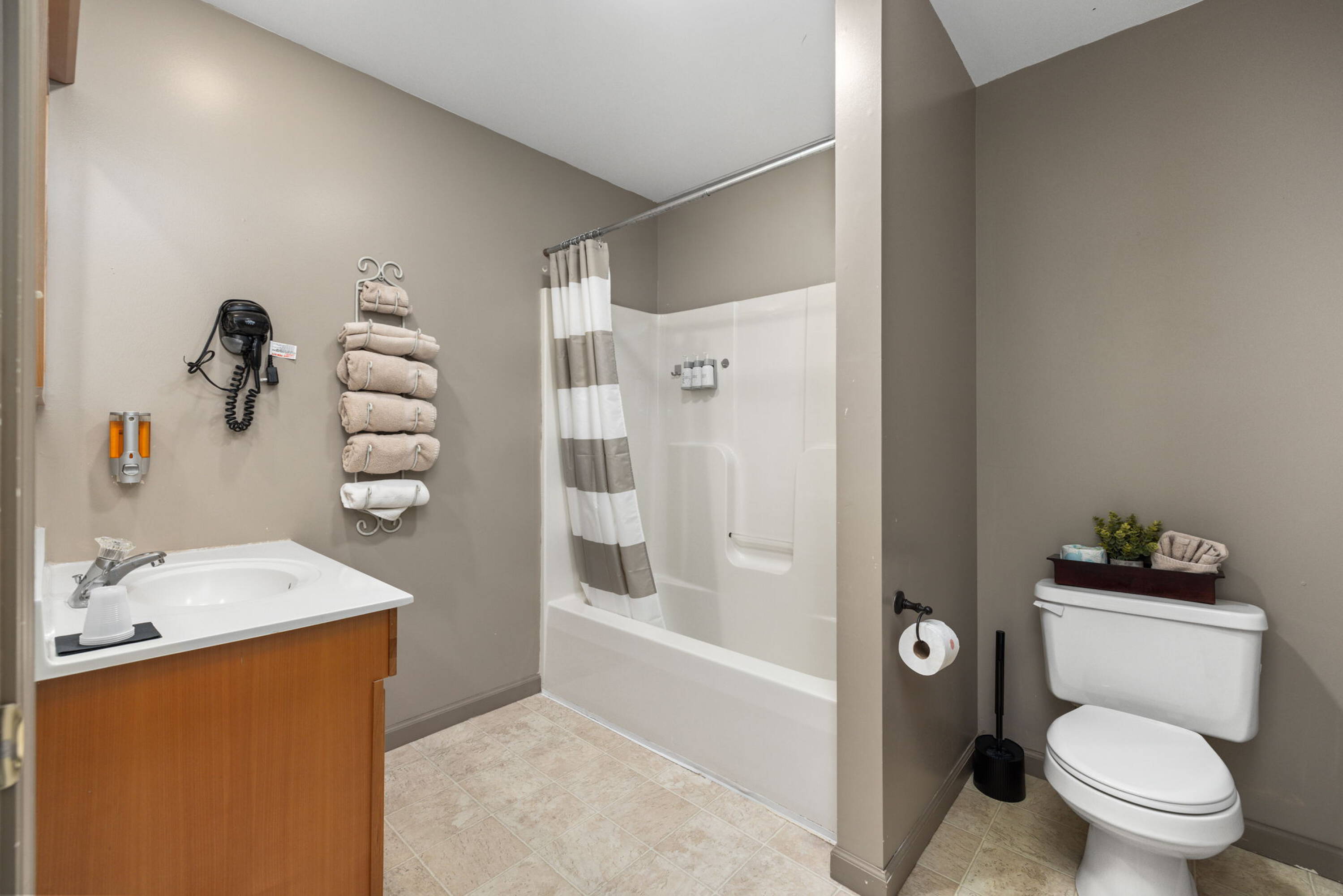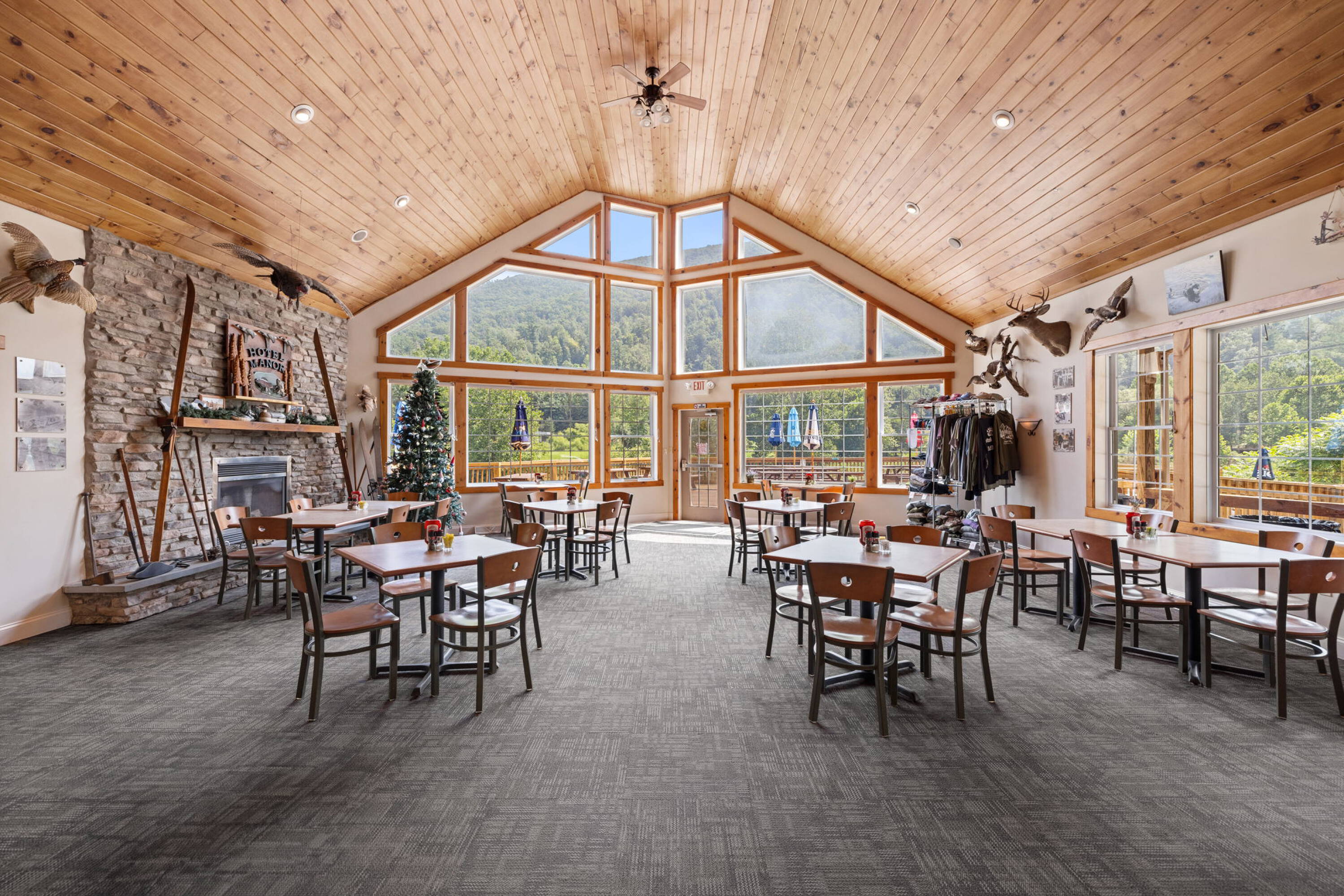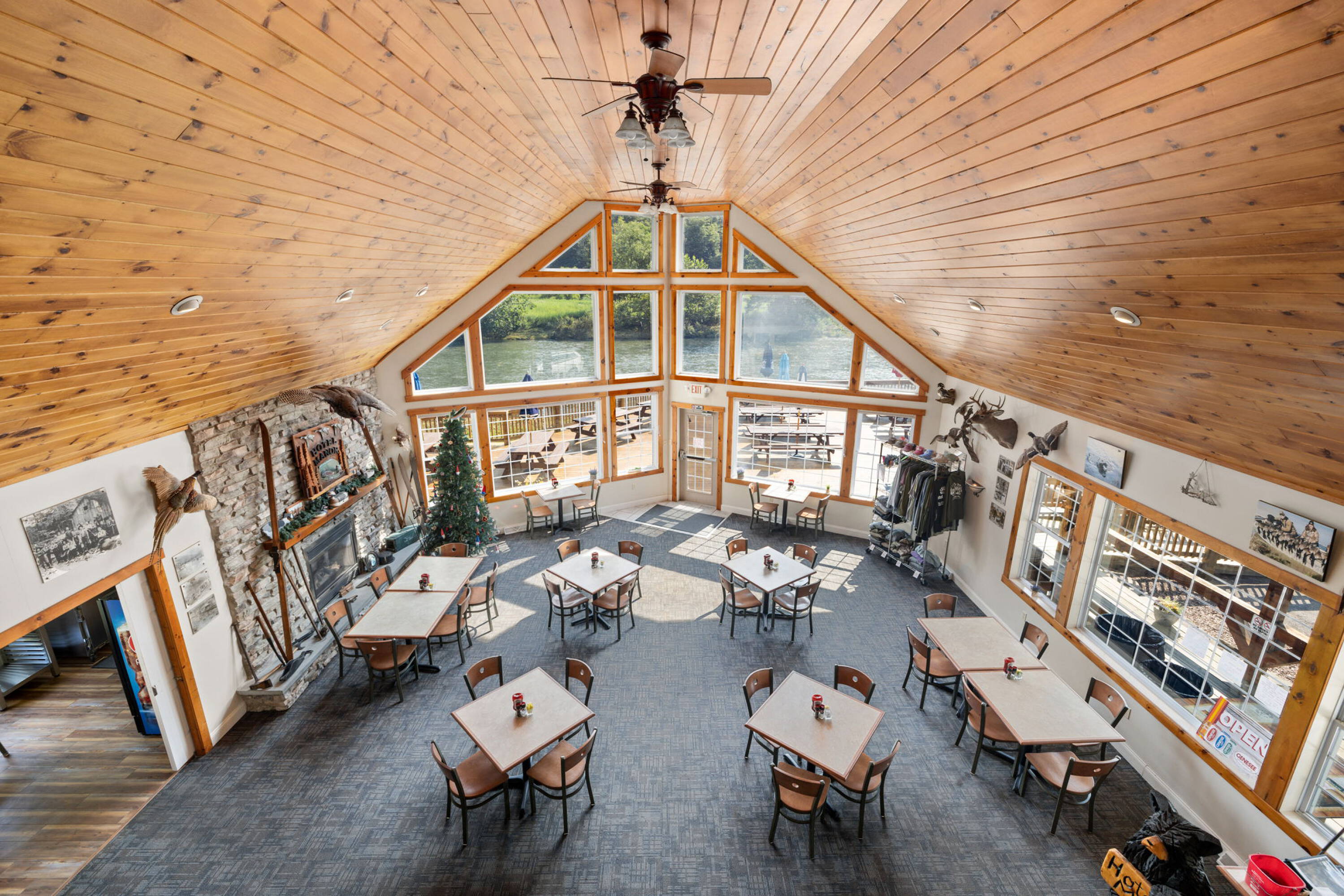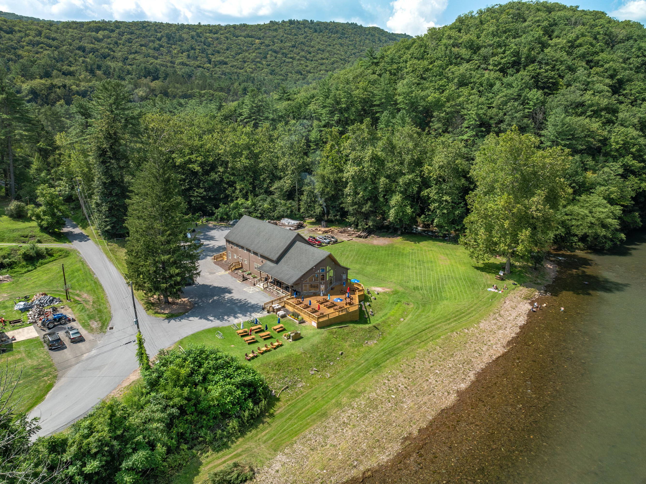 This boutique hotel is located in a prime location known for outdoor activities, offering access to Pine Creek, known for fly fishing. The property sits on 1.86 acres and features 10 bedrooms and 12 bathrooms. A restaurant is located on site. The hotel has an average daily rate (RevPar) of $36.39 and (ADR) $104.00. The property includes a valuable bar license. The hotel also offers a dining room with panoramic views. A large parking lot on the side and back of the property provides ample space for guests, with access to the stream. The unfinished basement, extending the entire length of the building and measuring approximately 3,974 square feet, offers potential for creating additional recreational spaces. The property is suitable for hosting weddings. Ancillary services, such as bike, canoe, and boat rentals, or even an ATM and mini-mart, could open new revenue streams. The property also features a full basement and one room with accessibility features, including a ramp. Built in 2004, the hotel is constructed with a combination of block, vinyl siding, and some stone accents, all under an asphalt-shingled roof. The building is equipped with forced air heating, a propane system, and an outdoor wood furnace.