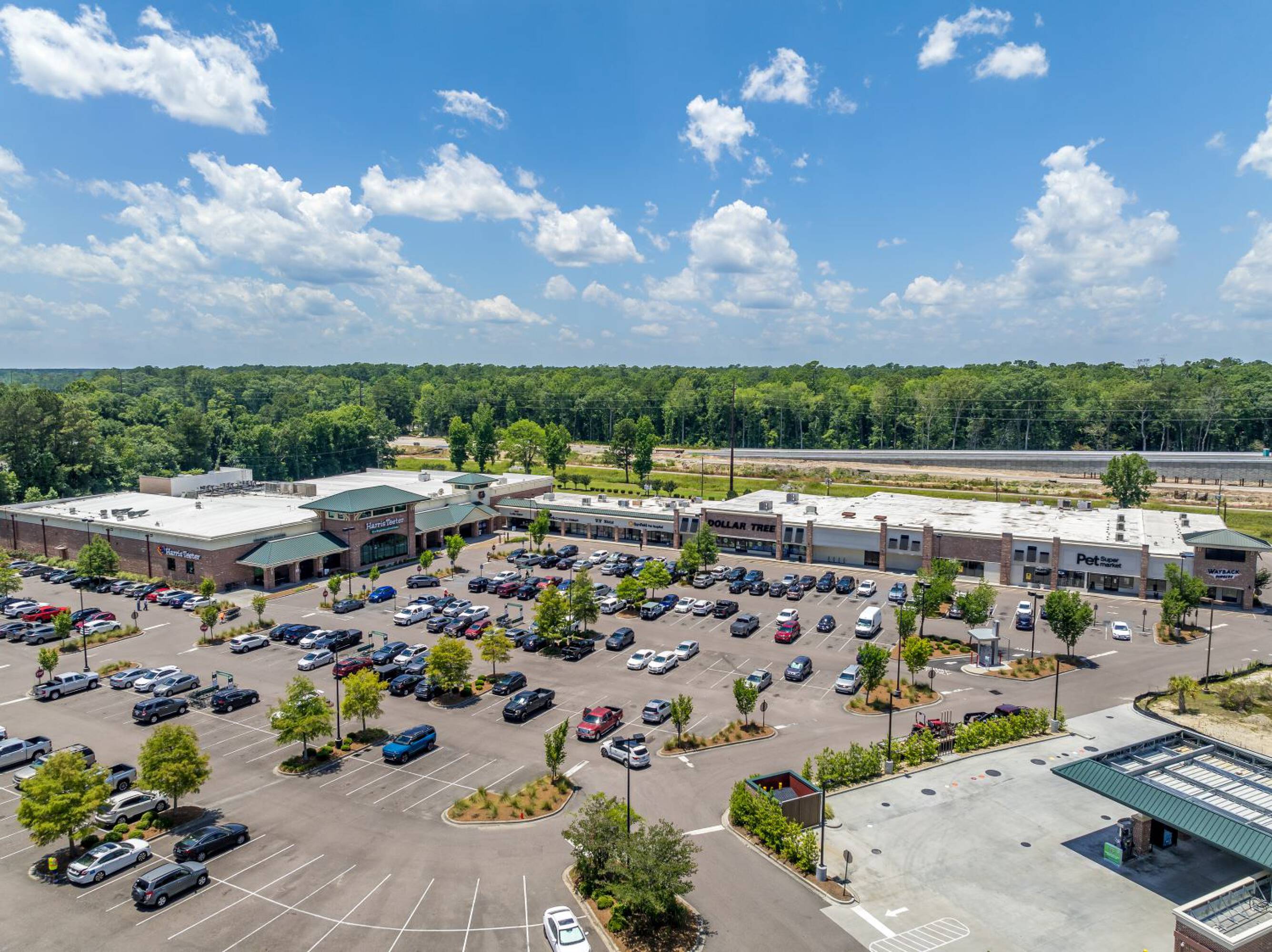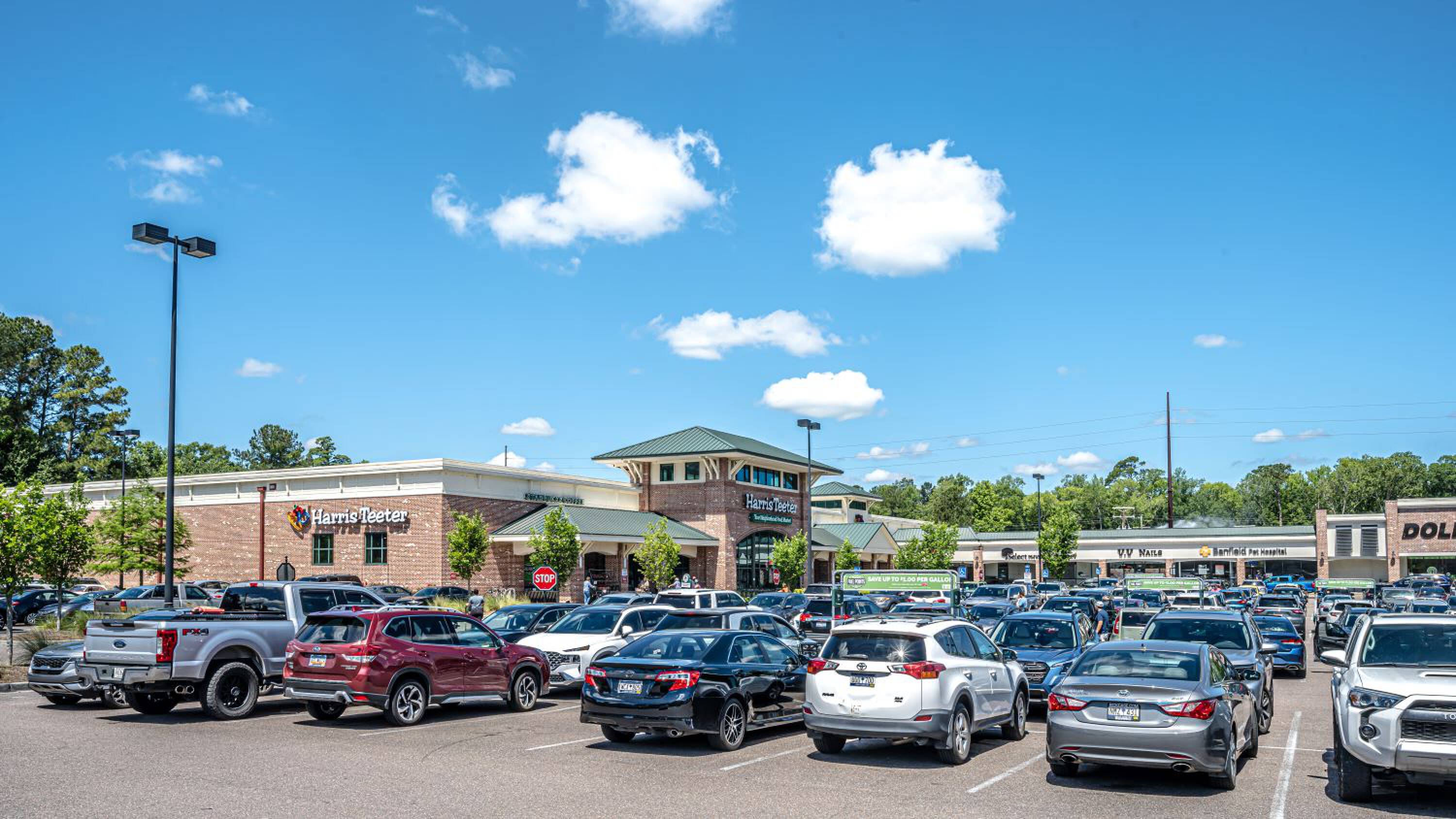 Retail spaces available in shopping center anchored by Harris Teeter.