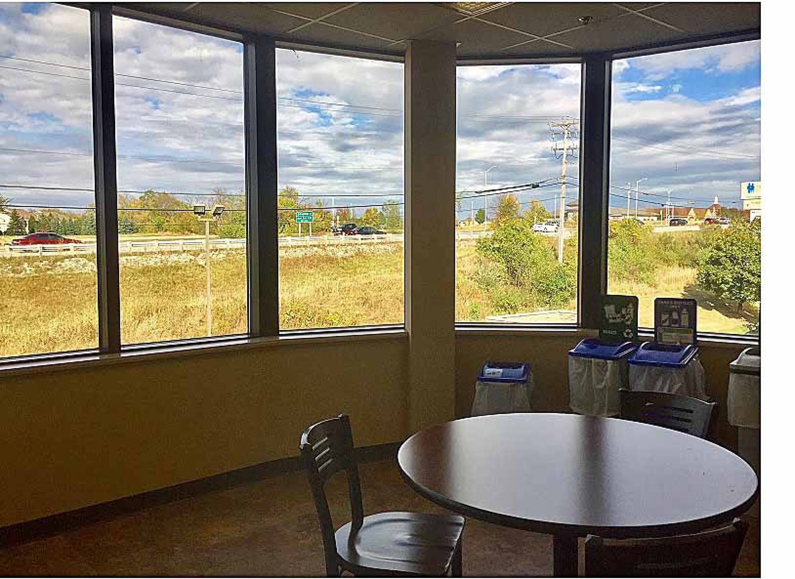 Three-story office building with high visibility and natural light.