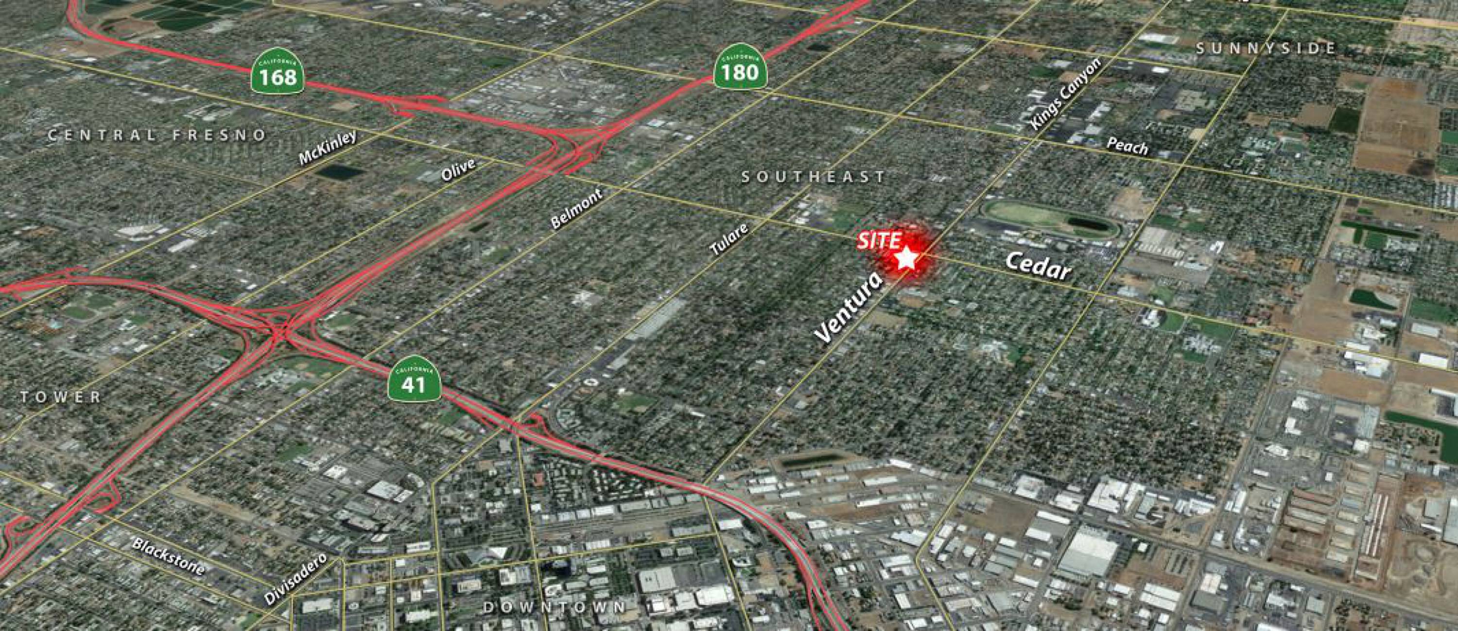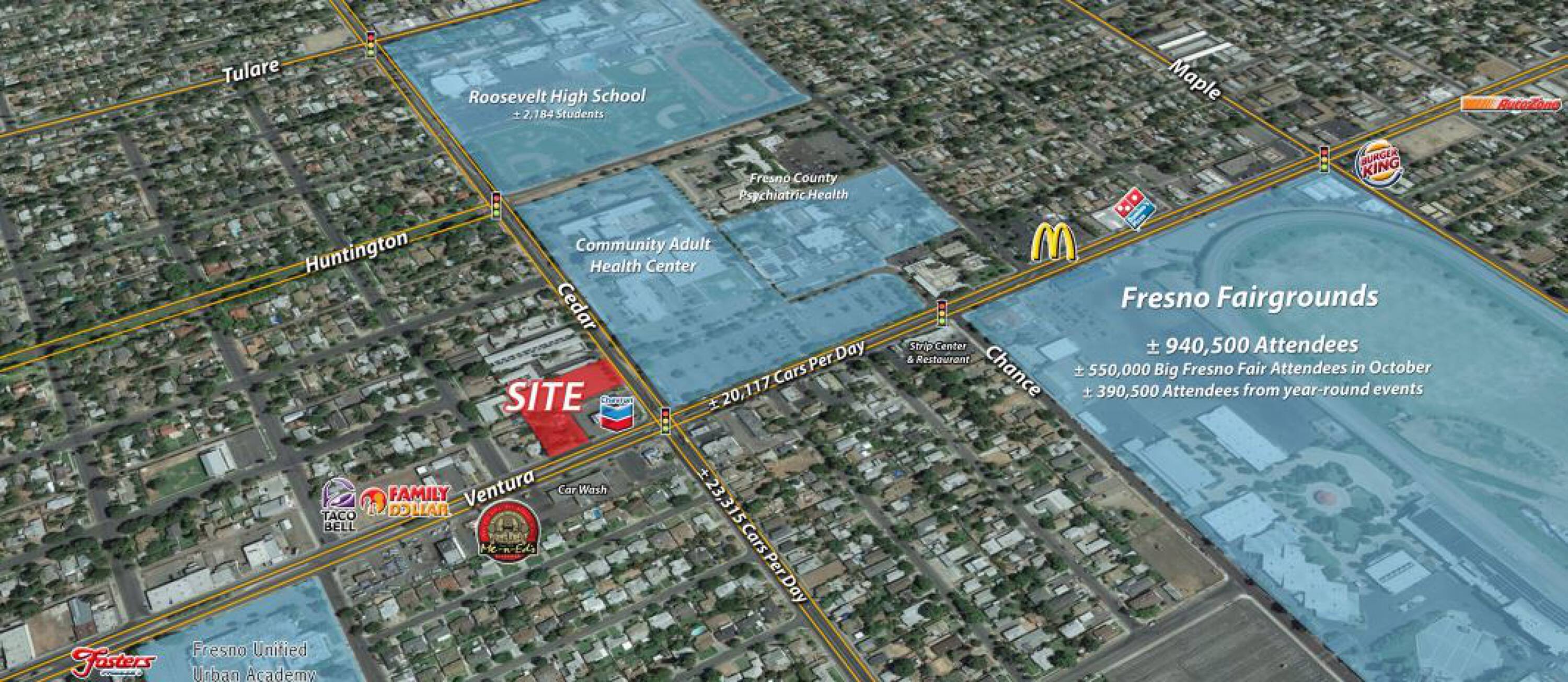 The property is located at NWQ of Cedar & Ventura Fresno, CA.