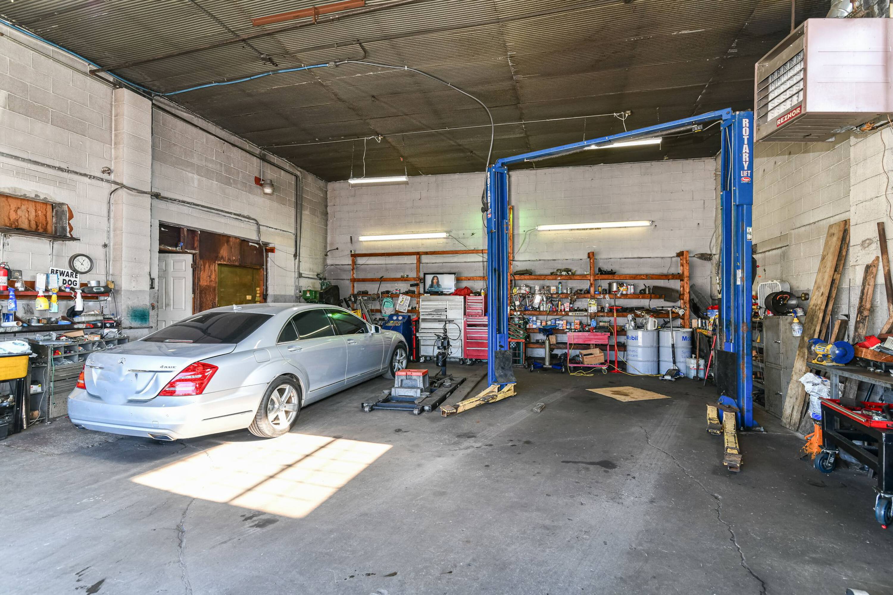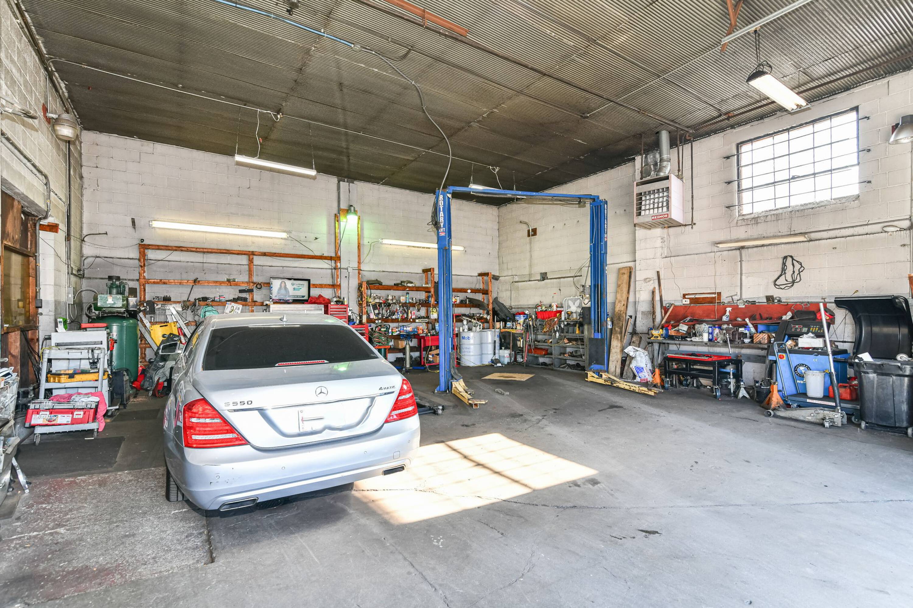 Commercial auto shop with modern equipment in a bustling Indianapolis area.