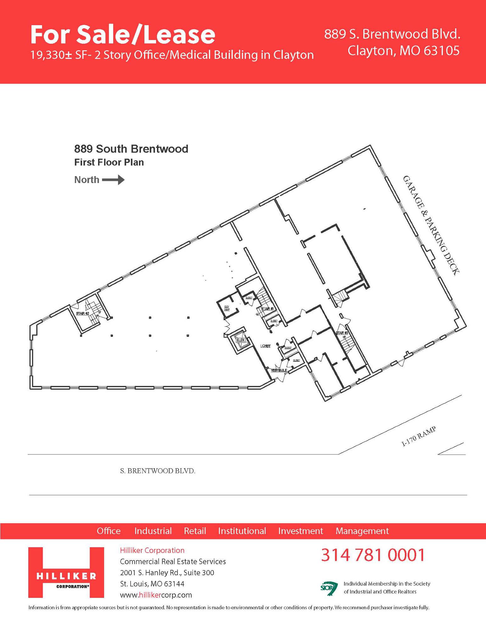 This commercial real estate property is an office building with 19,330 square feet of space. It is located in Clayton, Missouri.