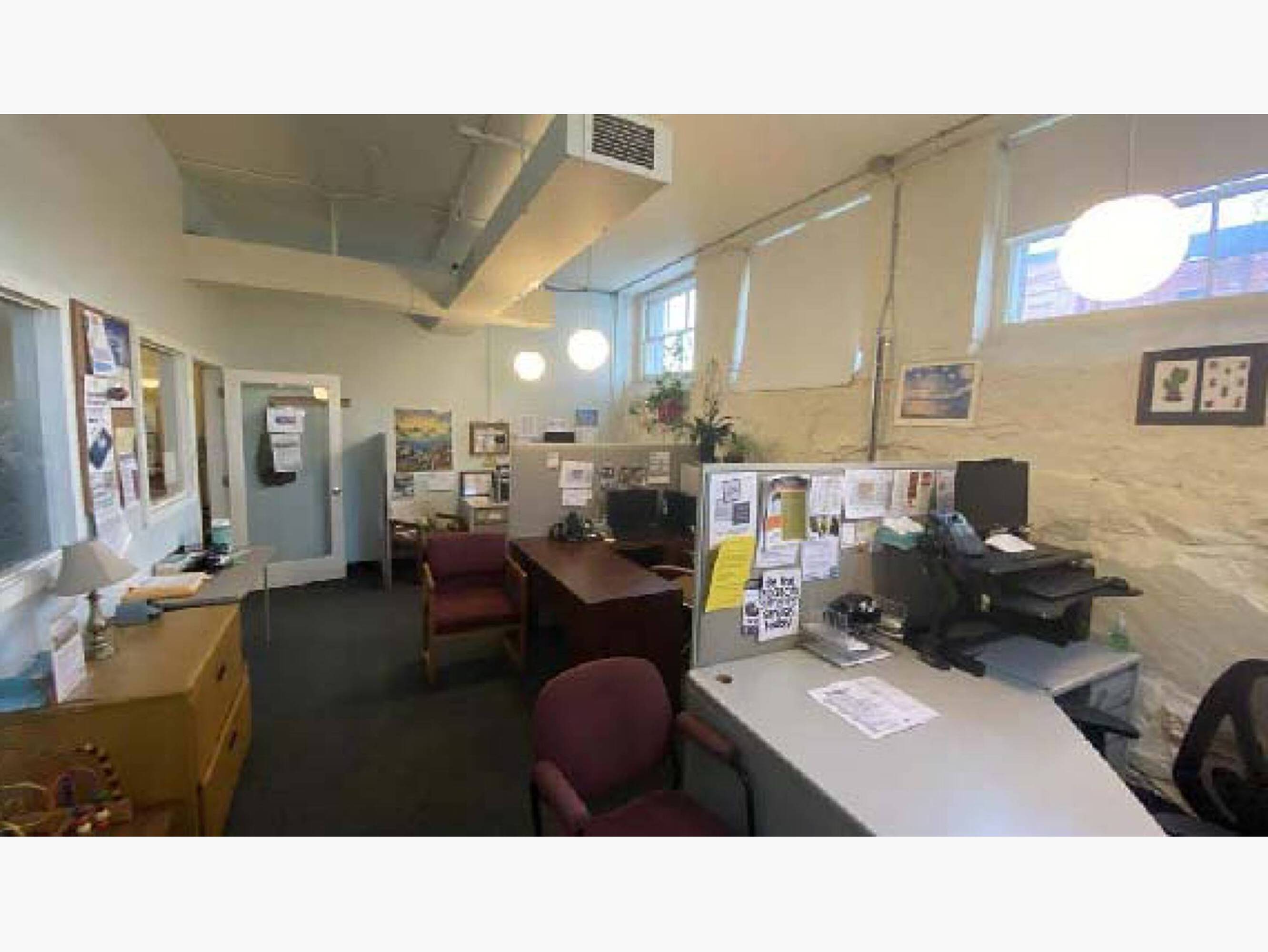 Professional office suite featuring private offices and open workspace.