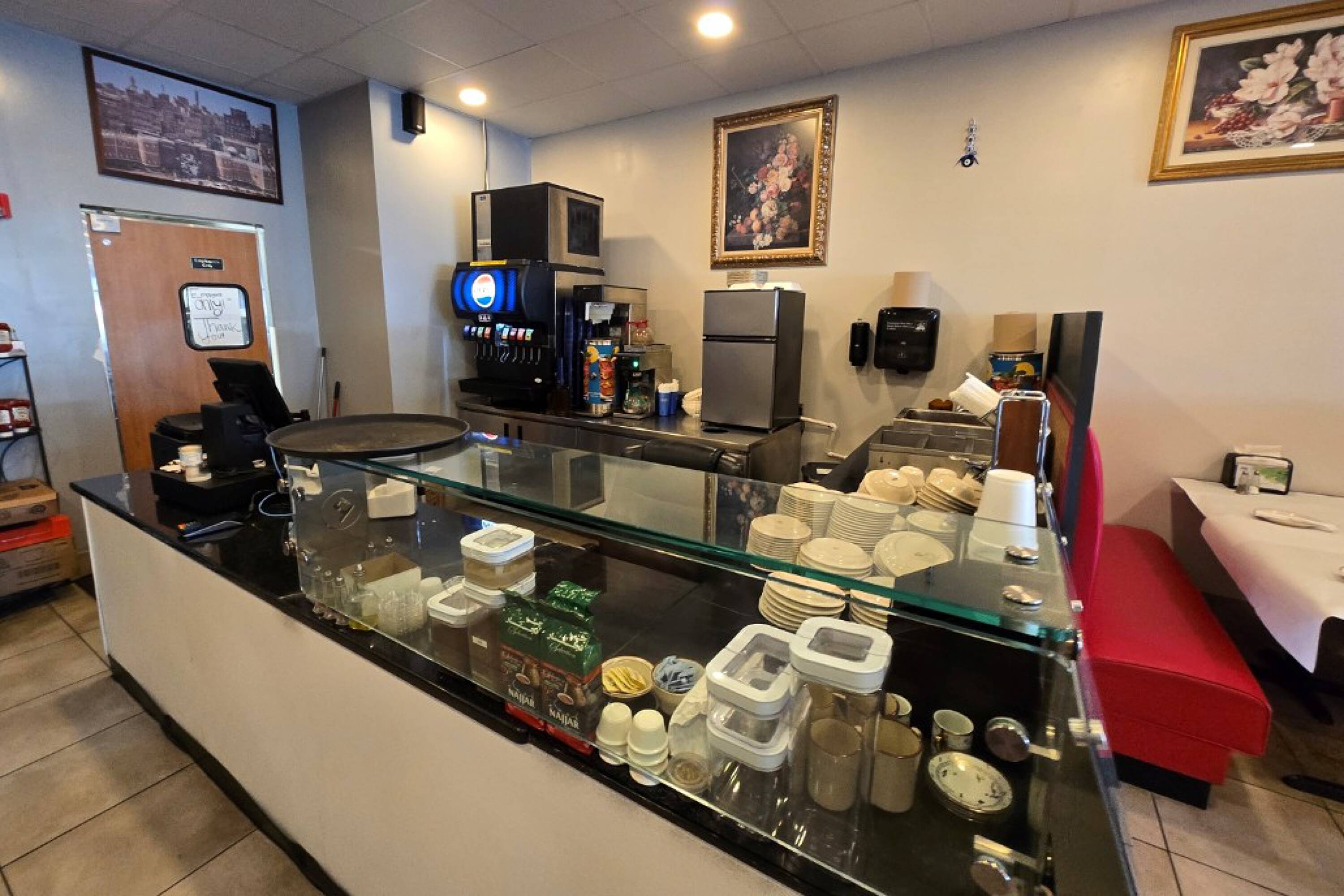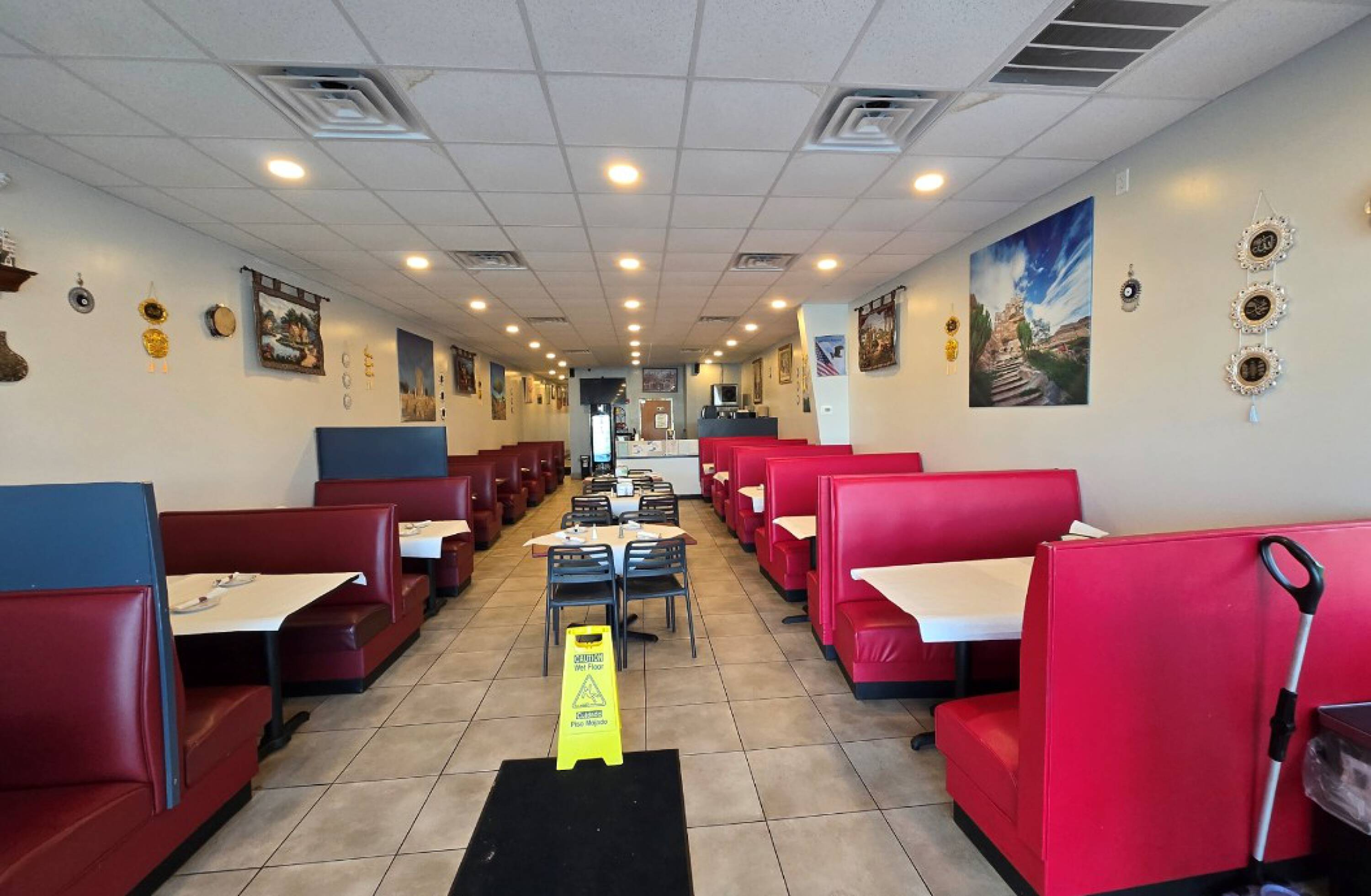 Restaurant space for lease with high visibility and traffic.
