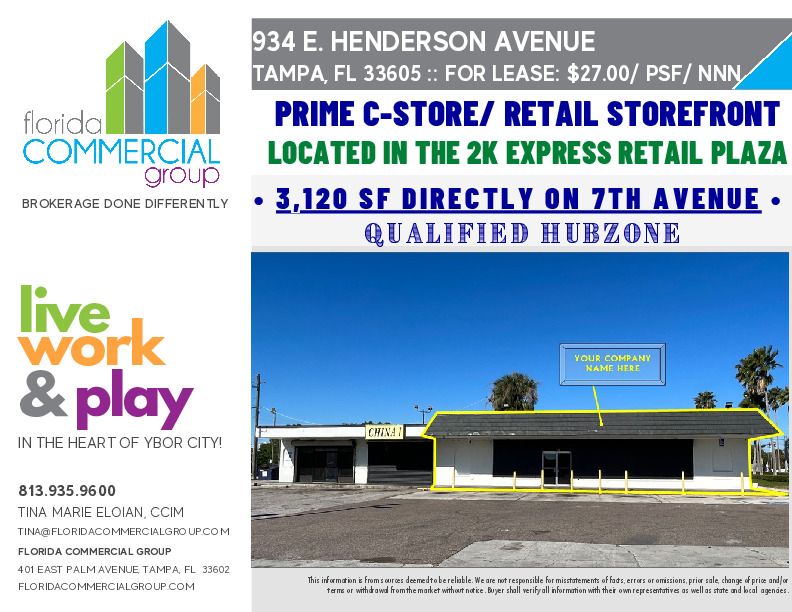 at 934 Henderson Ave Contact usListing agent Tina Marie Eloian, CCIM License #FL #BK653748 (813) 935-9600