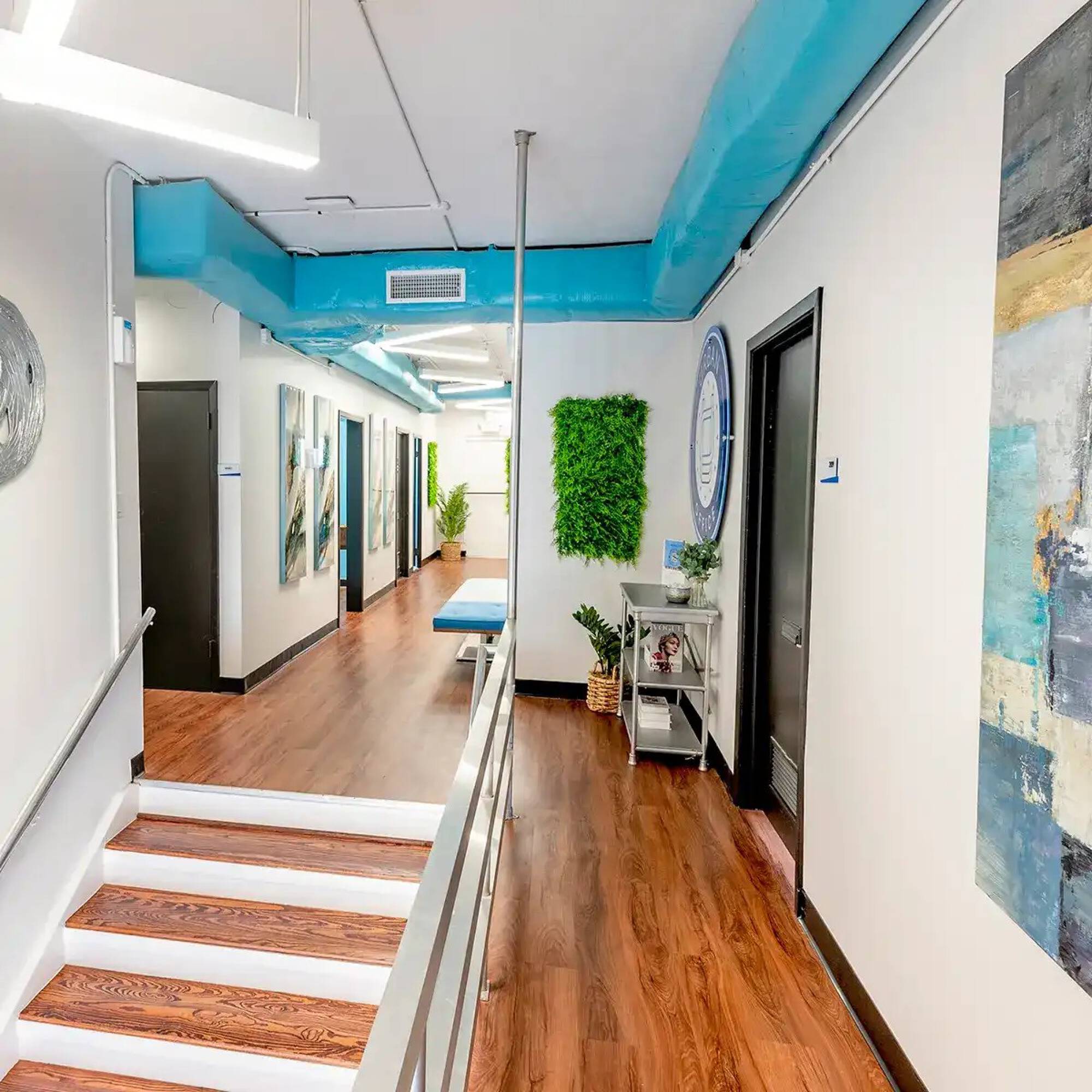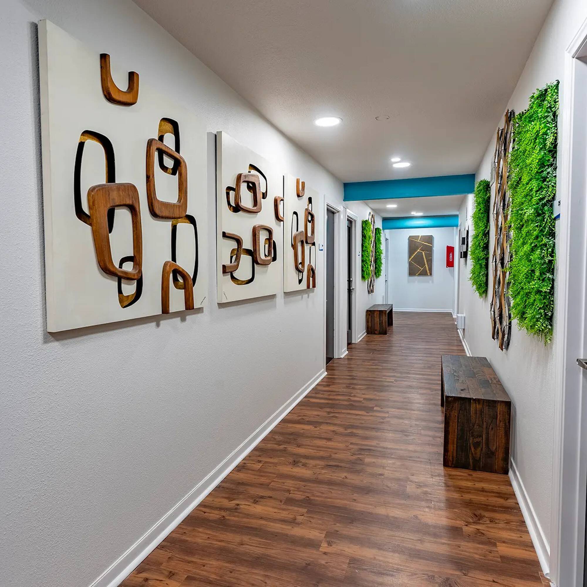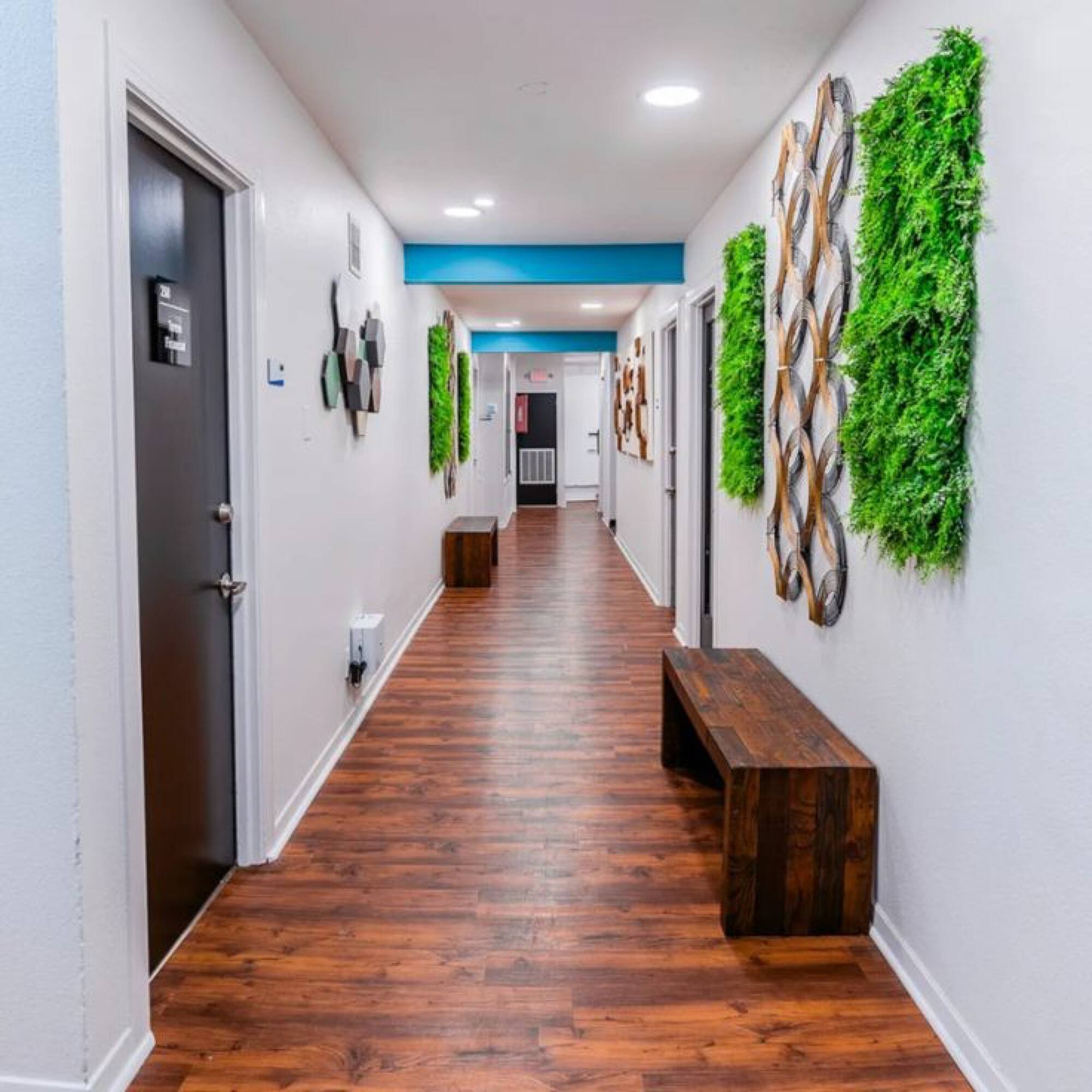 Private offices with shared amenities in a convenient location.