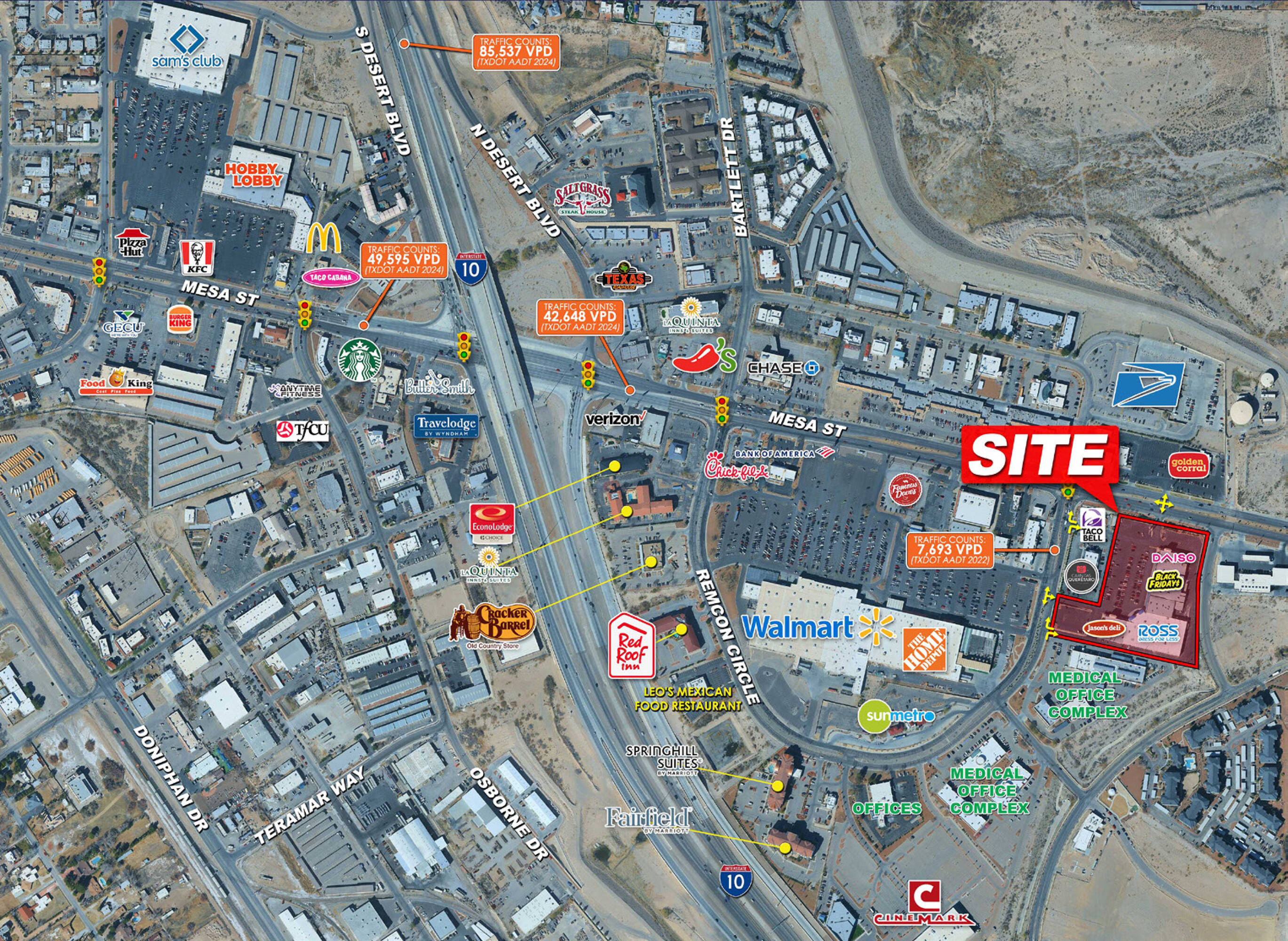 Retail spaces available for lease in El Paso, Texas.