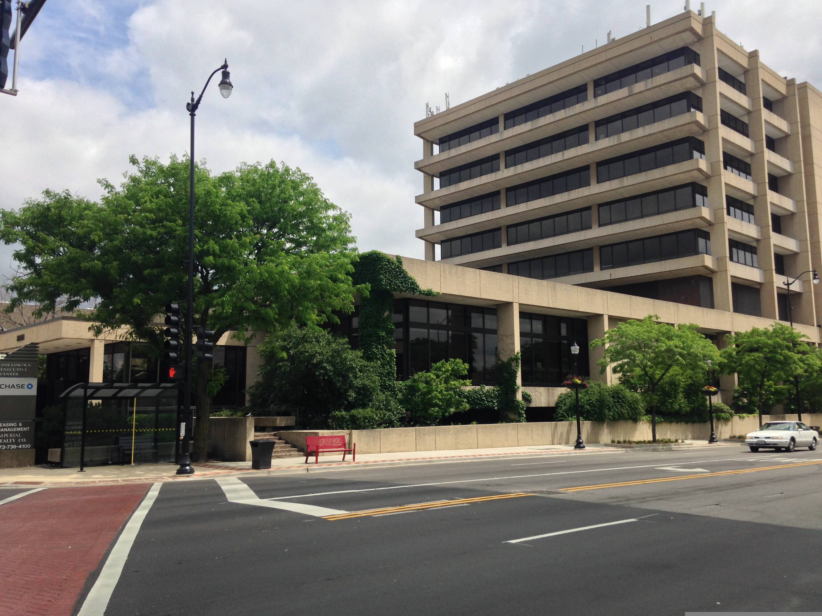 Eight-story office building in downtown Skokie near transit.