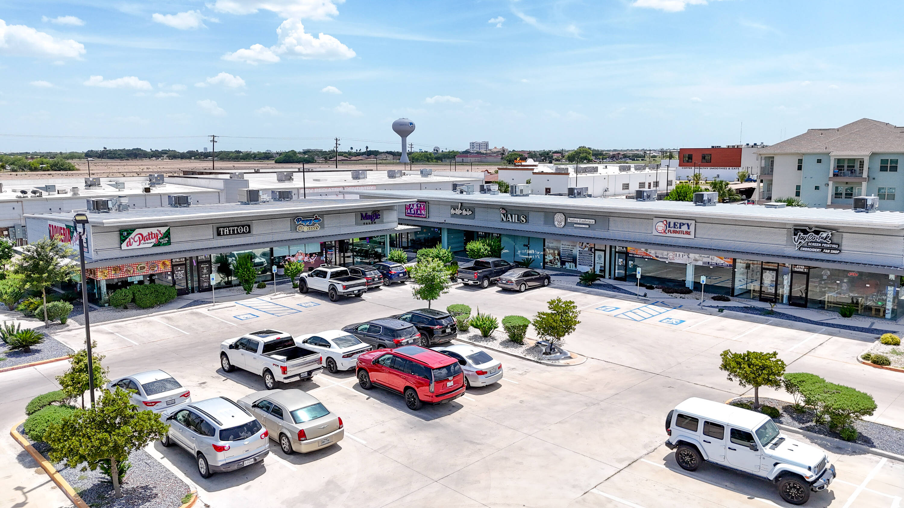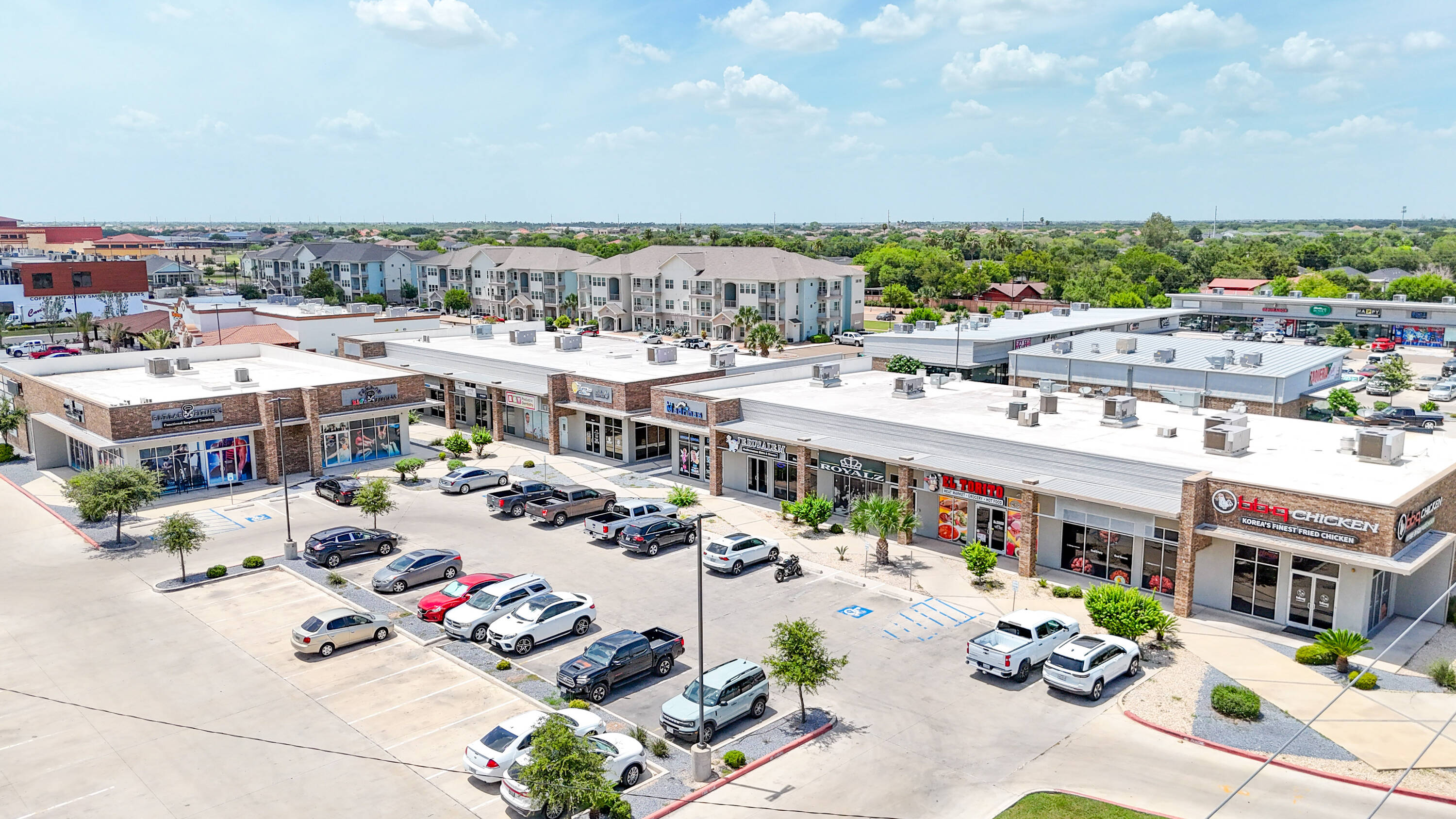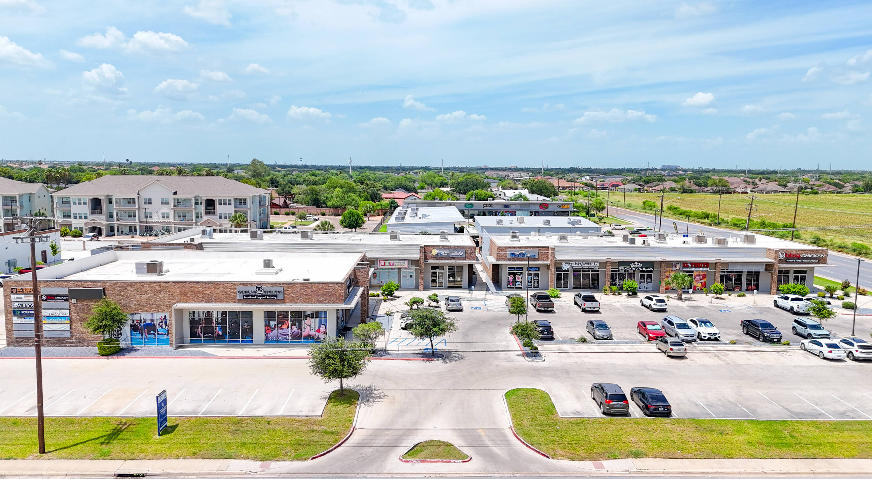Retail center at high-traffic intersection in Edinburg, Texas.