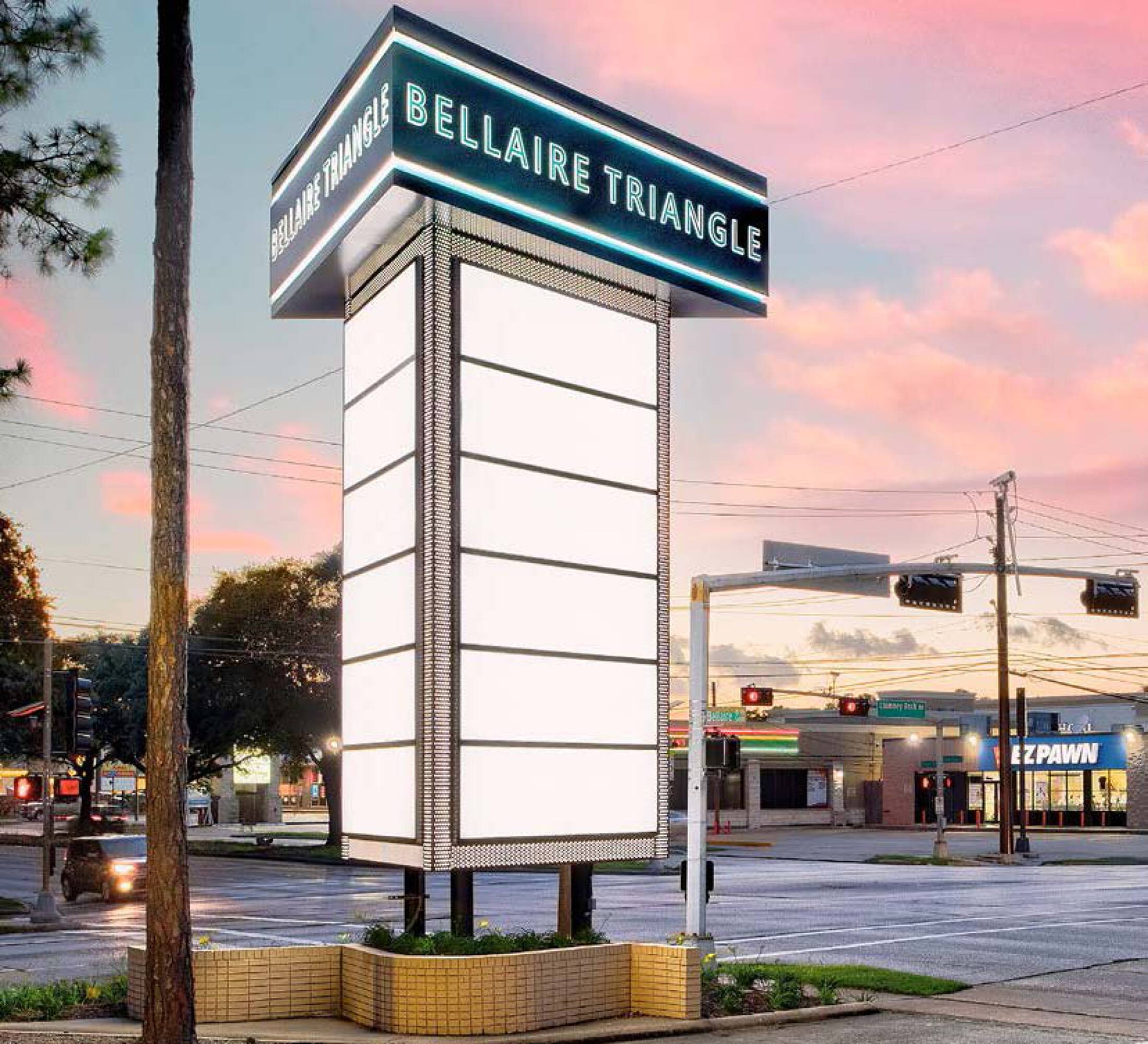 A multi-phase renovation is underway at Bellaire Triangle Shopping Center. The renovation includes exposing steel columns and brick parapet walls. Bright colors that were part of the shopping center’s original design are being restored. Public art installations on the walls will highlight new local talent. The centerpiece of the renovation will be restoring the open-air arcade between the two main buildings. The arcade will feature comfortable seating and natural light, creating a family-friendly spot. Twinkling lights will invite people to gather after dark. The property is located at 5313-5407 Bellaire Blvd, Bellaire, TX 77401.