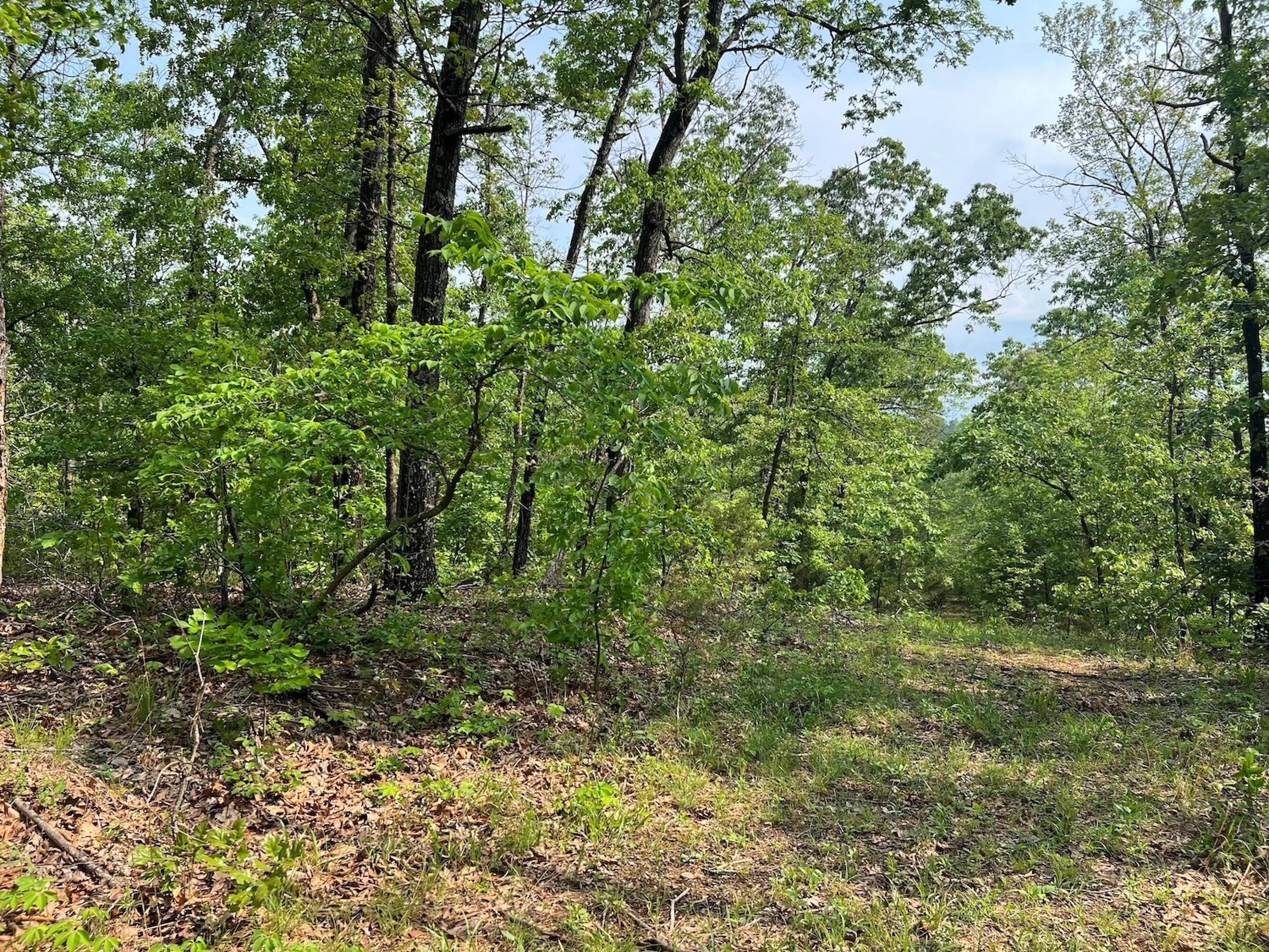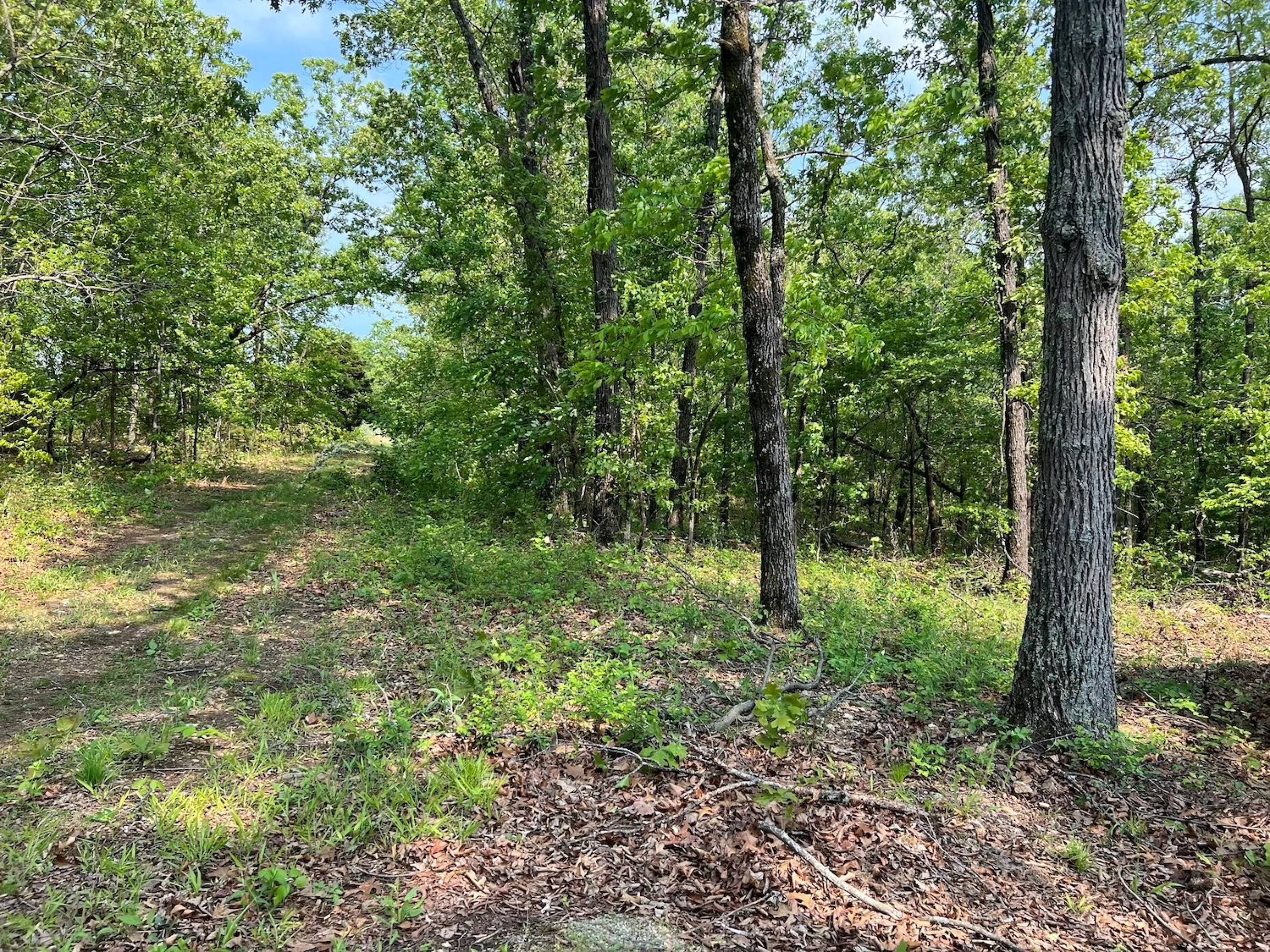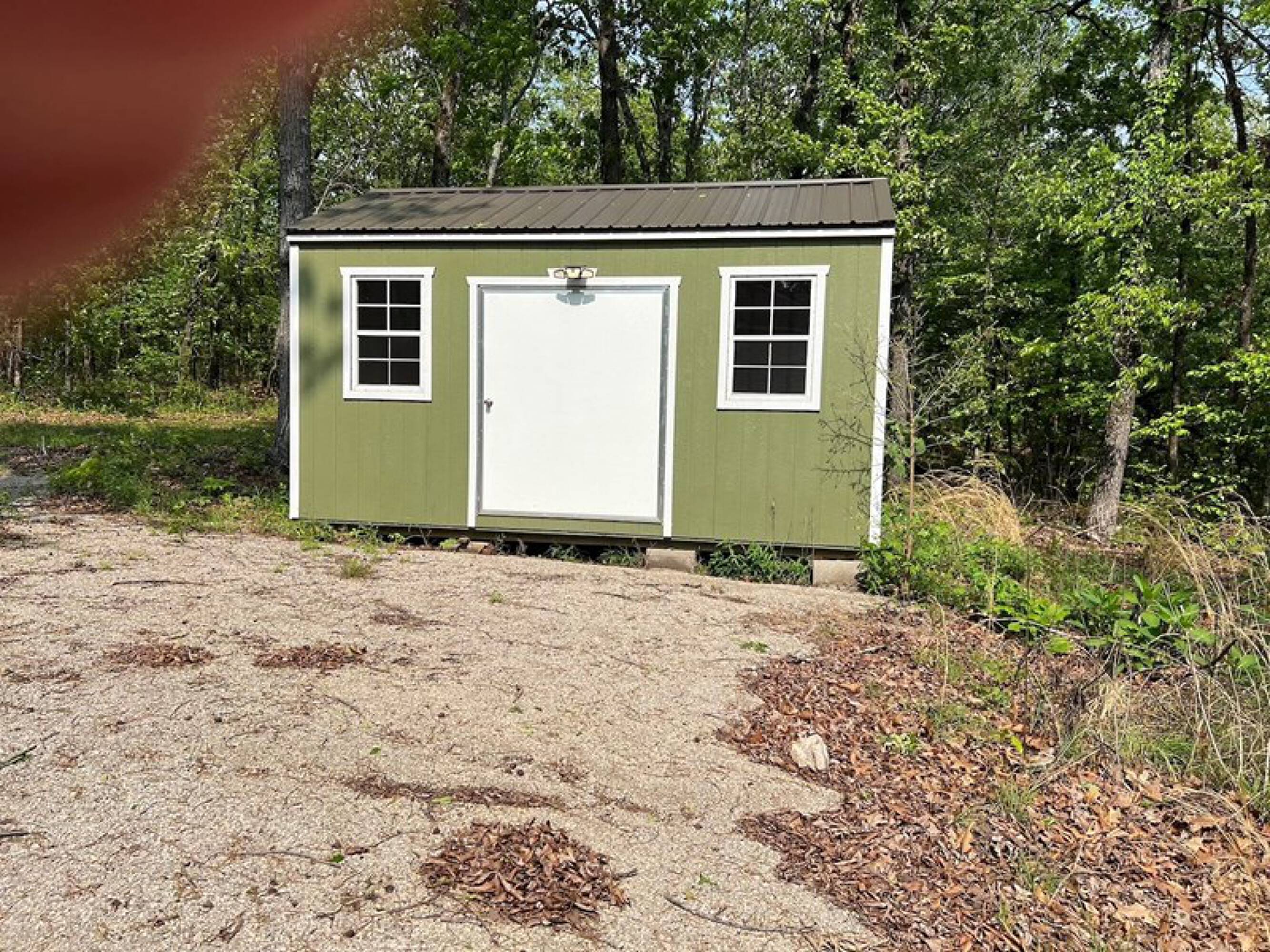 Five-acre wooded property with new cabin and storage building.