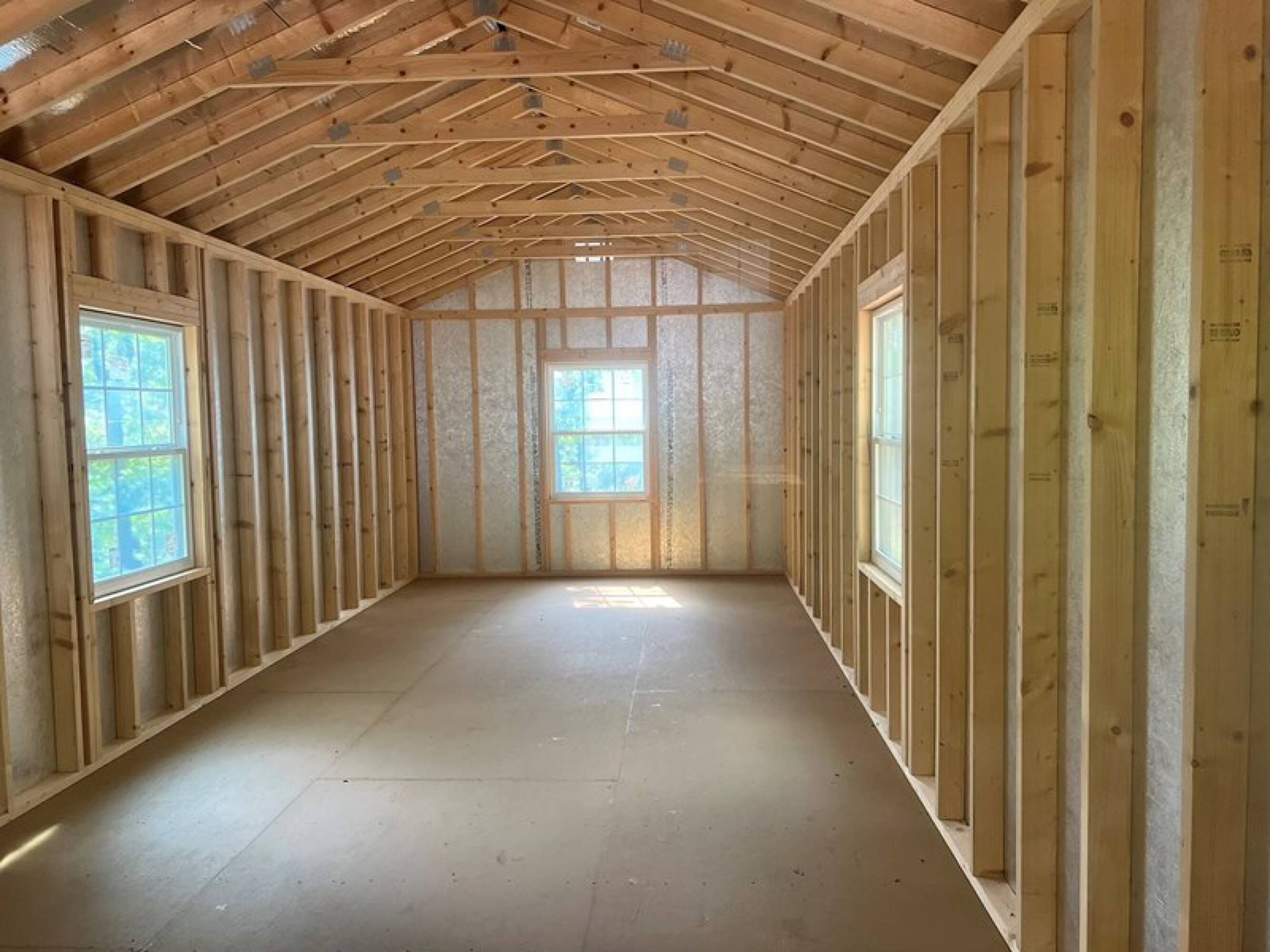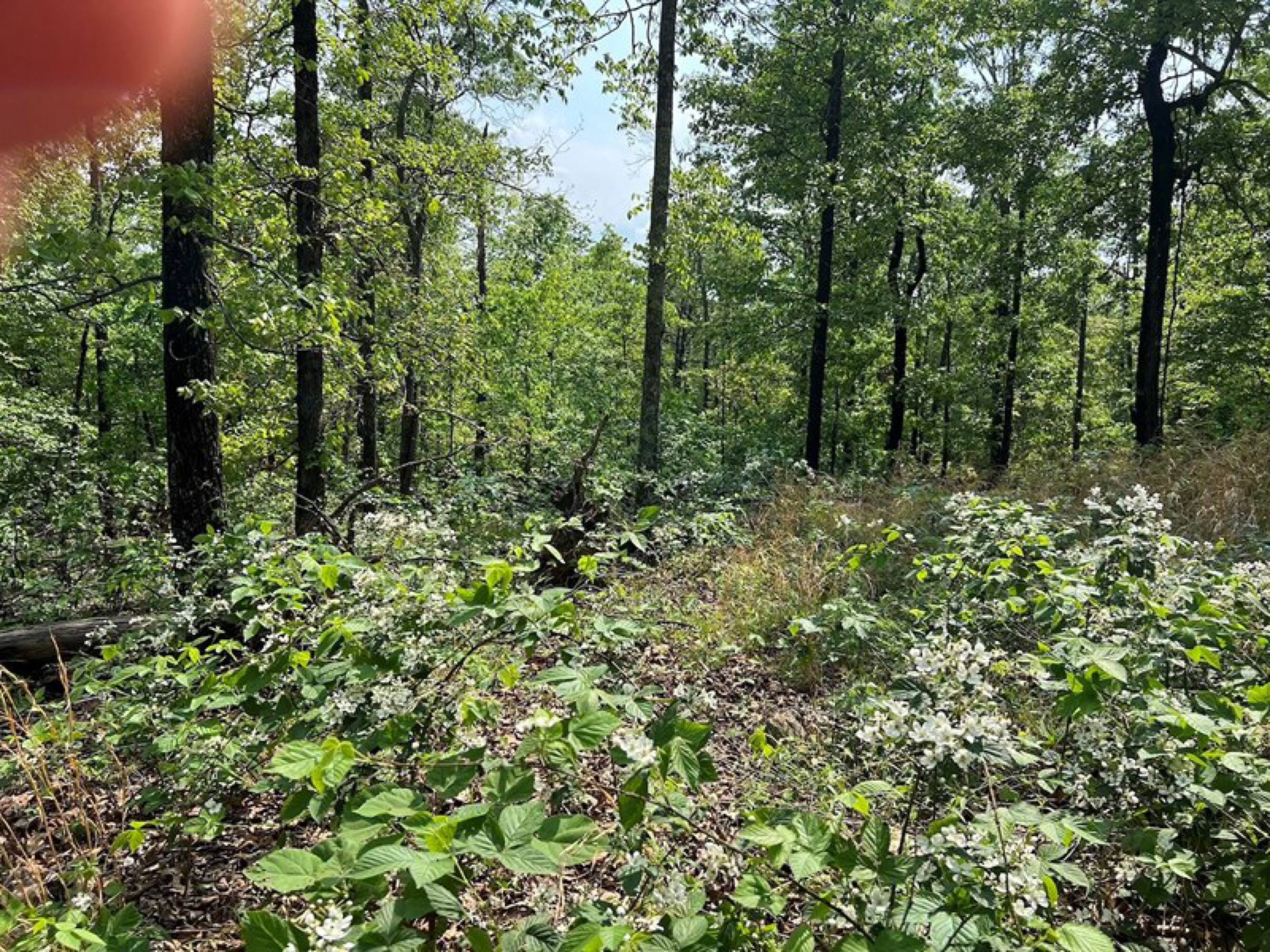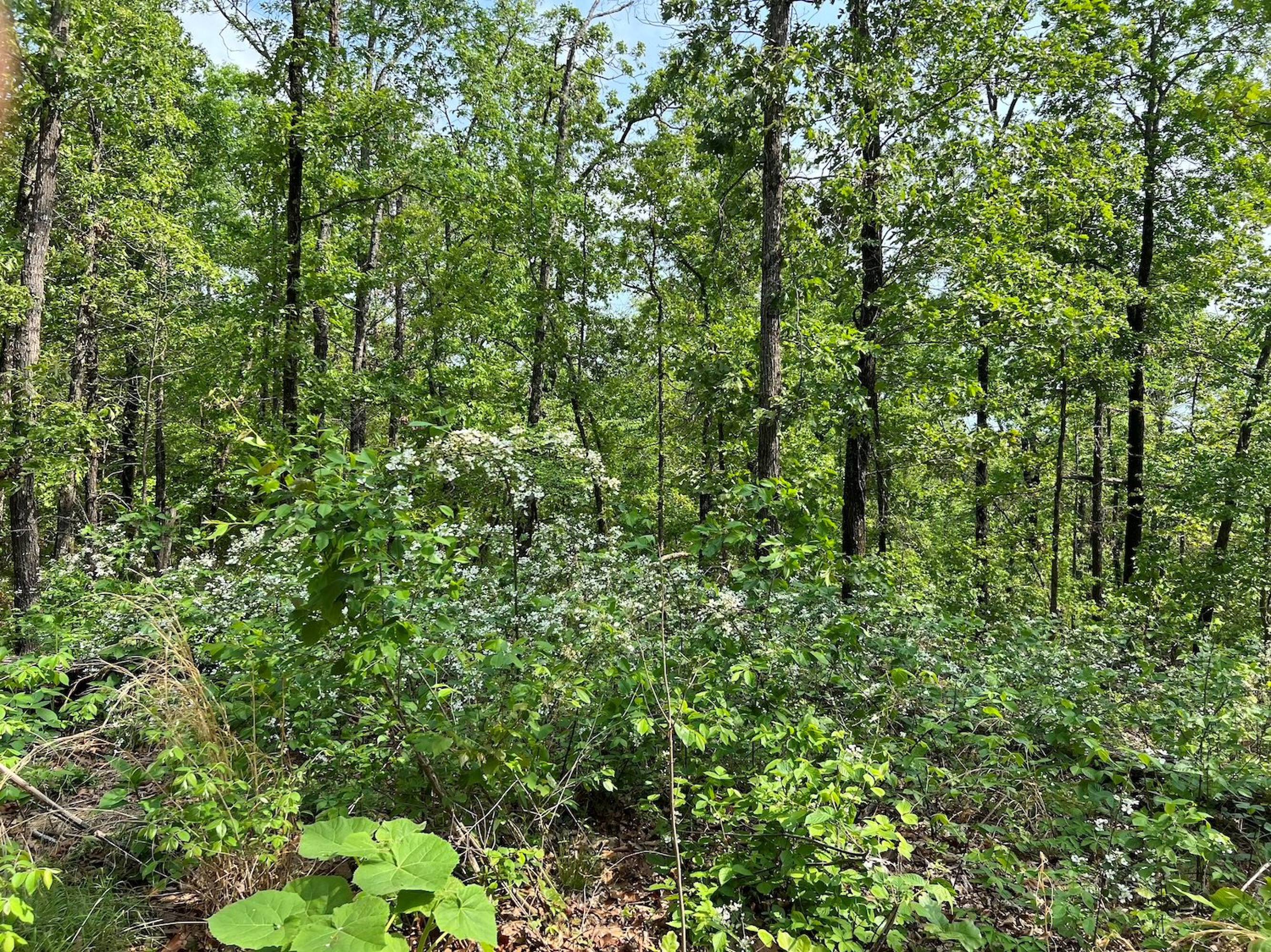 Five-acre wooded property with new cabin and storage building.