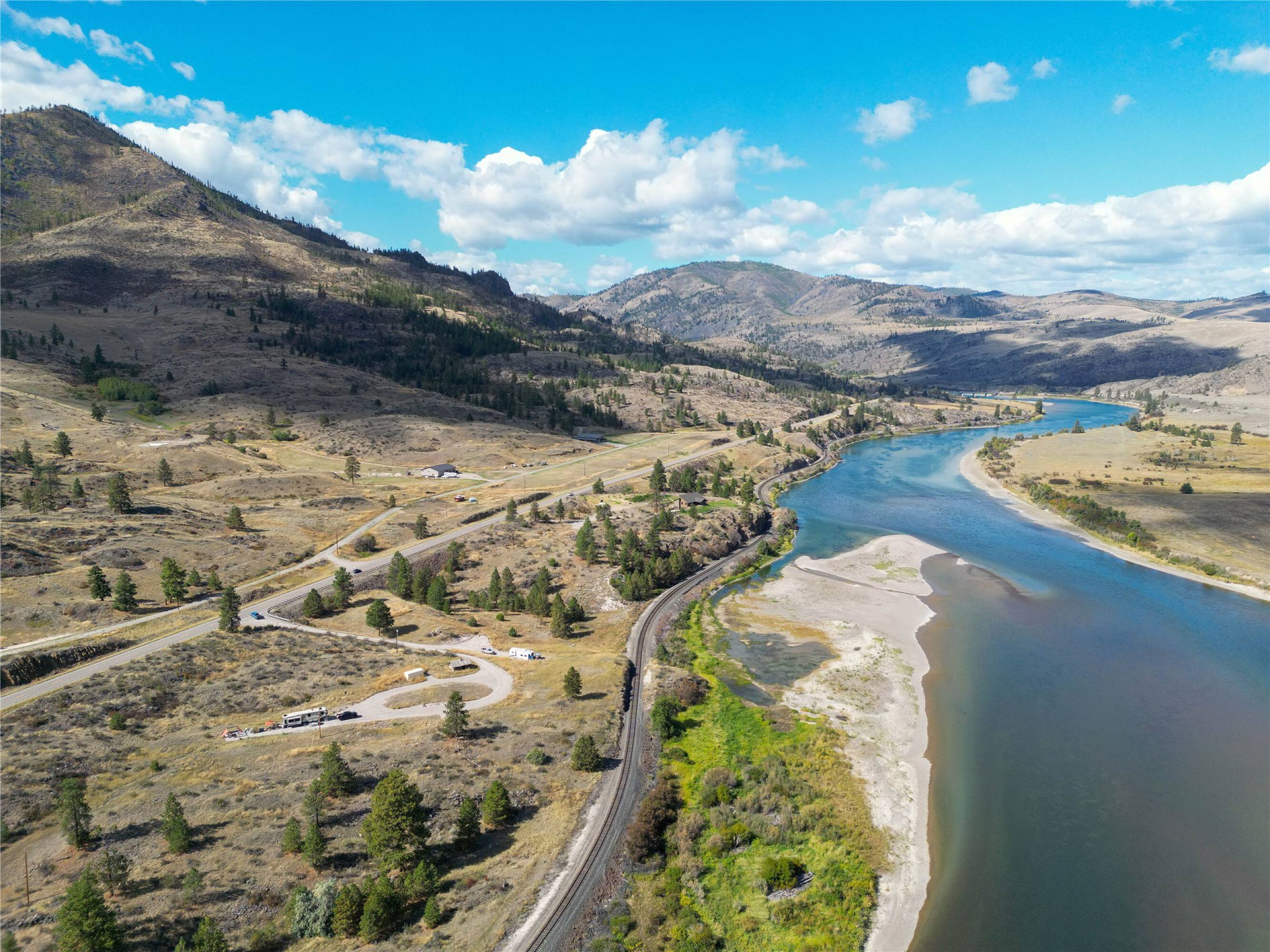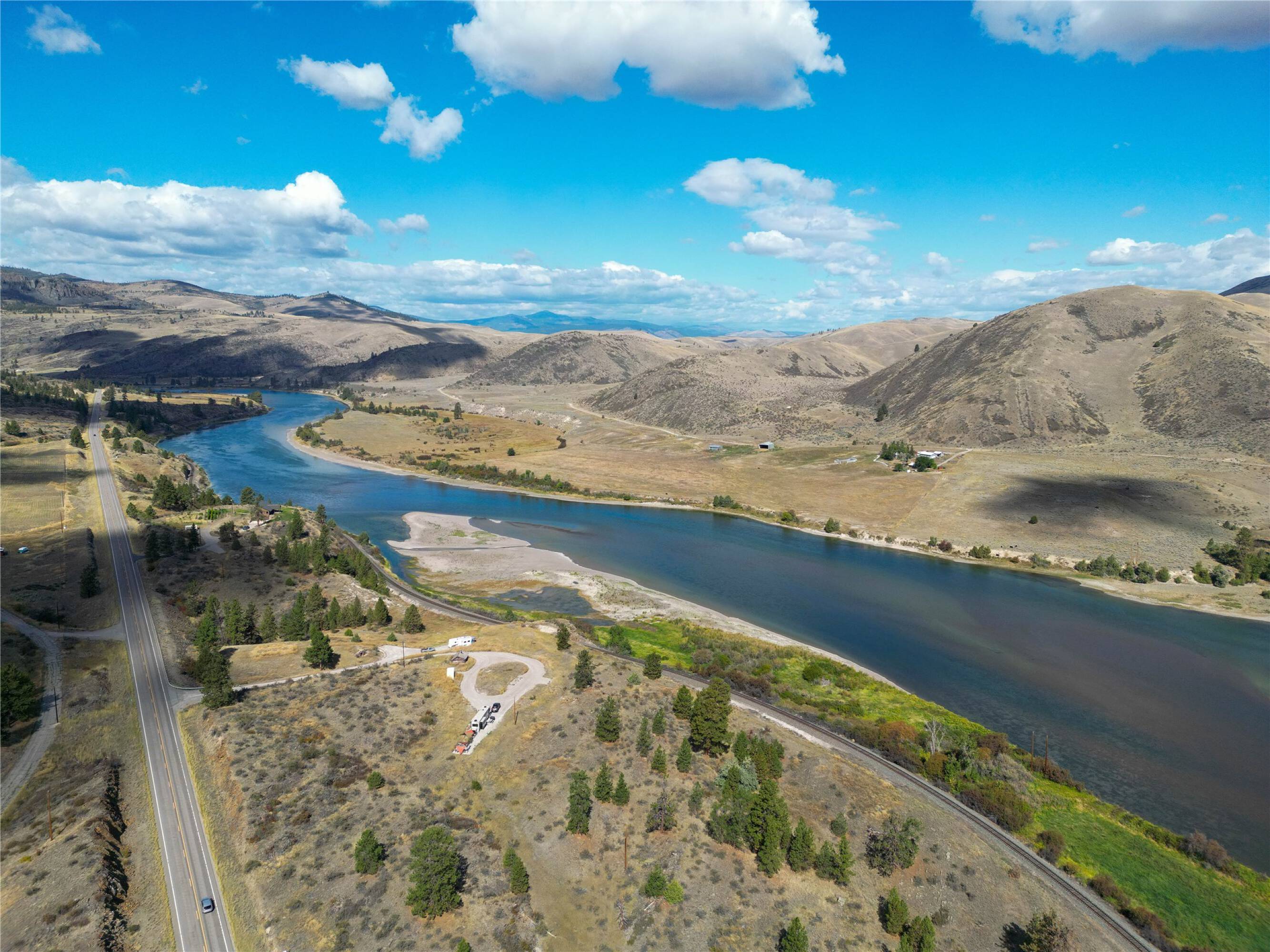 This over 13 acre property, known as Flathead River Reserve, offers river and mountain views. The estate property overlooks the Flathead River and features a 400 amp panel with three pedestals that include 50, 30, and 20 AMP plug-ins, water hose bibs, WIFI routers, and septic tanks feeding a 5-bedroom drain-field. The property has river views extending one mile up and down the river, with direct access from Highway 200. It is site developed for an estate home, accessory dwelling unit (ADU), and RV pad. A boundary line adjustment will allow for two separate main dwellings with ADUs, or the property can be maintained as an existing income-producing three-site elite RV park. The 7.28 acre parcel is considered recreational land in the flood zone and is seasonal. Located in Northwest Montana, the property is within an hour of Missoula, Montana, and 20 minutes from Plains, Montana, which offers shopping, a hospital, and recreational activities.
