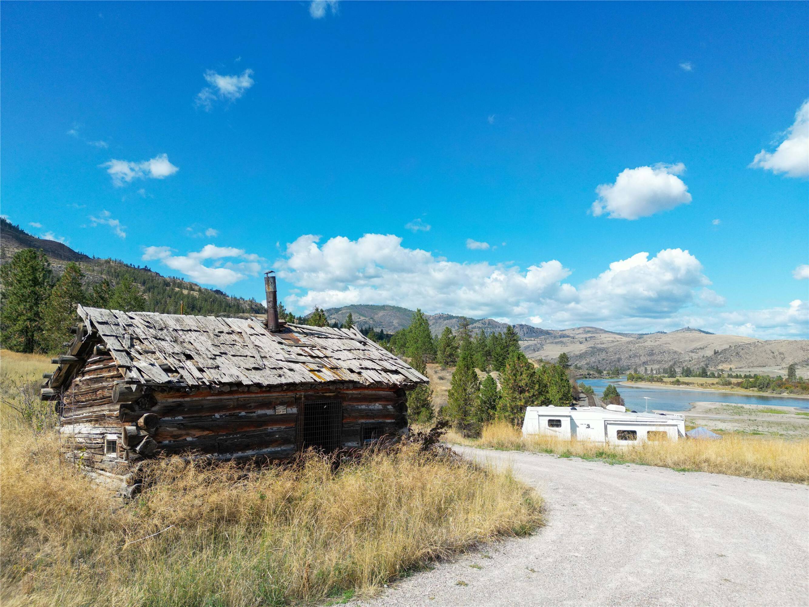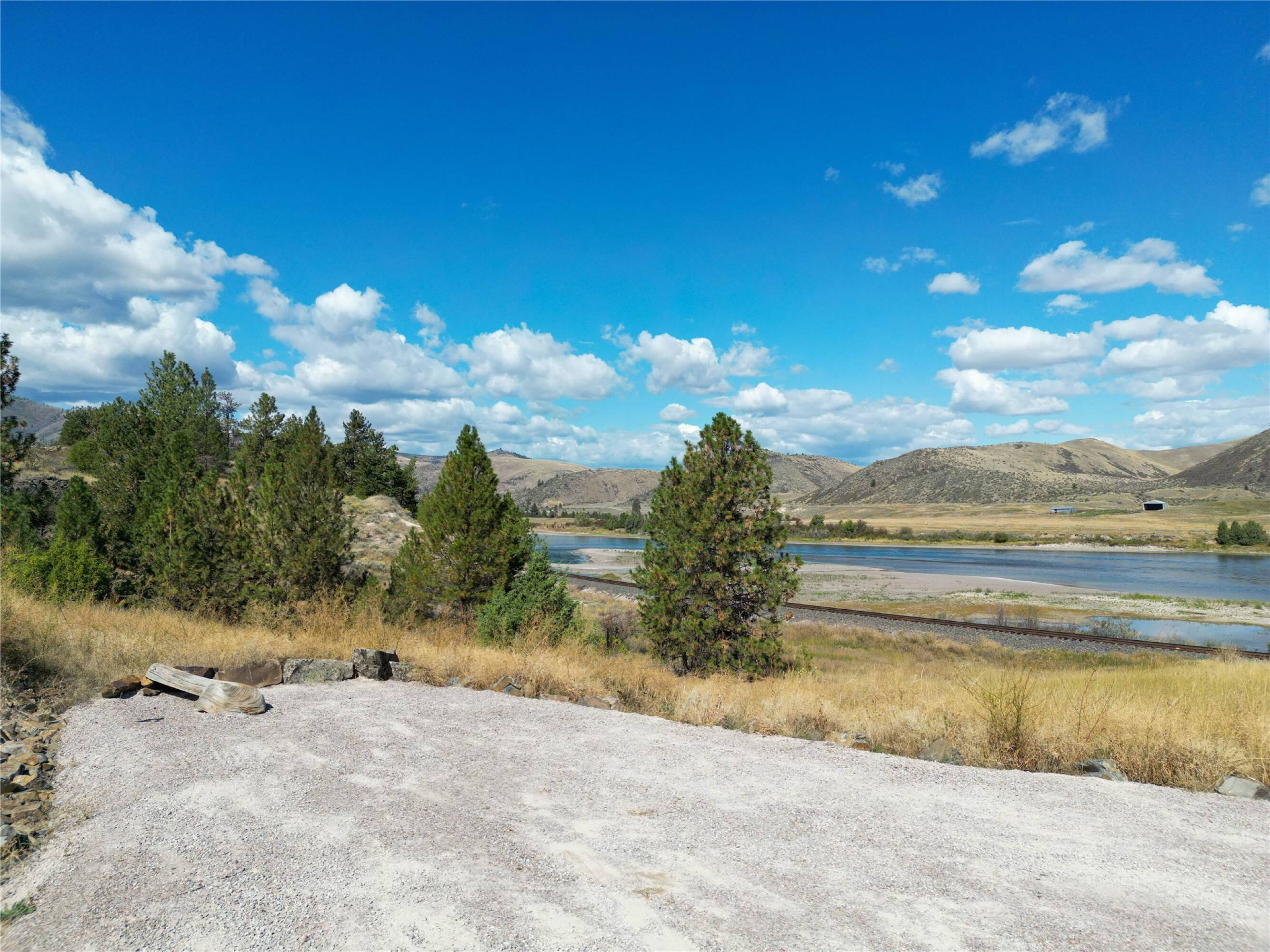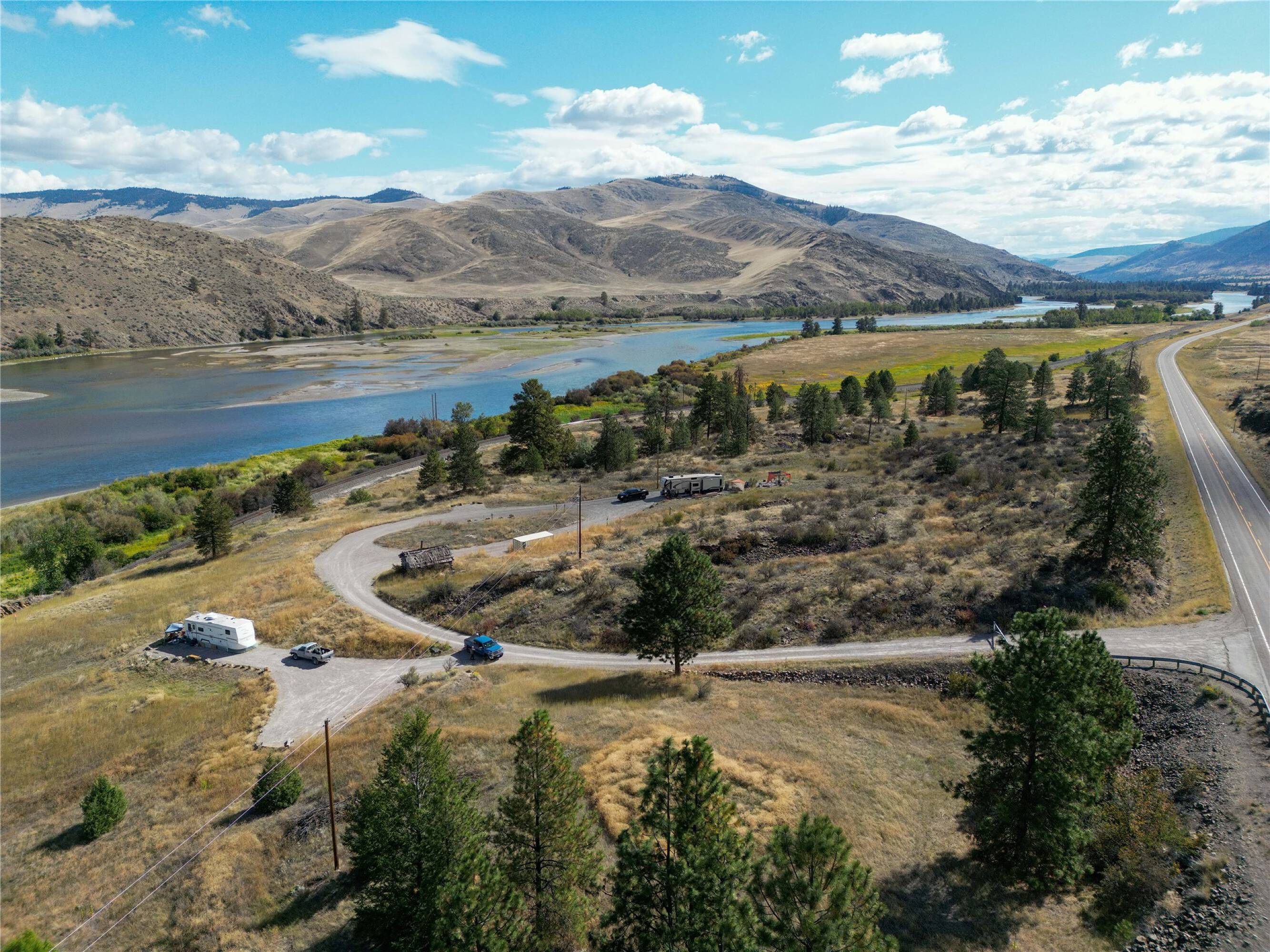 This property features: Over 13‑acre estate property with **Flathead River and mountain views**; Direct Flathead River access with **1‑mile river views**; Site developed for Estate Home, ADU, and RV pad with utilities (400amp panel, water, WIFI, septic)