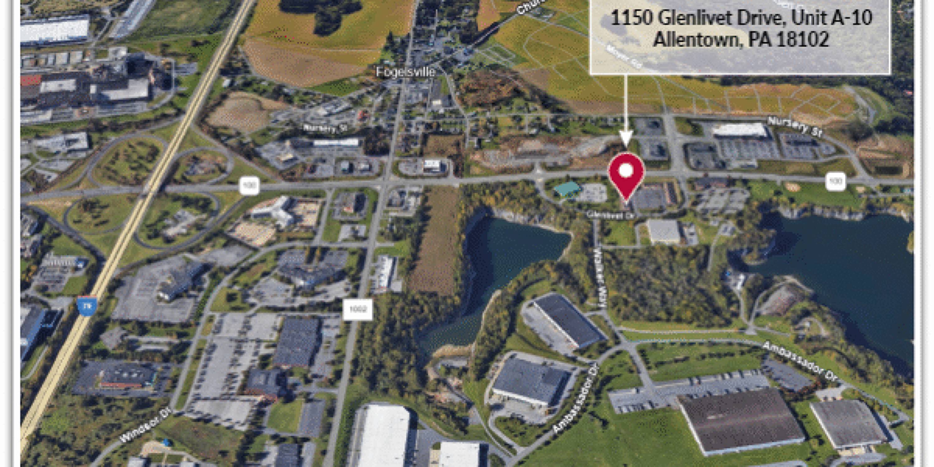 This commercial real estate property, identified as an office space, is available for lease at 1150 Glenlivet Drive, Allentown, PA 18106.