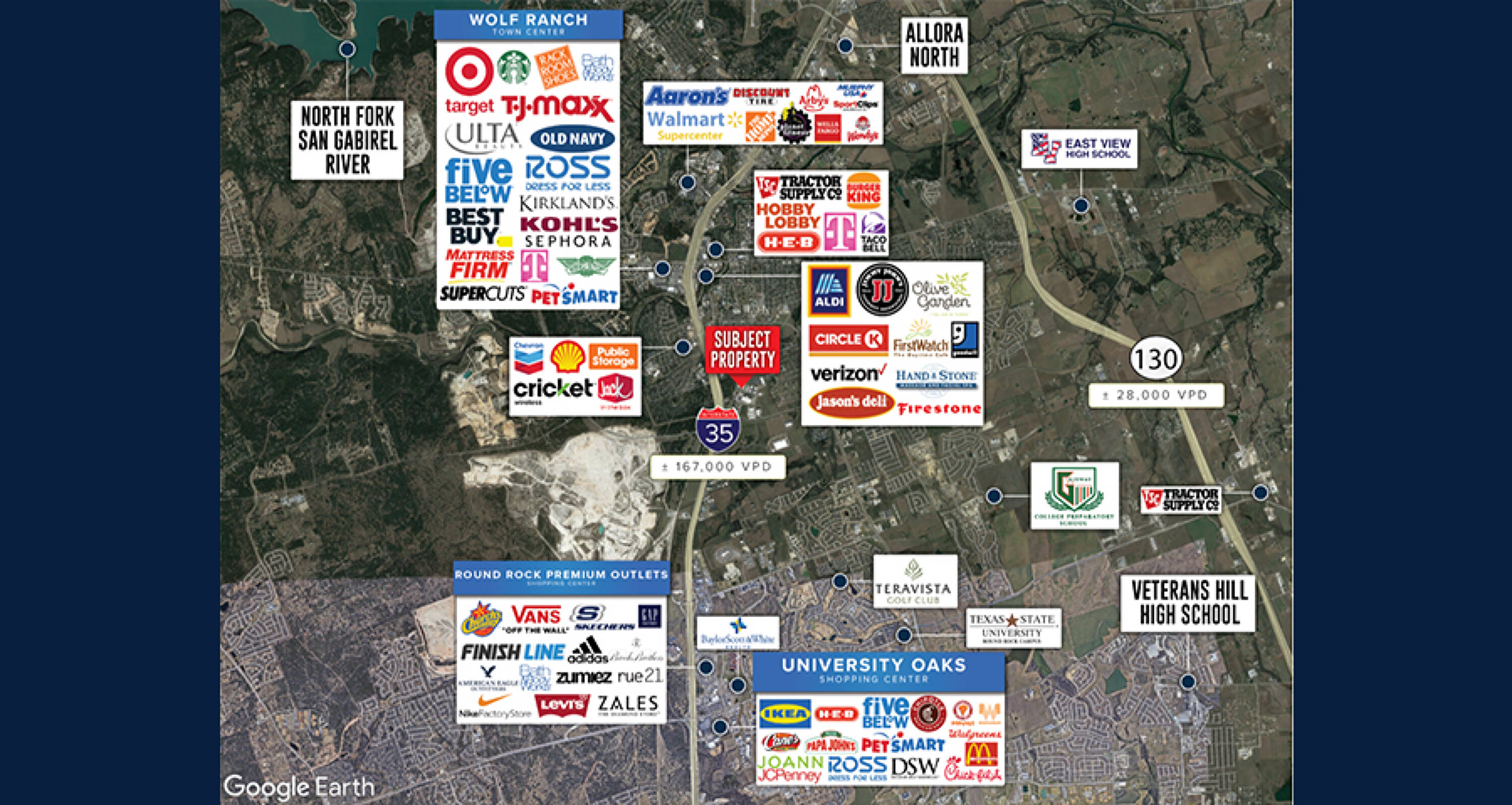 This property features: Prime location at the corner of South Austin Avenue and Cooperative Way, minutes from I‑35 and downtown Georgetown.; Flexible suite options available, ranging from 1,700 to 6,800 square feet per building.; High visibility with over 124,000 vehicles per day (VPD) at nearby I‑35.