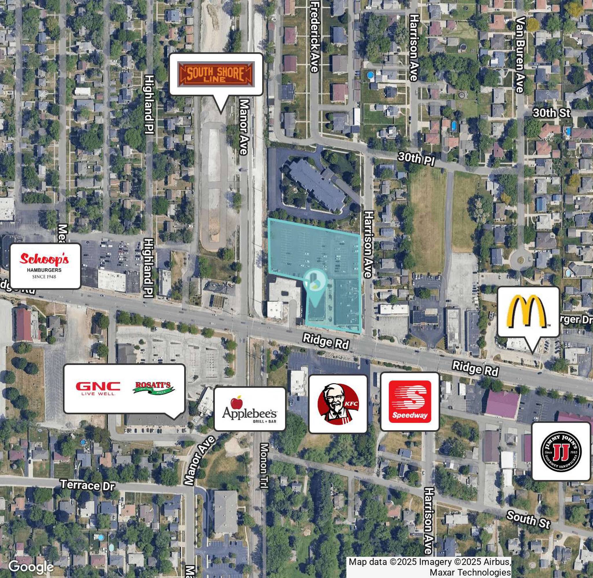 The Harrison Ridge Shopping Center is a 34,398 square foot retail center located at 419-435 Ridge Road in Munster, Indiana. Situated on a 2.36 acre site at a signalized intersection, the center is positioned perpendicular to Harrison Street, a major retail thoroughfare. The property features a large parking area in the rear. It is located on the corner of Harrison and Ridge in the busy commercial district of Munster, IN.