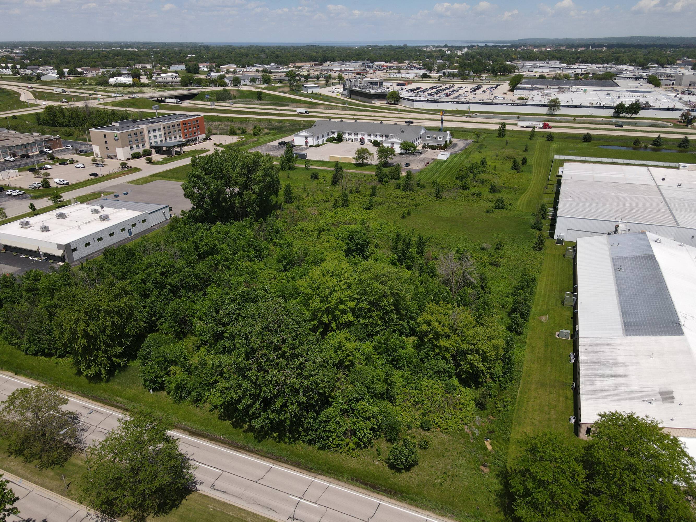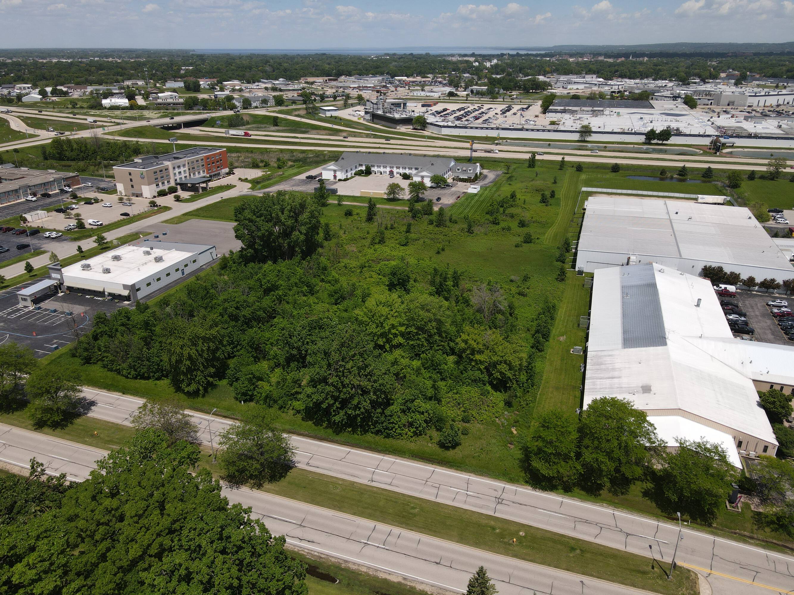 This 5.11-acre parcel offers frontage on Highway 41, presenting a significant opportunity for commercial development. The location benefits from high visibility from Highway 41 and the Military Road Interchange, which serves Mercury Marine traffic. The property is zoned as General Business District, accommodating a variety of potential uses. The site is located near established businesses, including the Holiday Inn, Radisson, and Elkay Interiors.