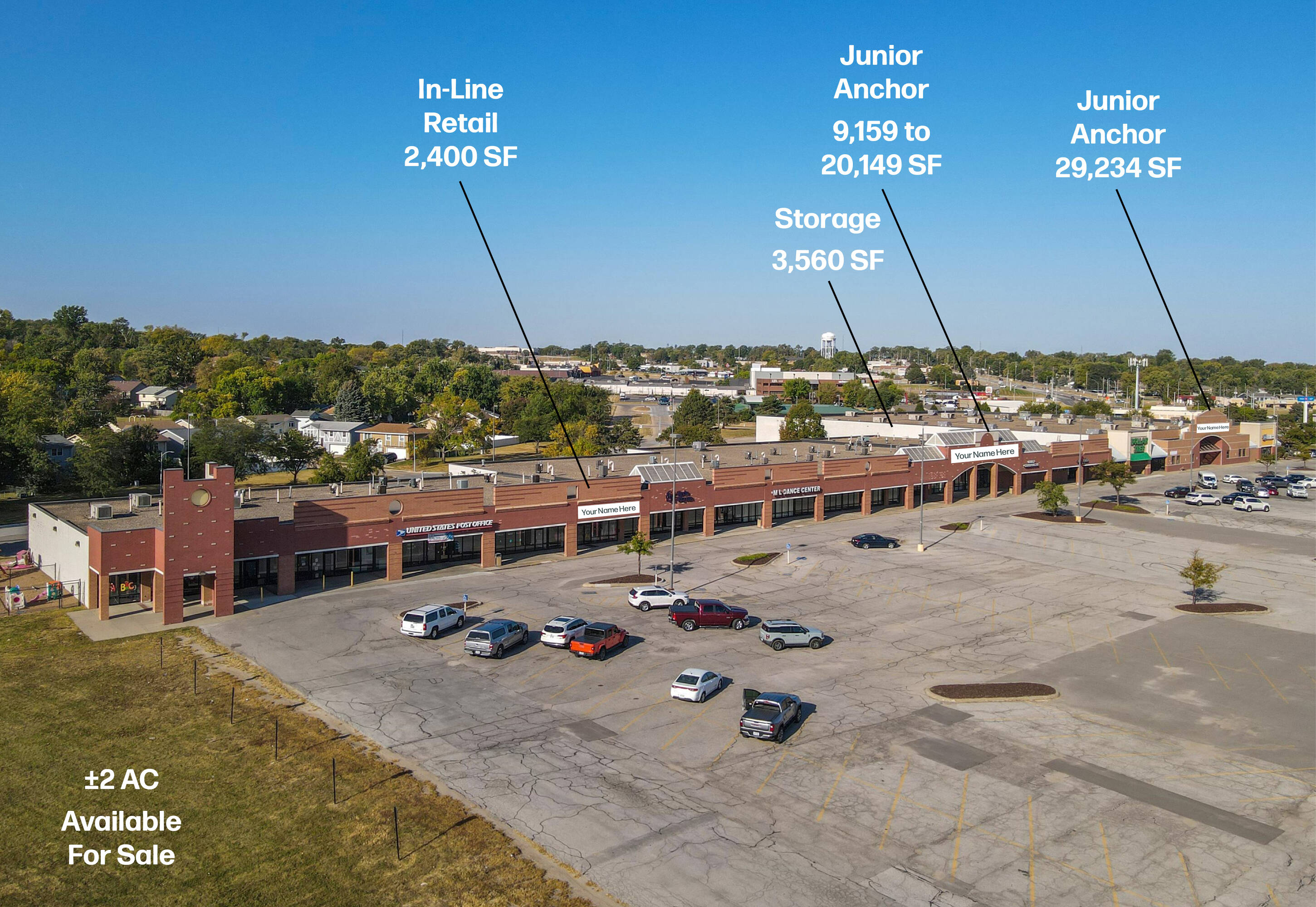 Located at 5222-5253 S 136th St in Omaha, Nebraska, Deerfield Place offers in-line retail and warehouse spaces for lease. The property features a 2,400 SF in-line retail space, junior anchor spaces of 20,149 SF (demisable to 9,159 and 10,990 SF) and 29,234 SF, and a 3,560 SF storage space. An approximately 2 AC land lot is also available. Deerfield Place is a 128,000 square foot neighborhood retail center in the Millard area of Omaha, with tenants including USPS, Crunch Fitness, FitLife, and Mary Lorraine’s Dance Center. The location provides easy access off Q Street and Discovery Drive. The Community Commercial zoning allows for a variety of uses, including retail, sports and recreation, entertainment, auto sales and repair, medical, civic, and warehouse. One available space, formerly a boutique/apparel store, features an open layout, a large back room, two offices, and two restrooms. Another available space is a 20,149 SF junior anchor space, demisable to 9,159 and 10,990 SF. The total available space ranges from 2,400 to 29,234 SF. The lease rate is negotiable at $15.95 PSF, with a triple net lease type and NNNs estimated at $3.50 PSF for 2025.