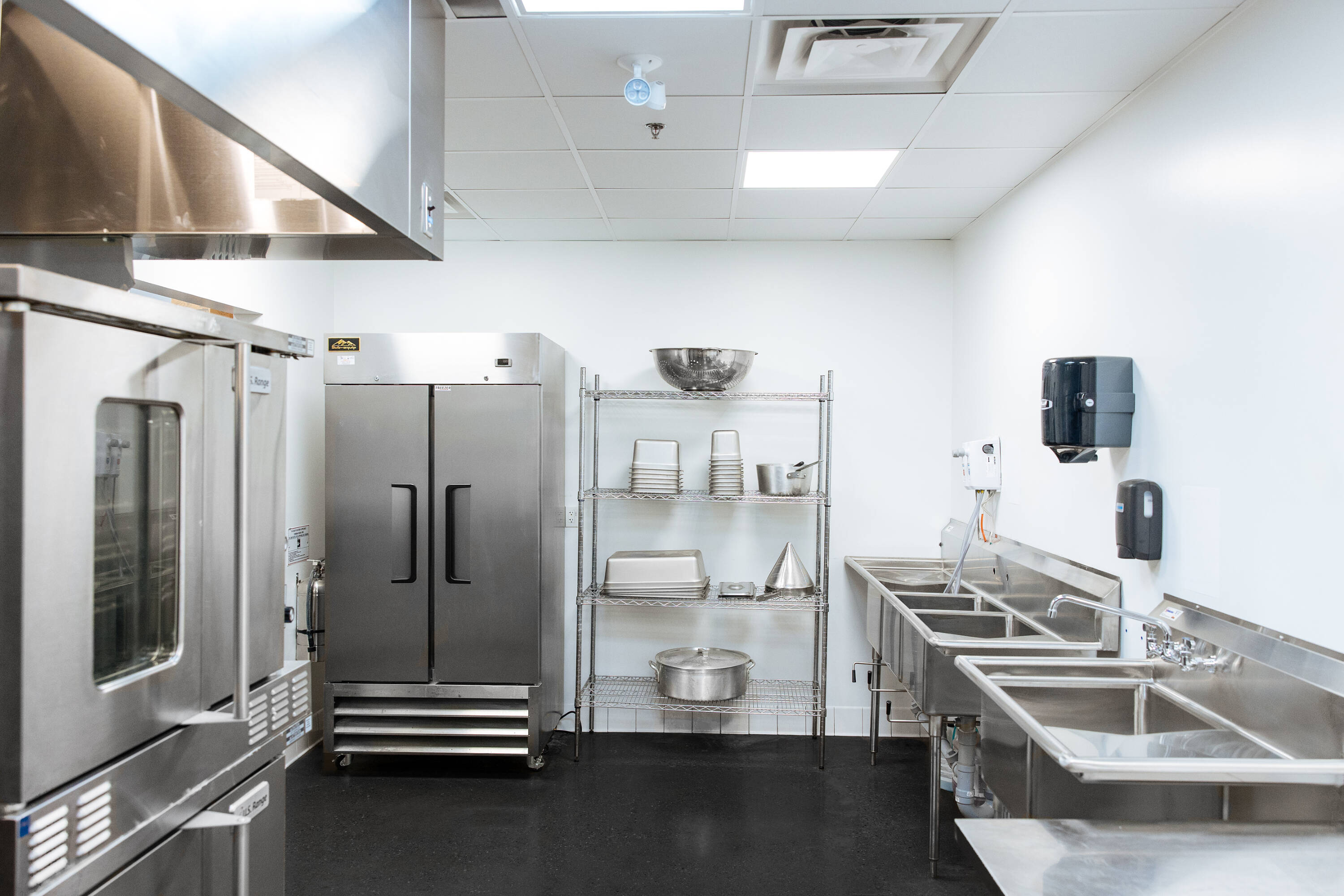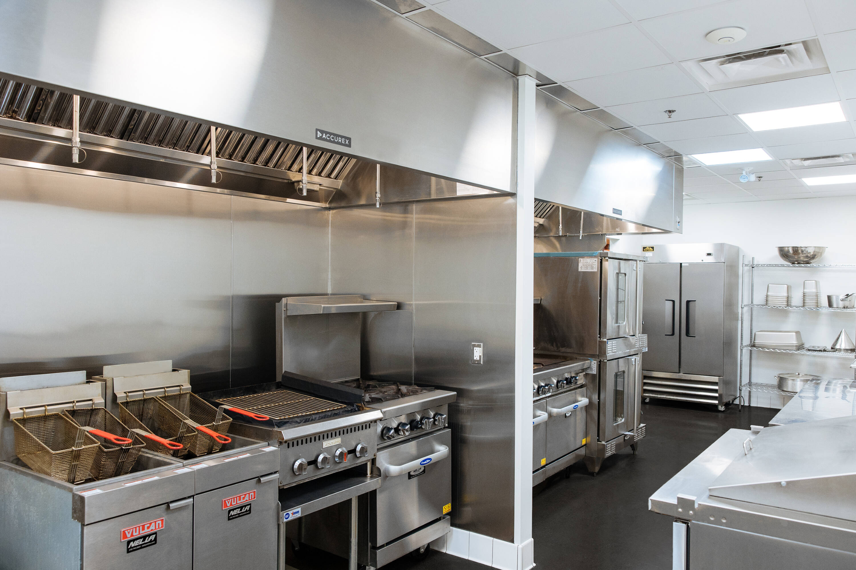 Centrally located, newly renovated commercial kitchens with flexible space.
