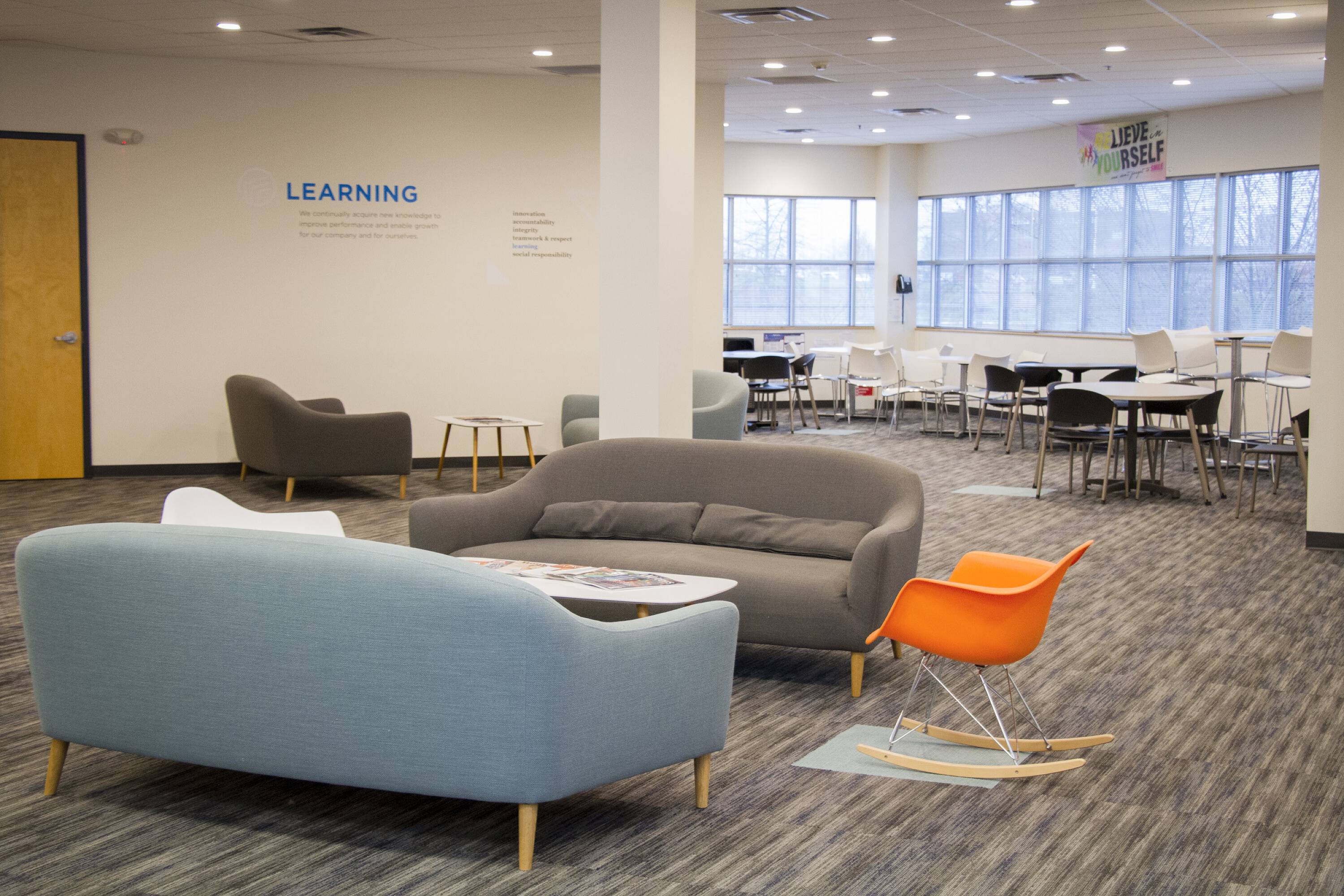 Two-story office building with flexible space and ample parking.