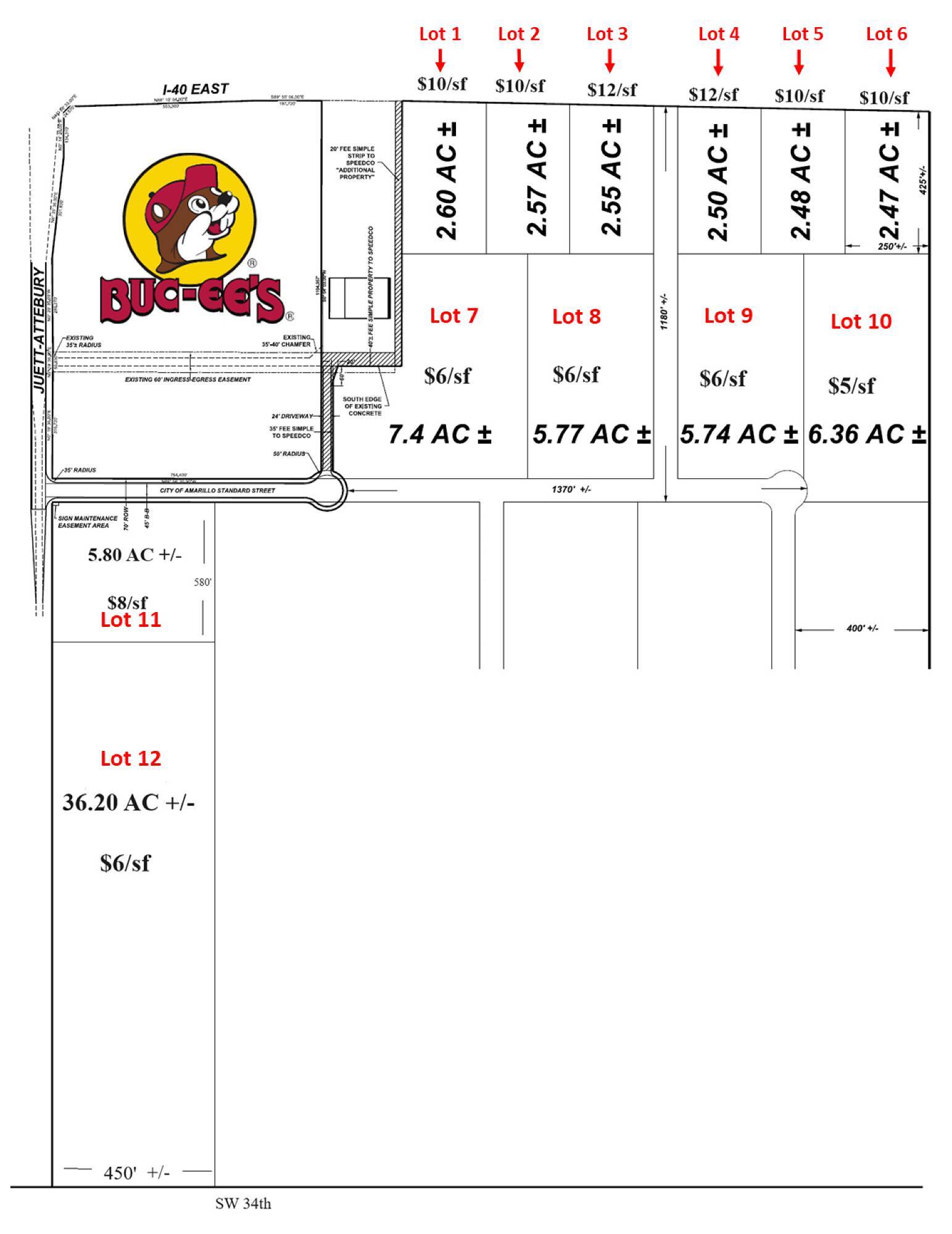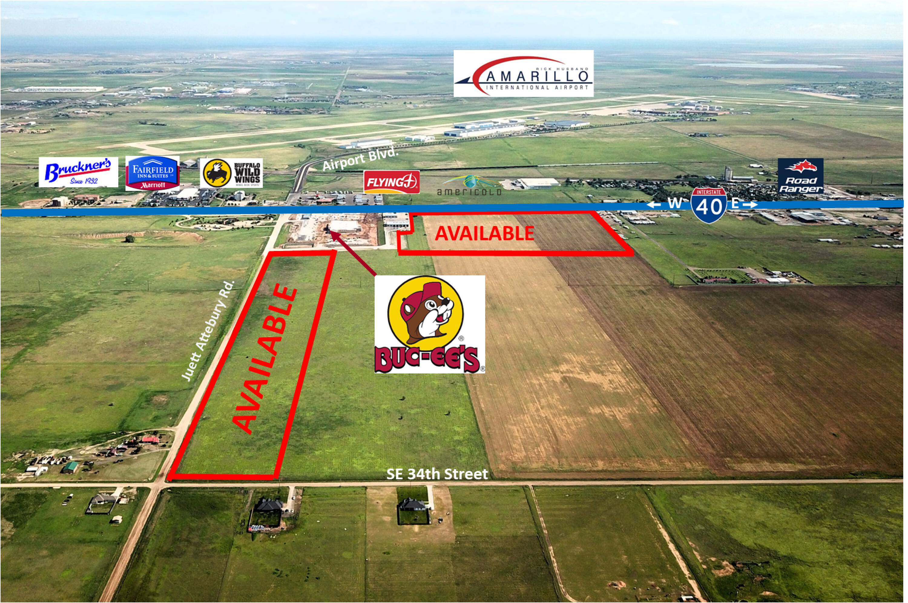 Land with I-40 and Airport Blvd frontage near Buc-ee's.