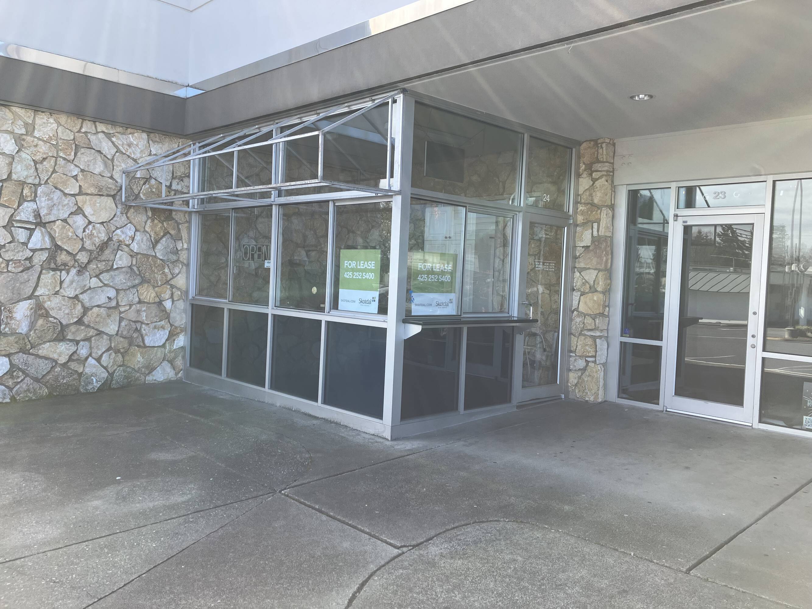 Former drugstore available for lease on a prominent corner.