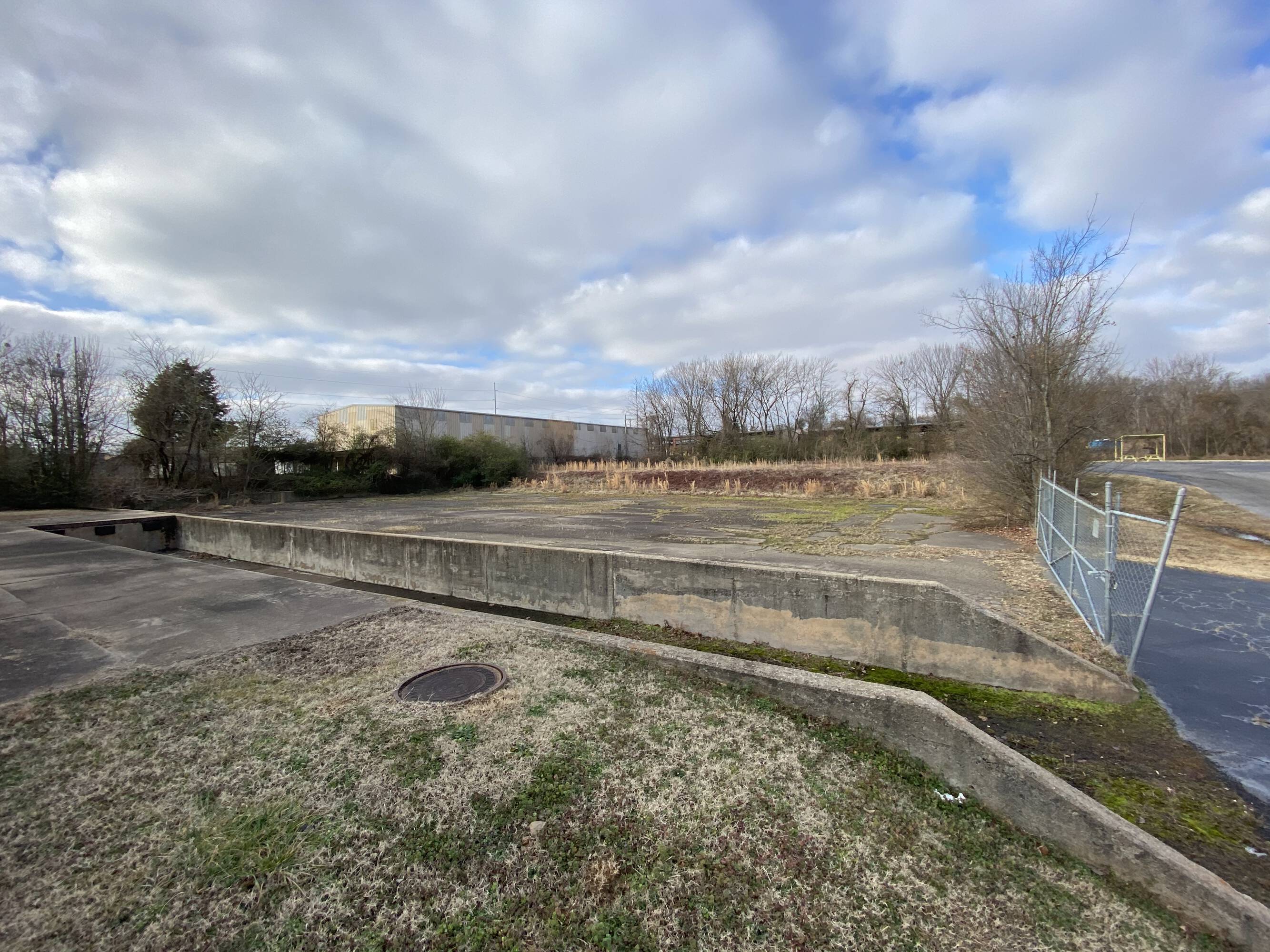 Industrial flex warehouse space for rent with fenced parking.