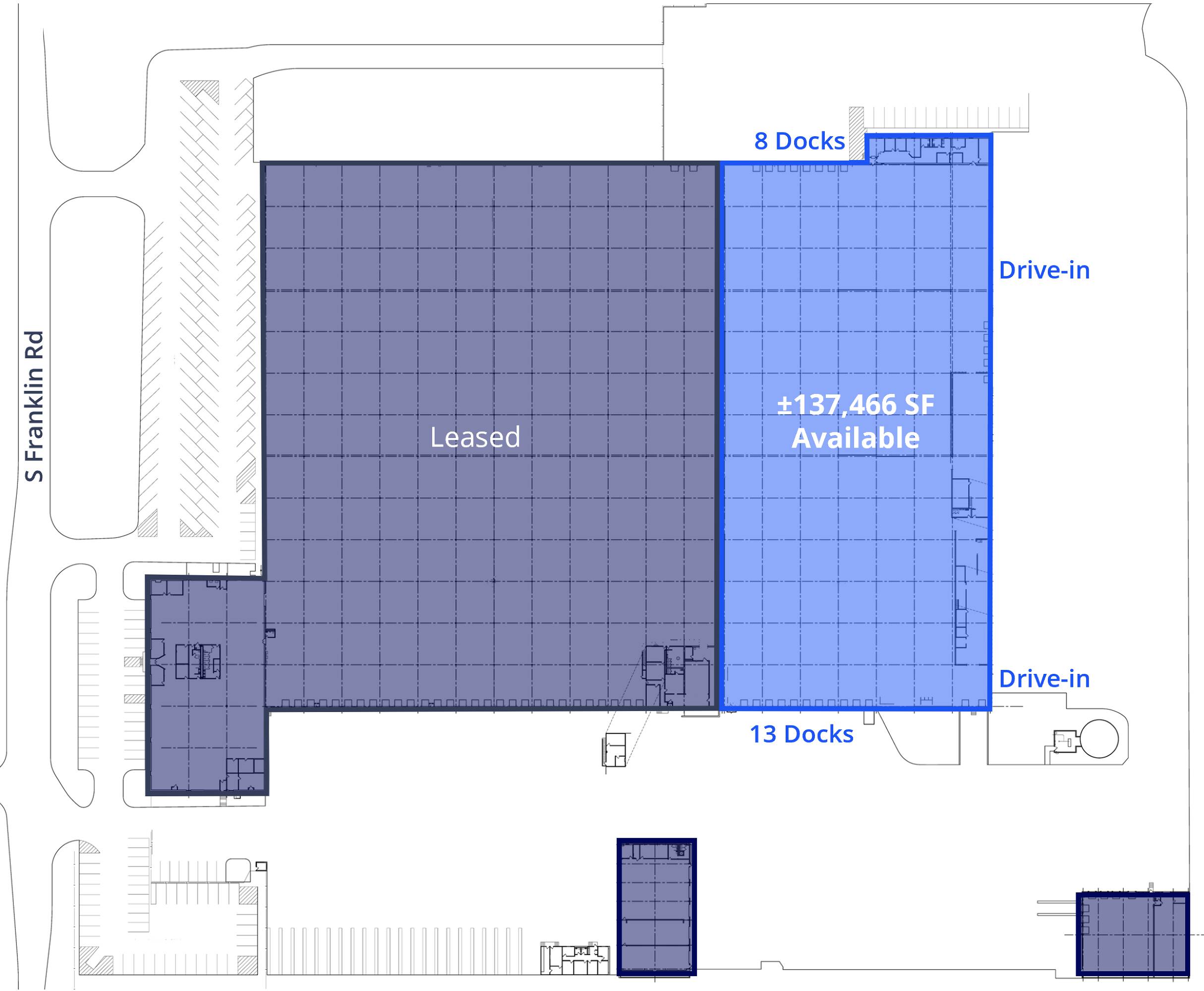 Industrial space available ranging from 50,000 to 137,466 SqFt.