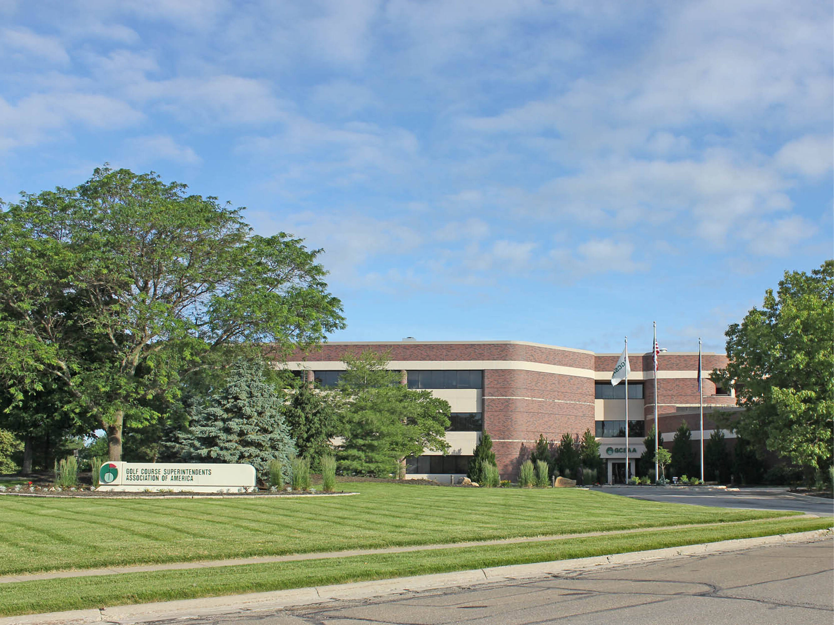 Office building with park-like setting, easy highway access.