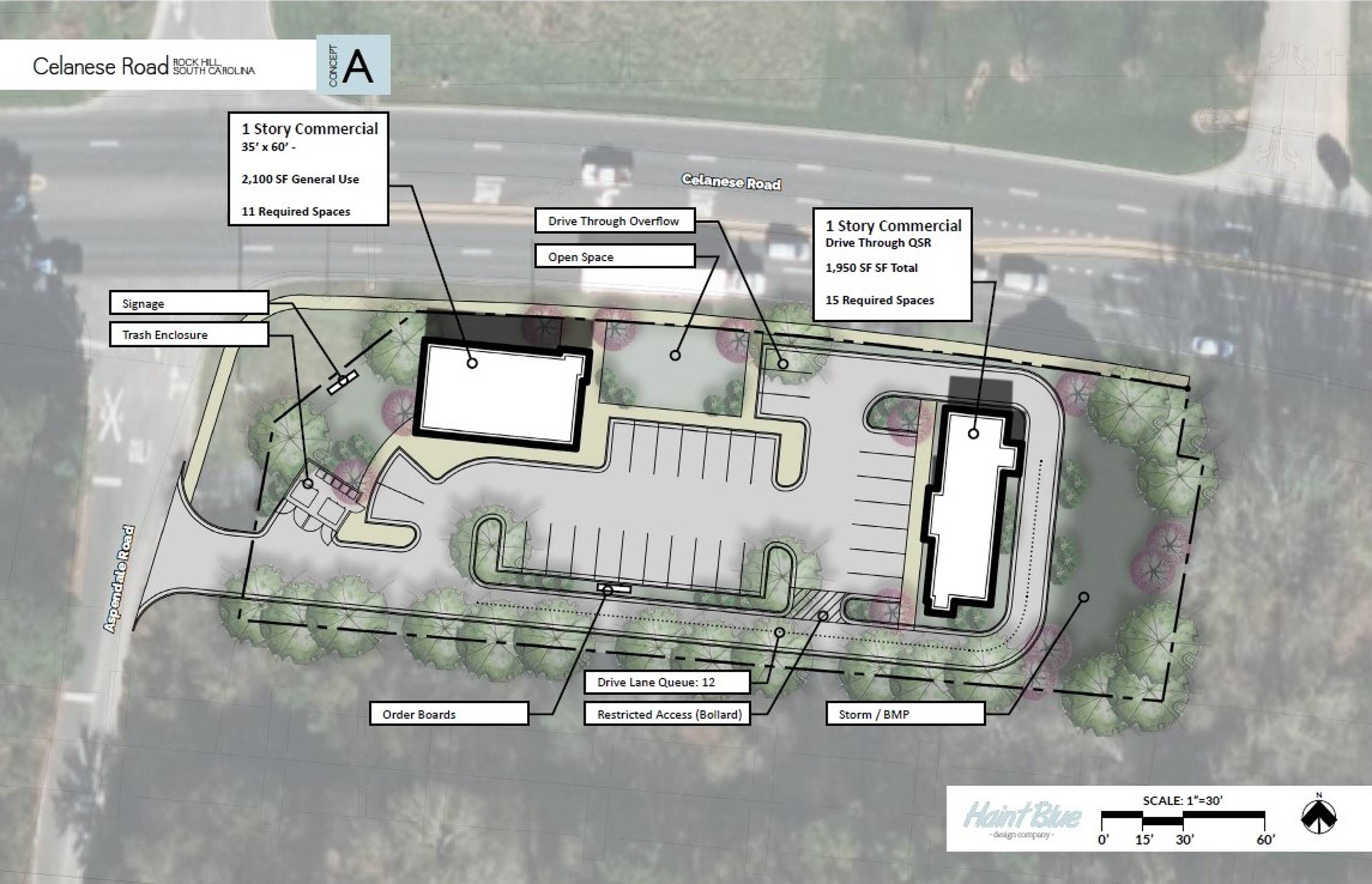 Hard corner land for redevelopment at signalized intersection.