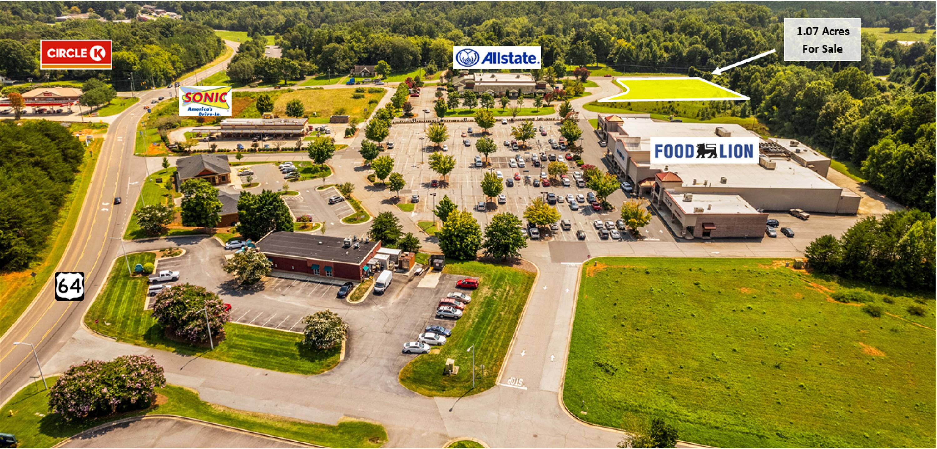 Outparcel in shopping center with frontage on Hwy 64.