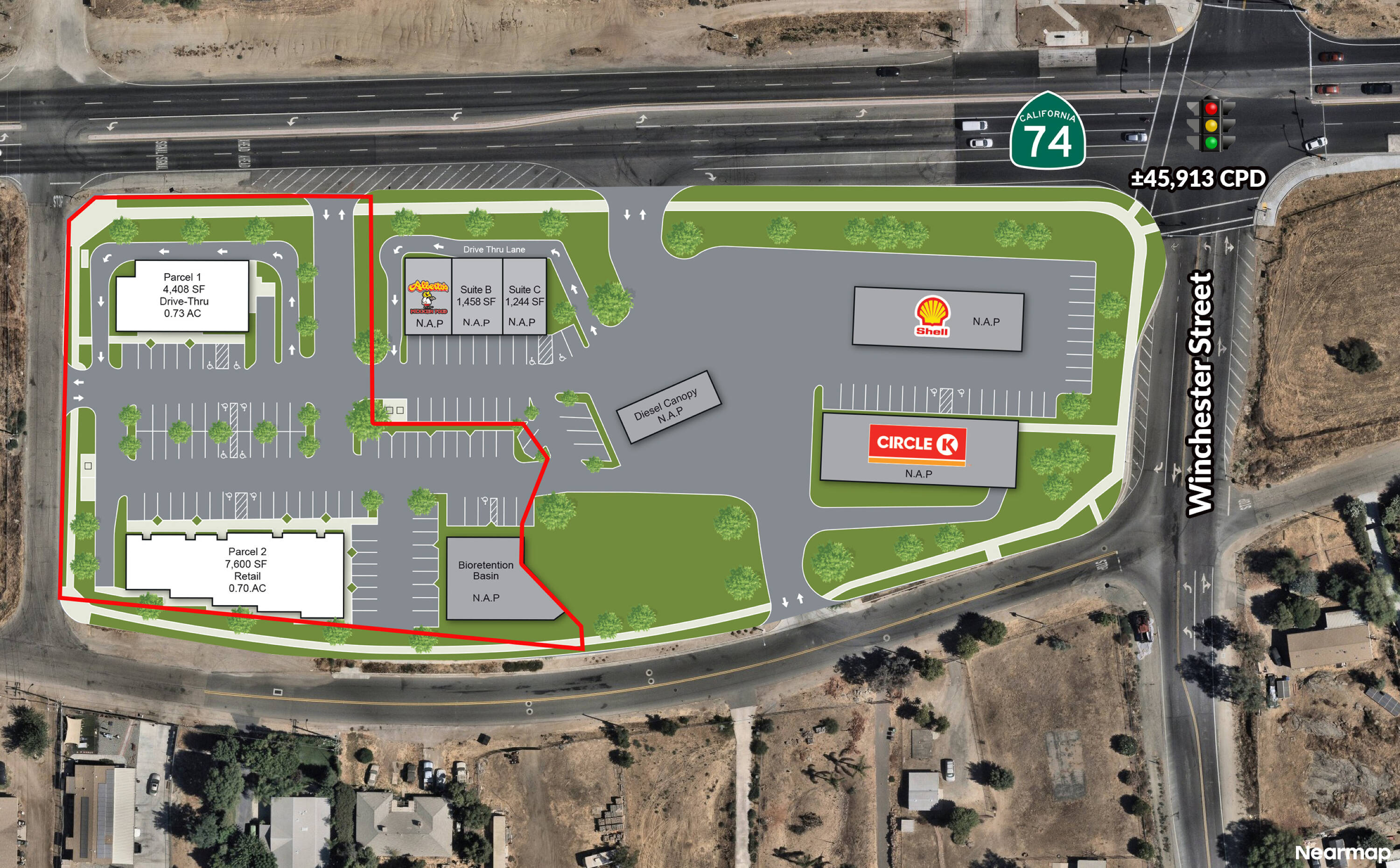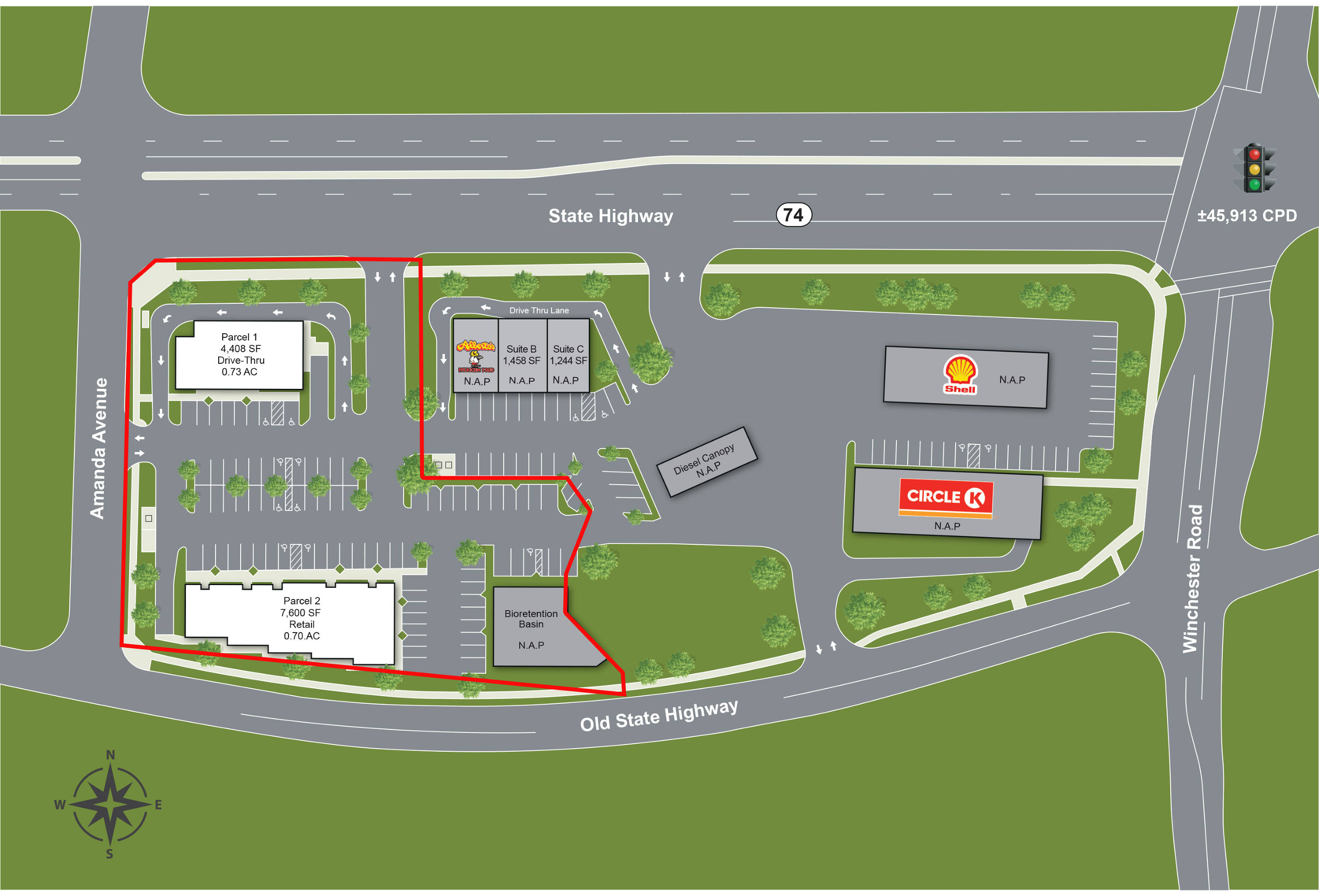 Two parcels available for drive-thru or retail development.