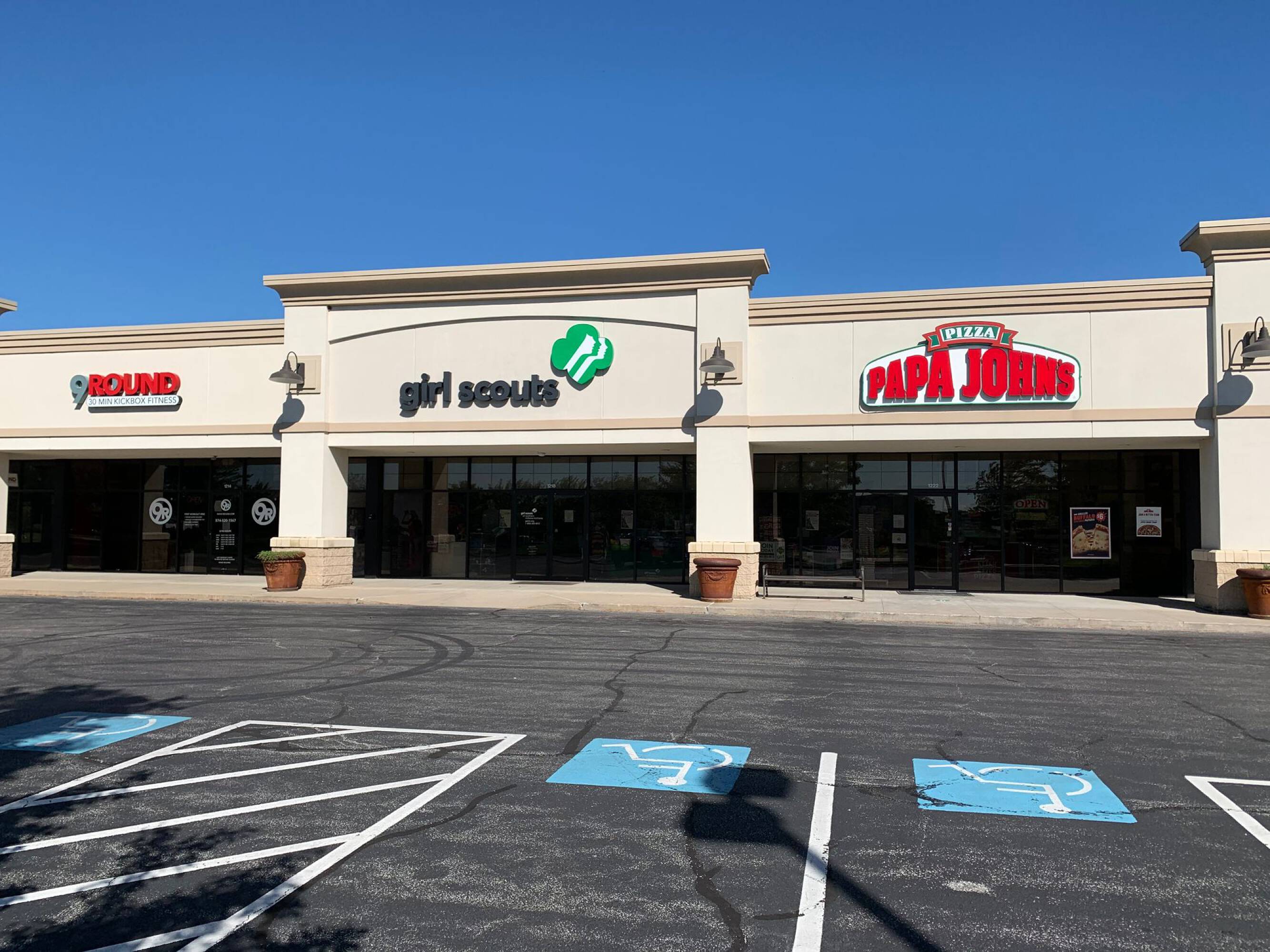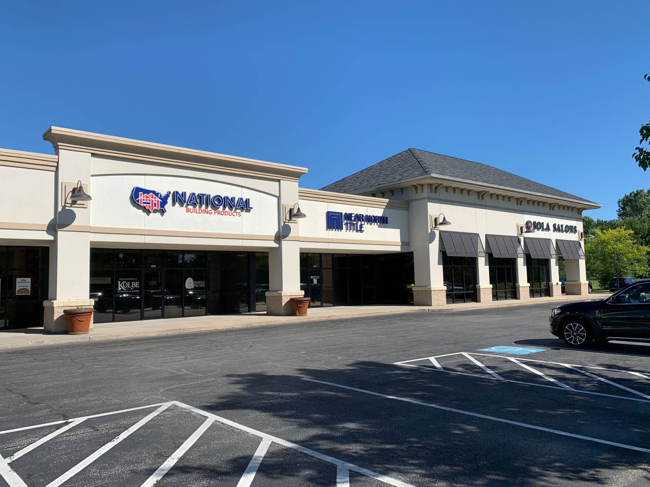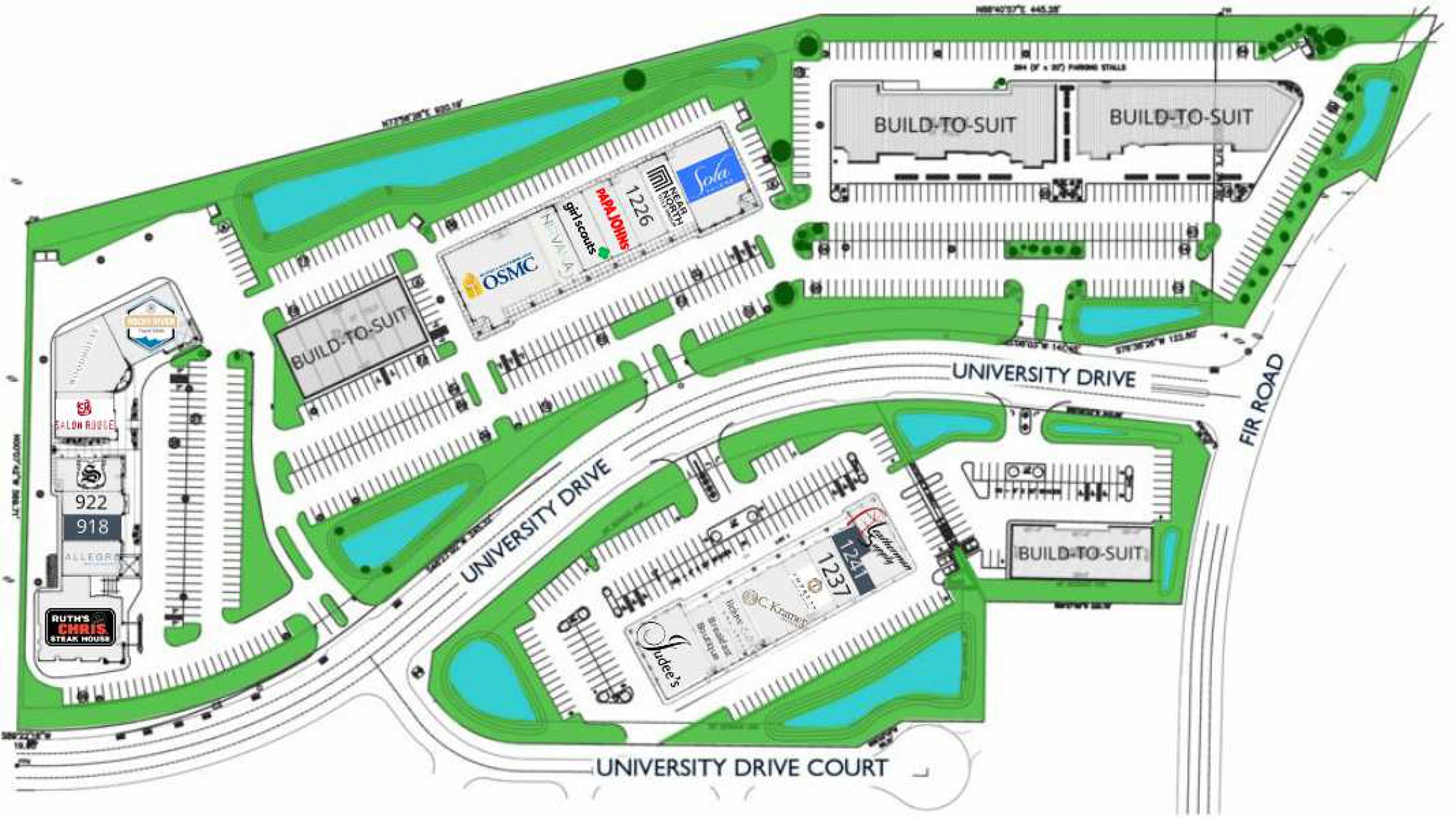 Multi-tenant retail center with storefront visibility on University Drive.