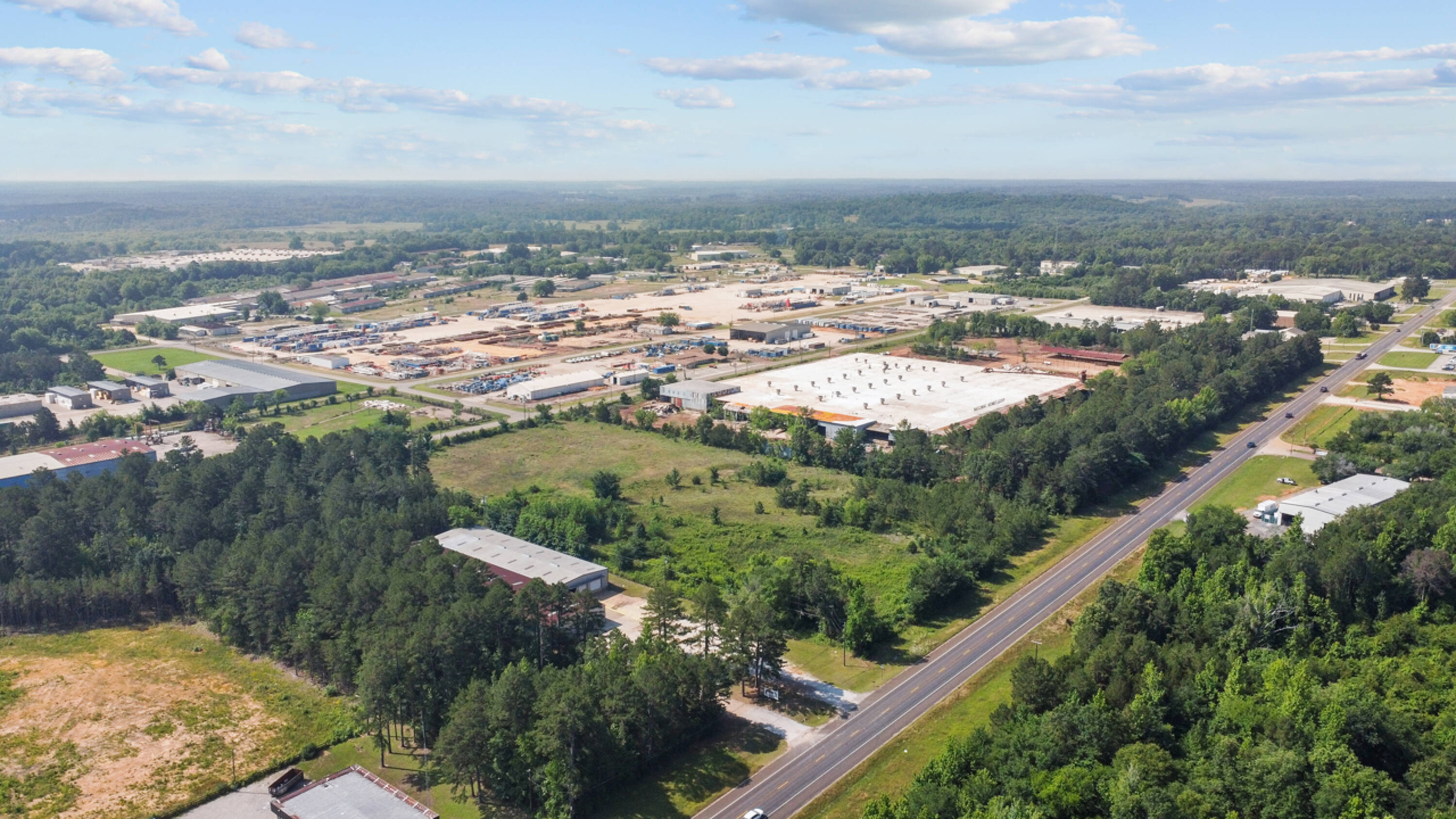 Large warehouse space near I-20 with ample parking.