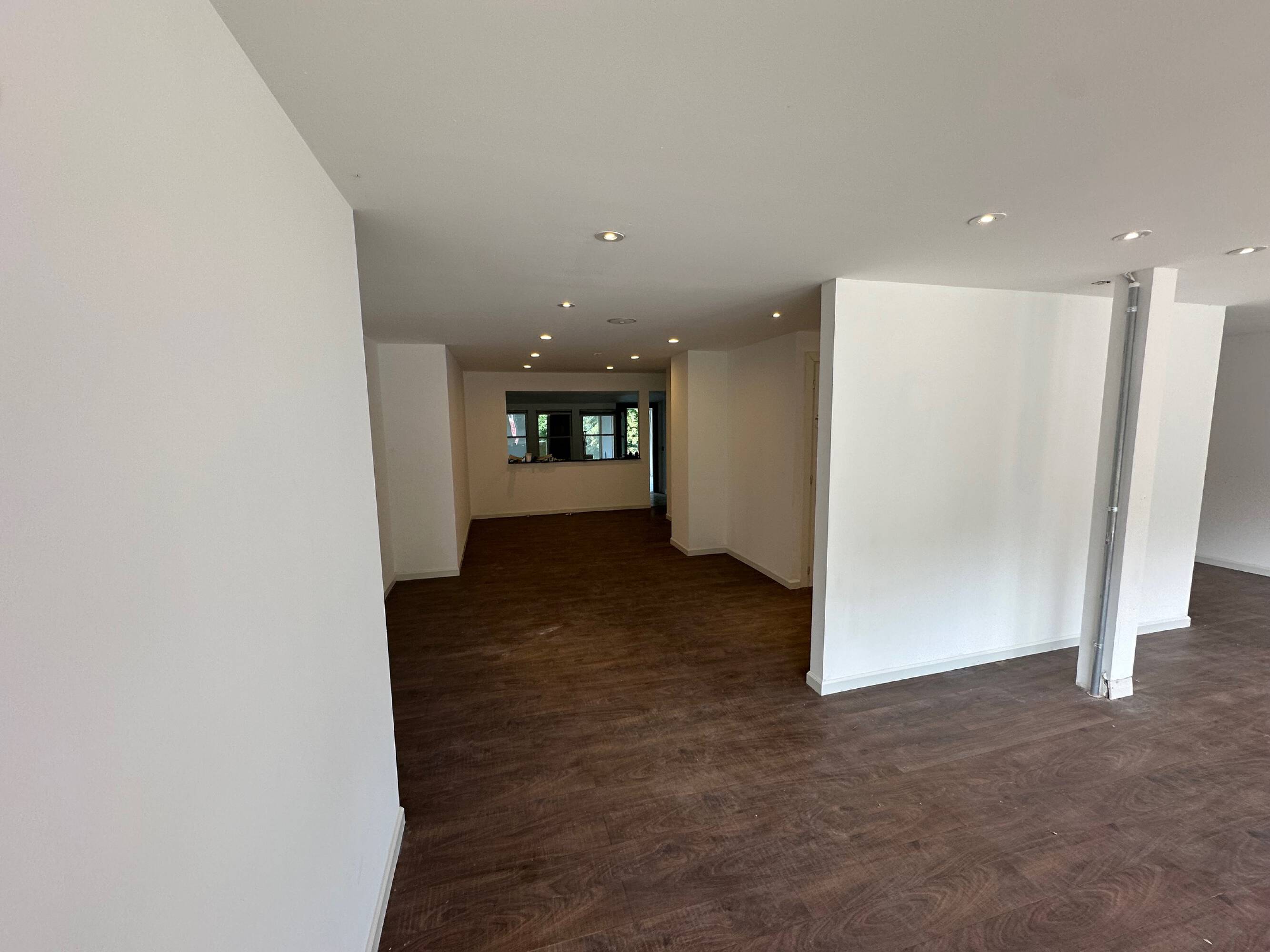 First floor retail space with sunroom and basement storage.