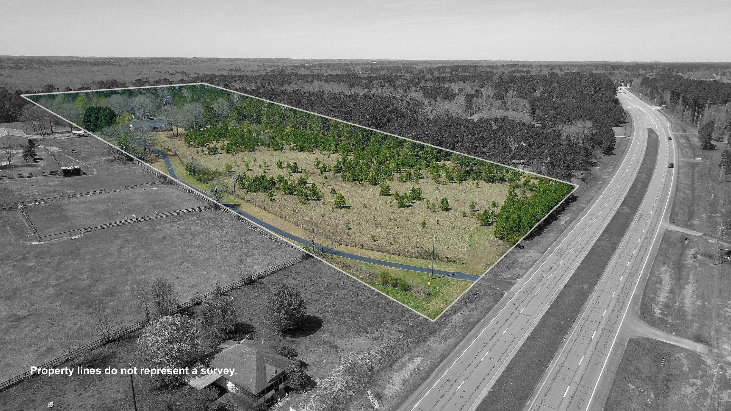 Commercial land - 9.82 acres with home, ideal for development or ventures.