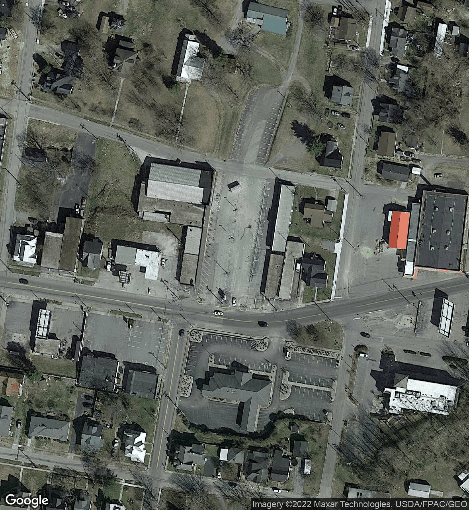 Retail shopping center in downtown Scottsville, Kentucky.