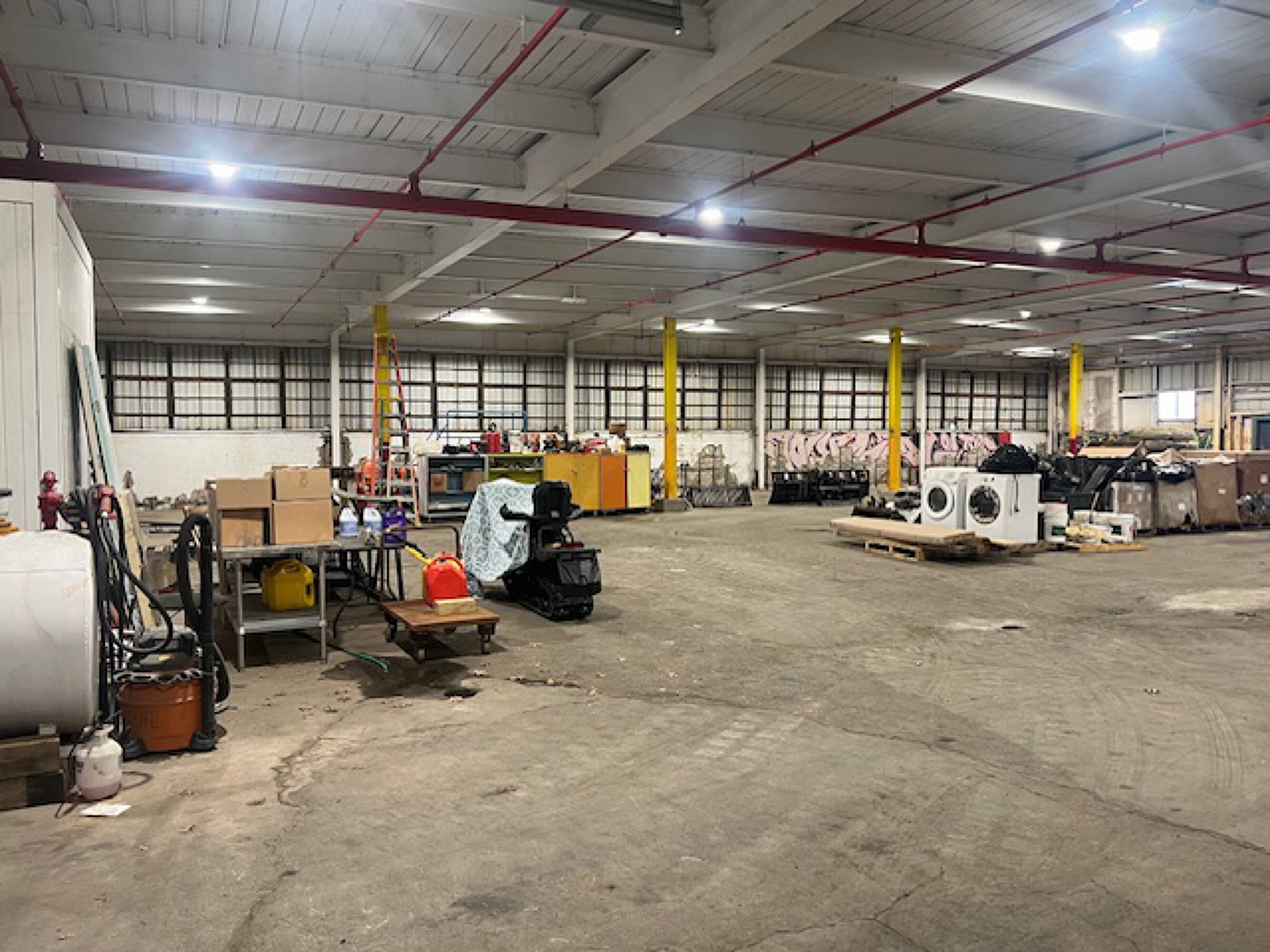 Flex space for assembly, distribution, warehousing, or contractor use.