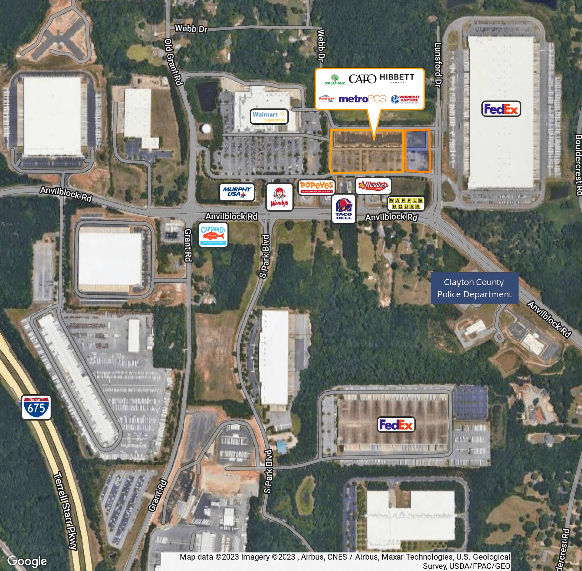 Retail center in Ellenwood, GA, near I-675.