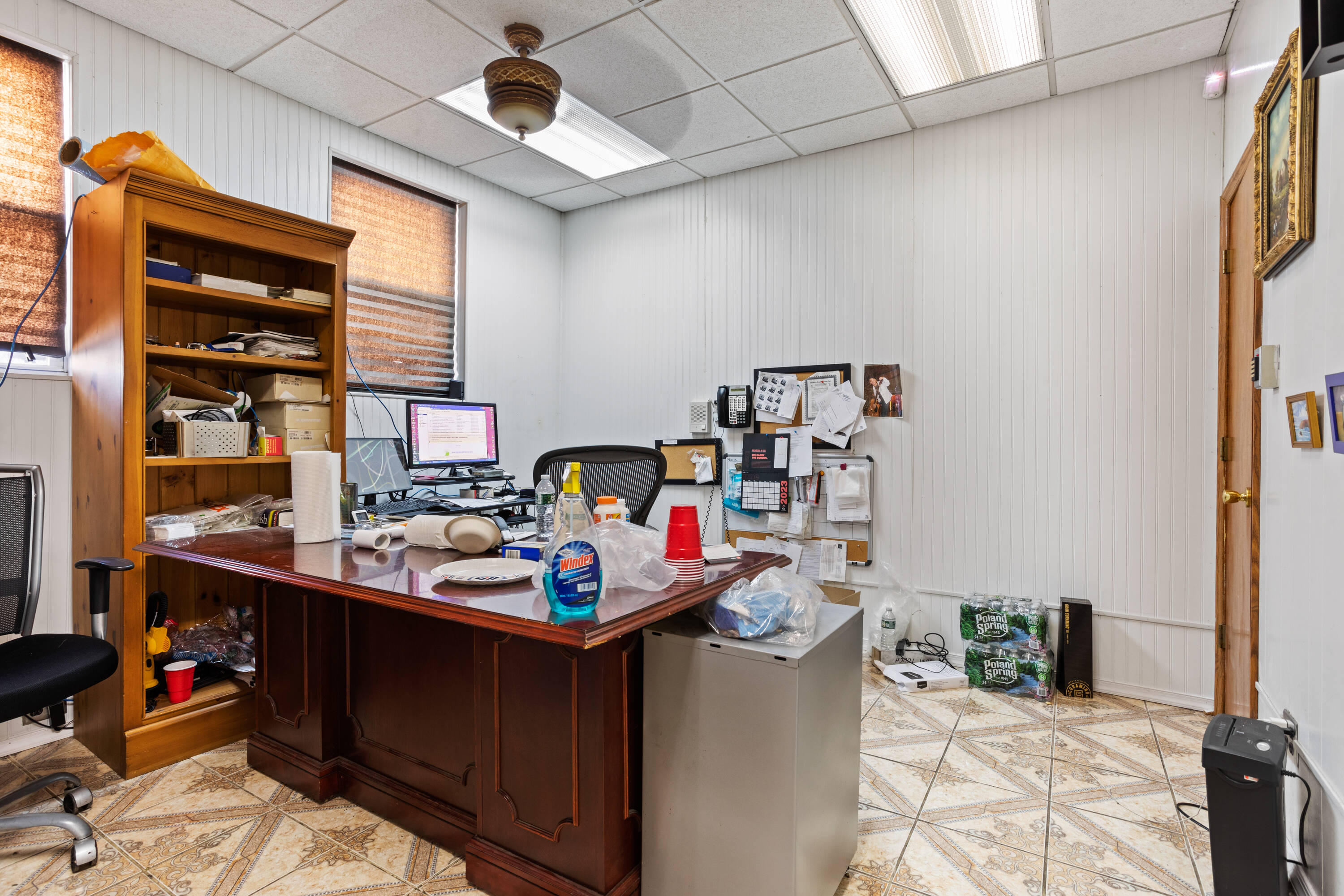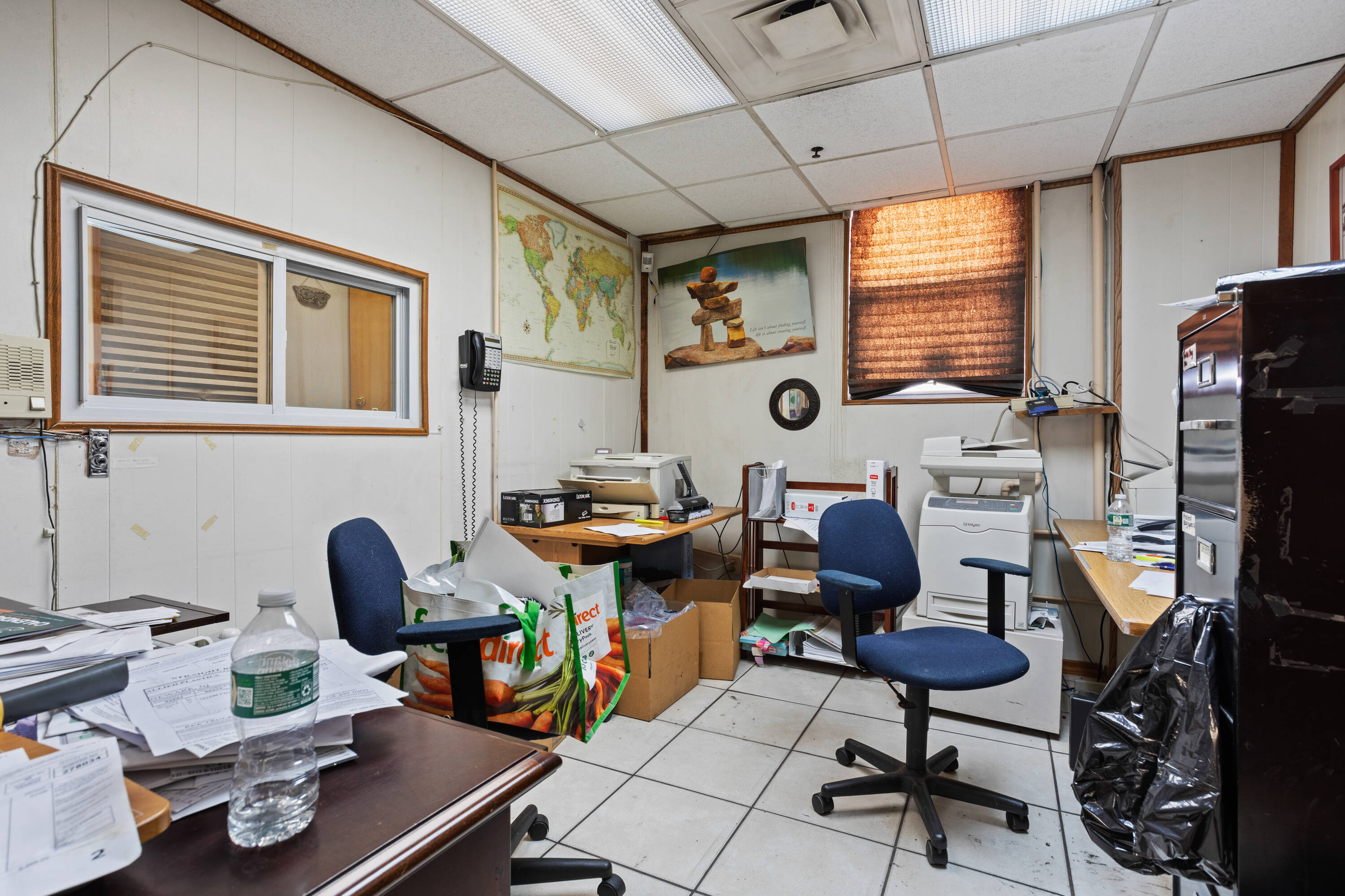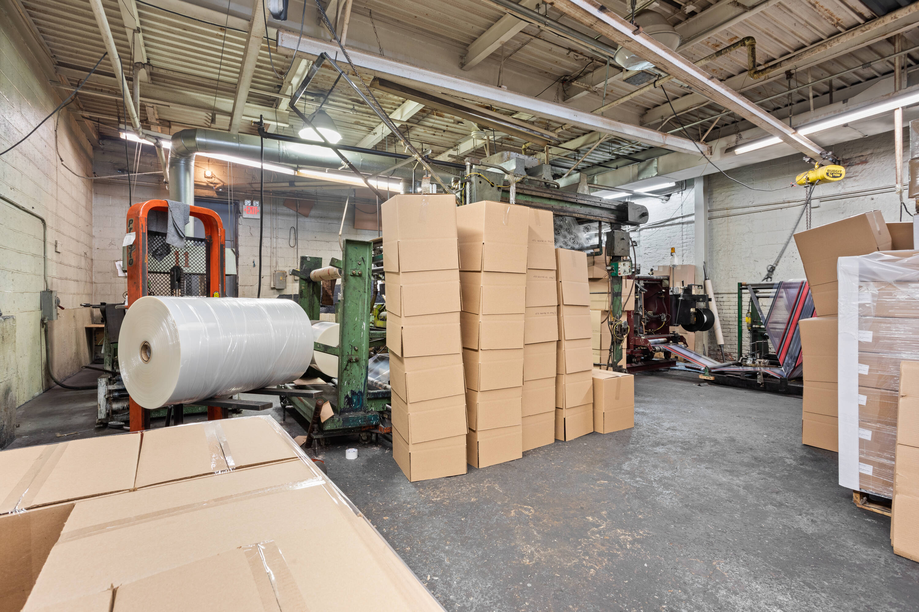 Flex space with loading dock, parking, and private offices.